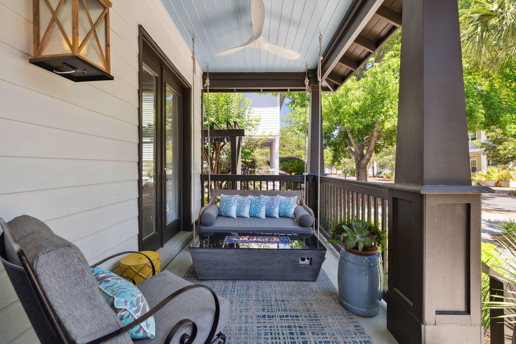 The living areas transition seamlessly to multiple outdoor spaces each uniquely designed for comfort and connection. The charming front porch features a cozy swing and an outdoor dining area, perfect for slow mornings or sunset meals. The back porch offers a more private setting with a comfortable sitting area and an outdoor TV ideal for watching the game or relaxing with a movie. The side yard adds yet another gathering space, providing a versatile area for entertaining, games, or simply soaking up the Florida sunshine.