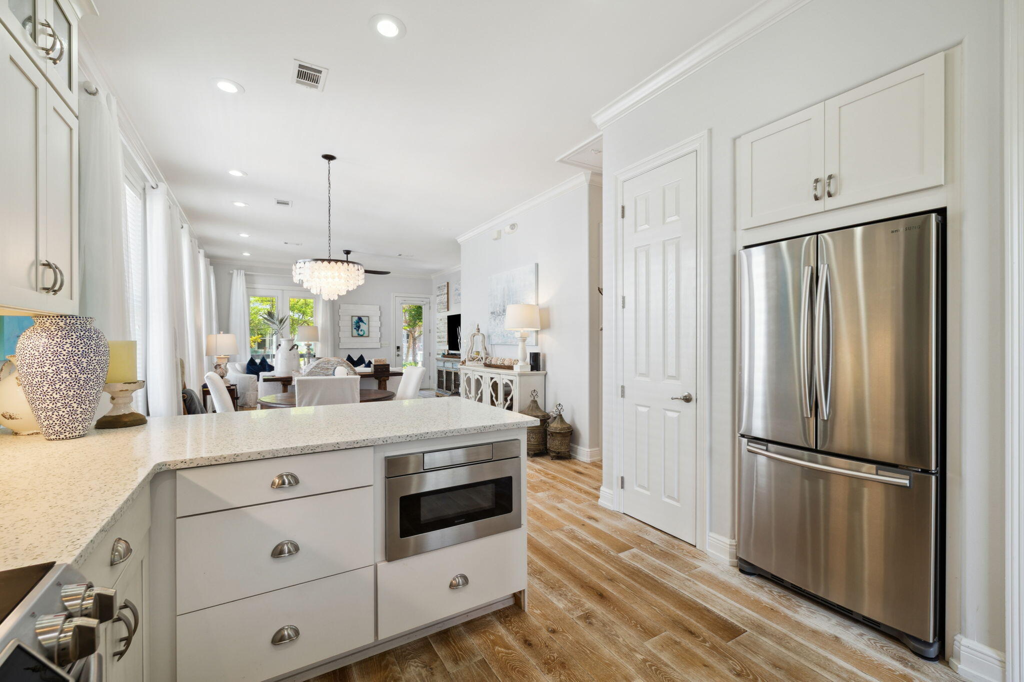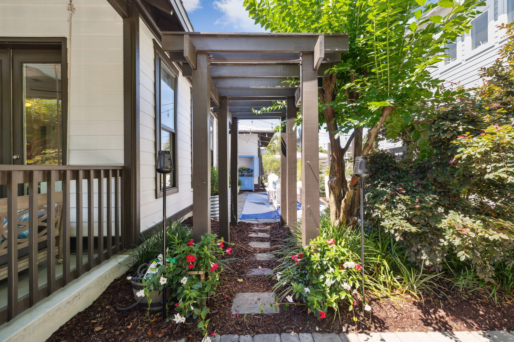 Tucked away in the highly desirable Cassine Village community in Seagrove Beach, this fully renovated 3-bedroom, 2-bath coastal retreat is a rare find along 30A. Offering 1,461 square feet of thoughtfully updated living space, this home stands apart with custom hardwood floors, an updated exterior, and vibrant, well-maintained landscaping that adds to its inviting curb appeal.Inside, the home features a bright, open layout with high ceilings and excellent flow throughout, creating a spacious yet comfortable atmosphere. It comes tastefully furnished in a relaxed coastal style (with most furnishings conveying), and both bathrooms have been beautifully updated with finishes that elevate the overall design.The master suite is a true highlight--generously sized and is a great place to unwind at the end of the day. The tastefully renovated en-suite bathroom features coastal-inspired finishes and carefully chosen details that create a relaxing, functional space. A spacious walk-in closet provides ample storage and organization. The two additional bedrooms are equally inviting, perfect for guests or family, and share a beautifully updated full bath with a fresh, coastal design.