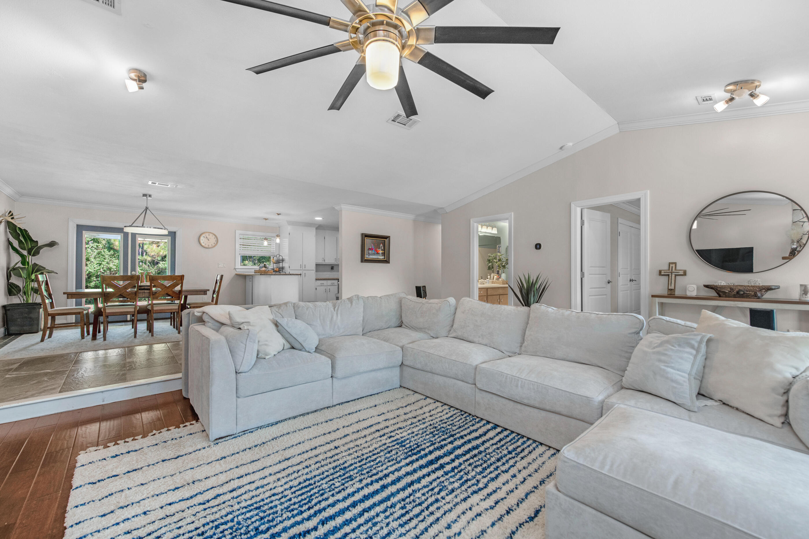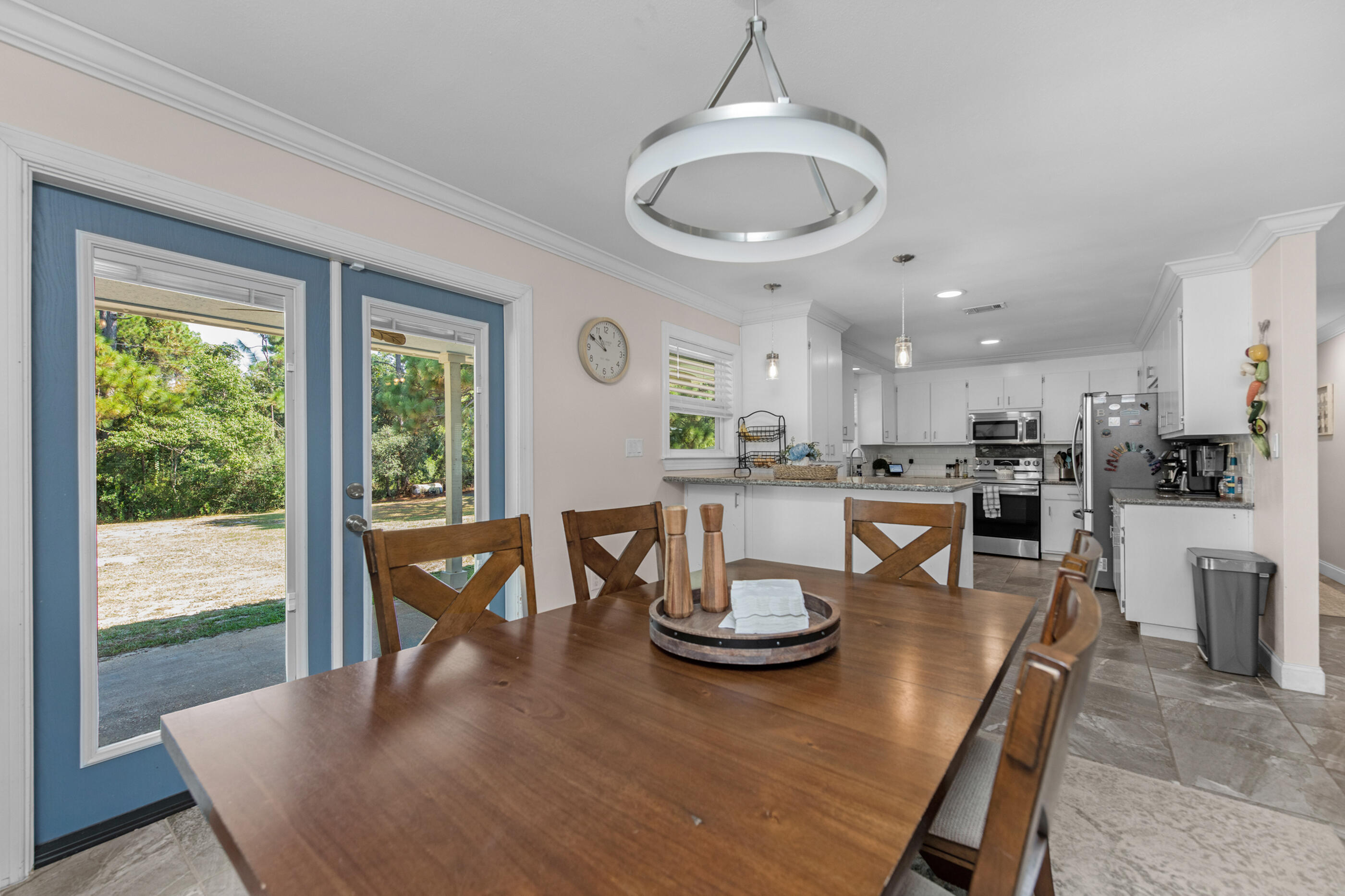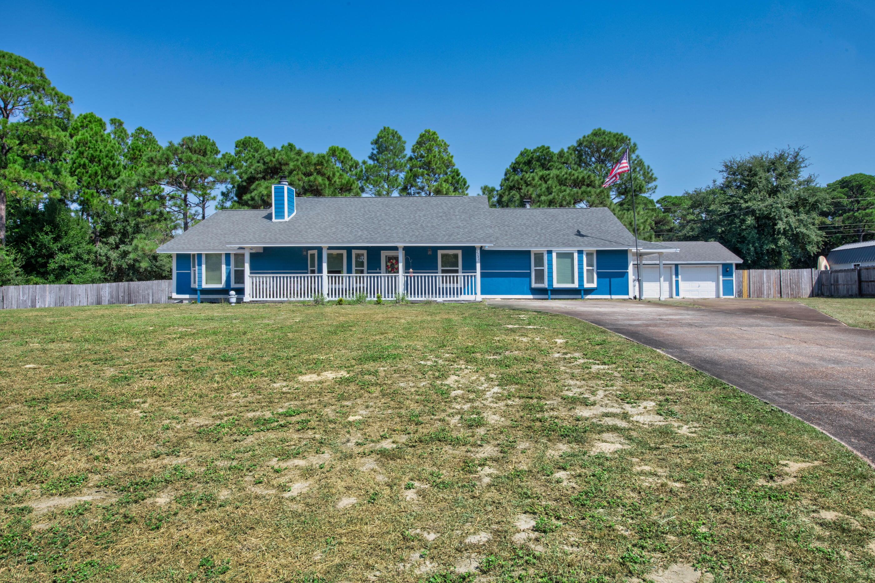 Set on nearly an acre and one of the highest elevation points in Navarre, this beautifully maintained property offers privacy, space, and versatility -- all less than 3 miles from the beach. The double lot backs up to county access, so there are no rear neighbors, and the peaceful backyard makes the most of its natural setting.Inside, you'll find 3 spacious bedrooms, 3 full bathrooms, and multiple living spaces including a renovated office and bar area (2023). A sunken living room with fireplace, a split bonus room with French doors, and a finished garage with A/C give you options for working, entertaining, or relaxing. The kitchen was updated in 2021 with new appliances, lighting, and backsplash, and major systems -- including the roof (2020), HVAC and ductwork (2024), water heater (2024), and electrical panel (2024) have all been taken care of.