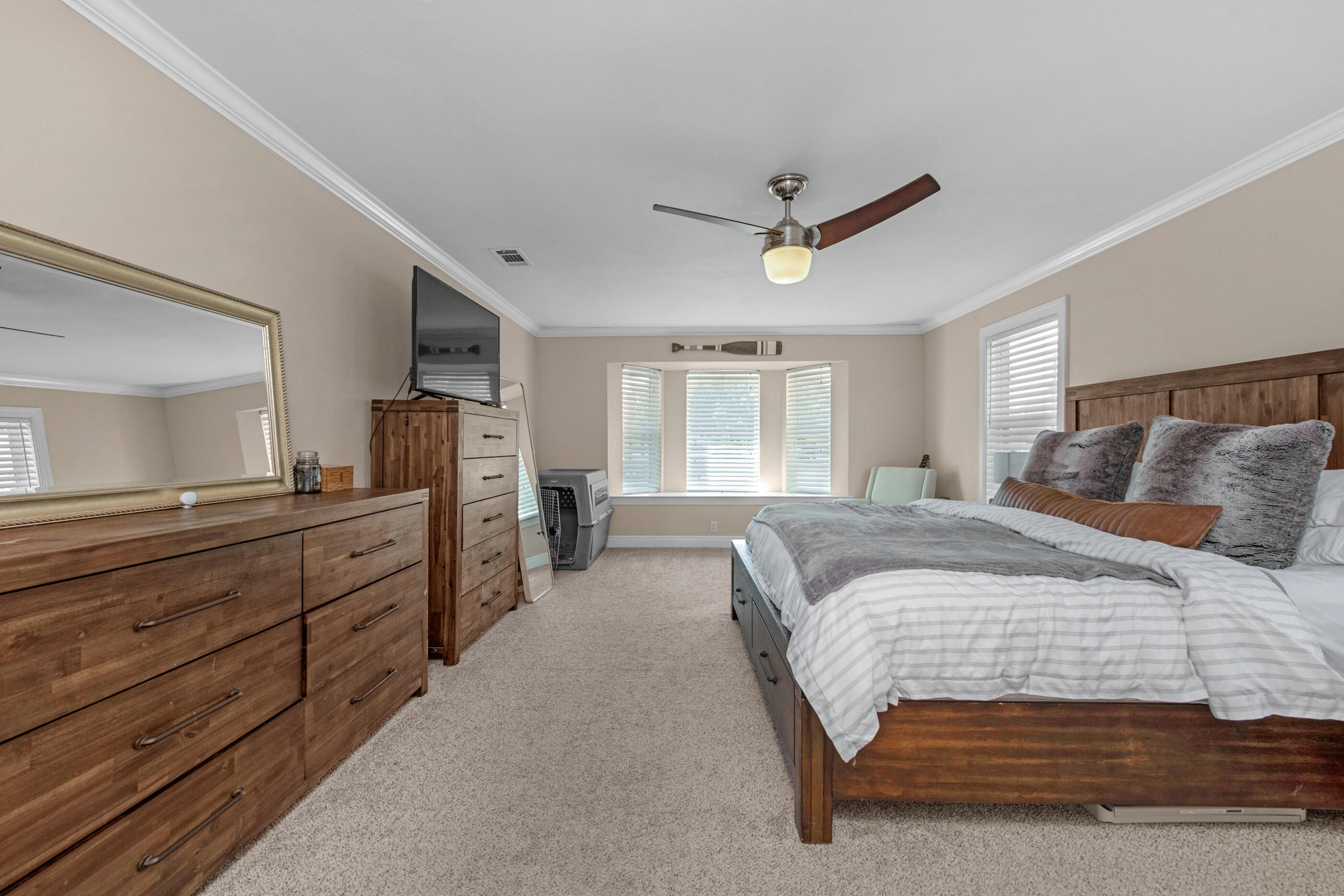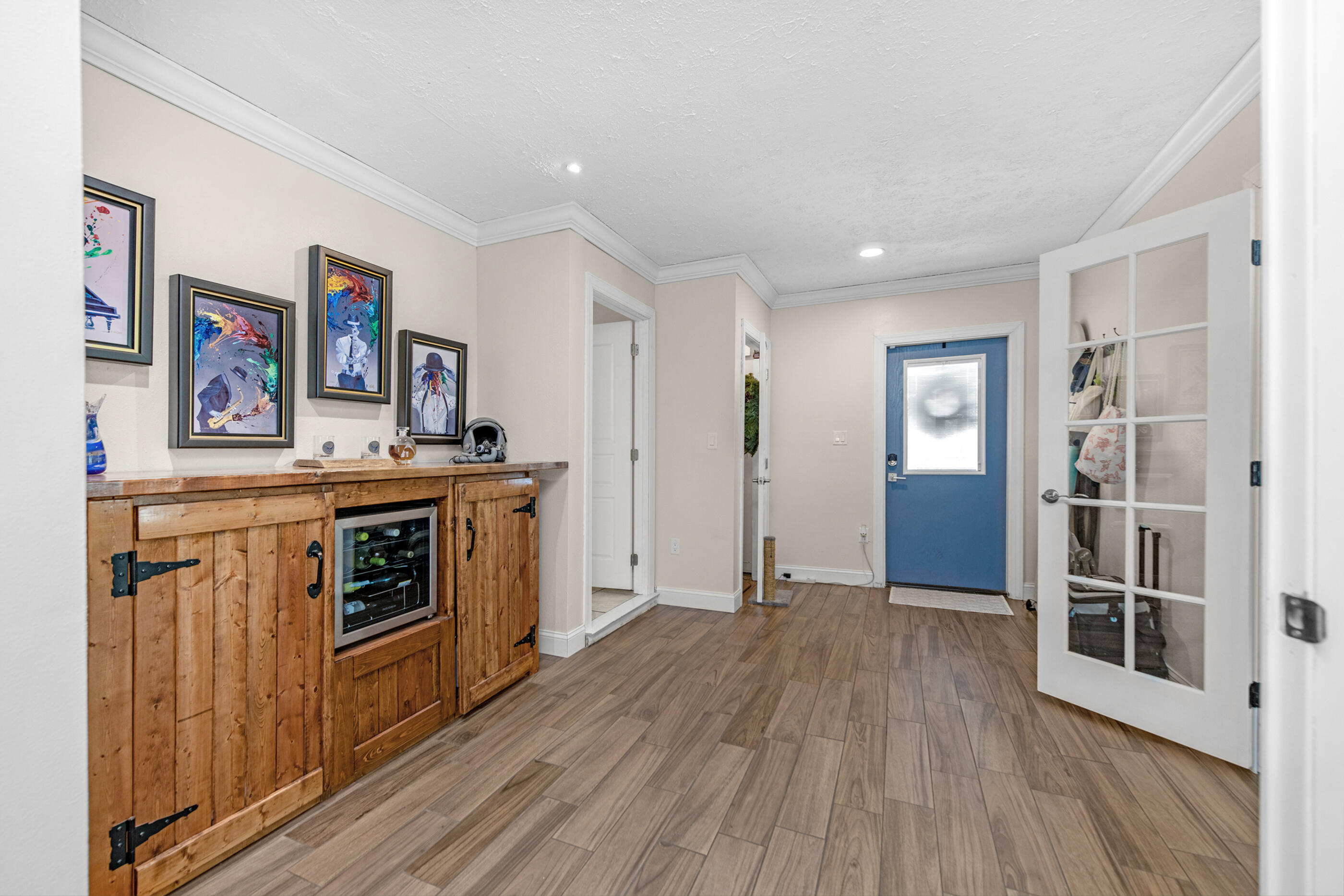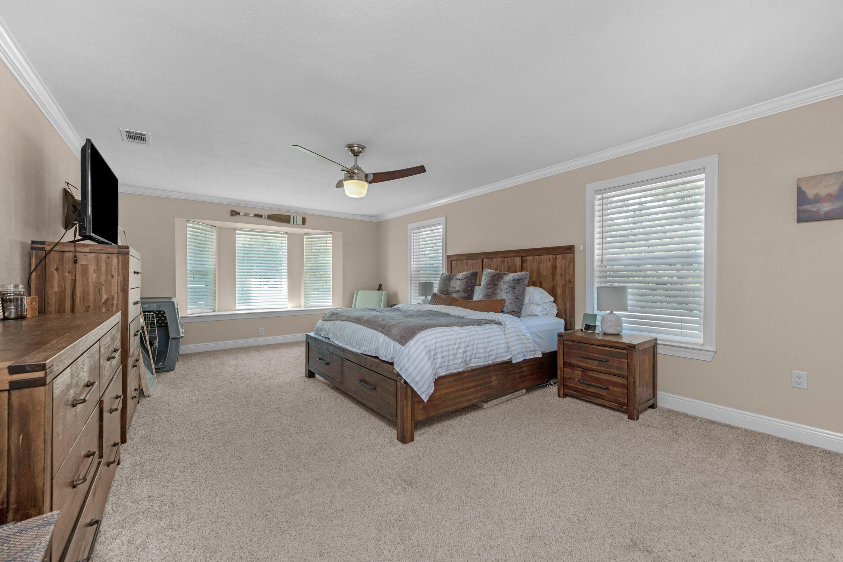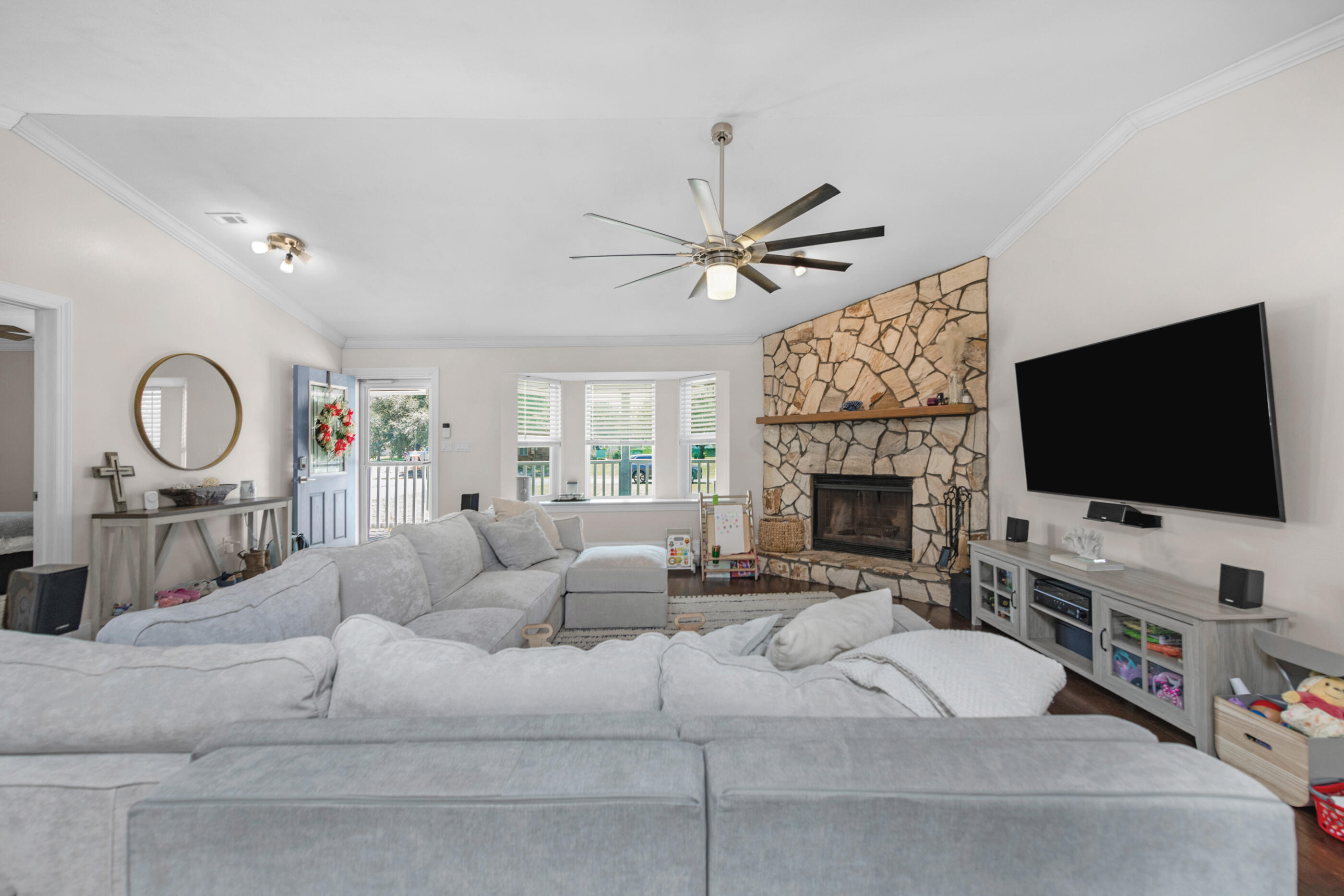 Set on nearly an acre and one of the highest elevation points in Navarre, this beautifully maintained property offers privacy, space, and versatility -- all less than 3 miles from the beach. The double lot backs up to county access, so there are no rear neighbors, and the peaceful backyard makes the most of its natural setting.Inside, you'll find 3 spacious bedrooms, 3 full bathrooms, and multiple living spaces including a renovated office and bar area (2023). A sunken living room with fireplace, a split bonus room with French doors, and a finished garage with A/C give you options for working, entertaining, or relaxing. The kitchen was updated in 2021 with new appliances, lighting, and backsplash, and major systems -- including the roof (2020), HVAC and ductwork (2024), water heater (2024), and electrical panel (2024) have all been taken care of.