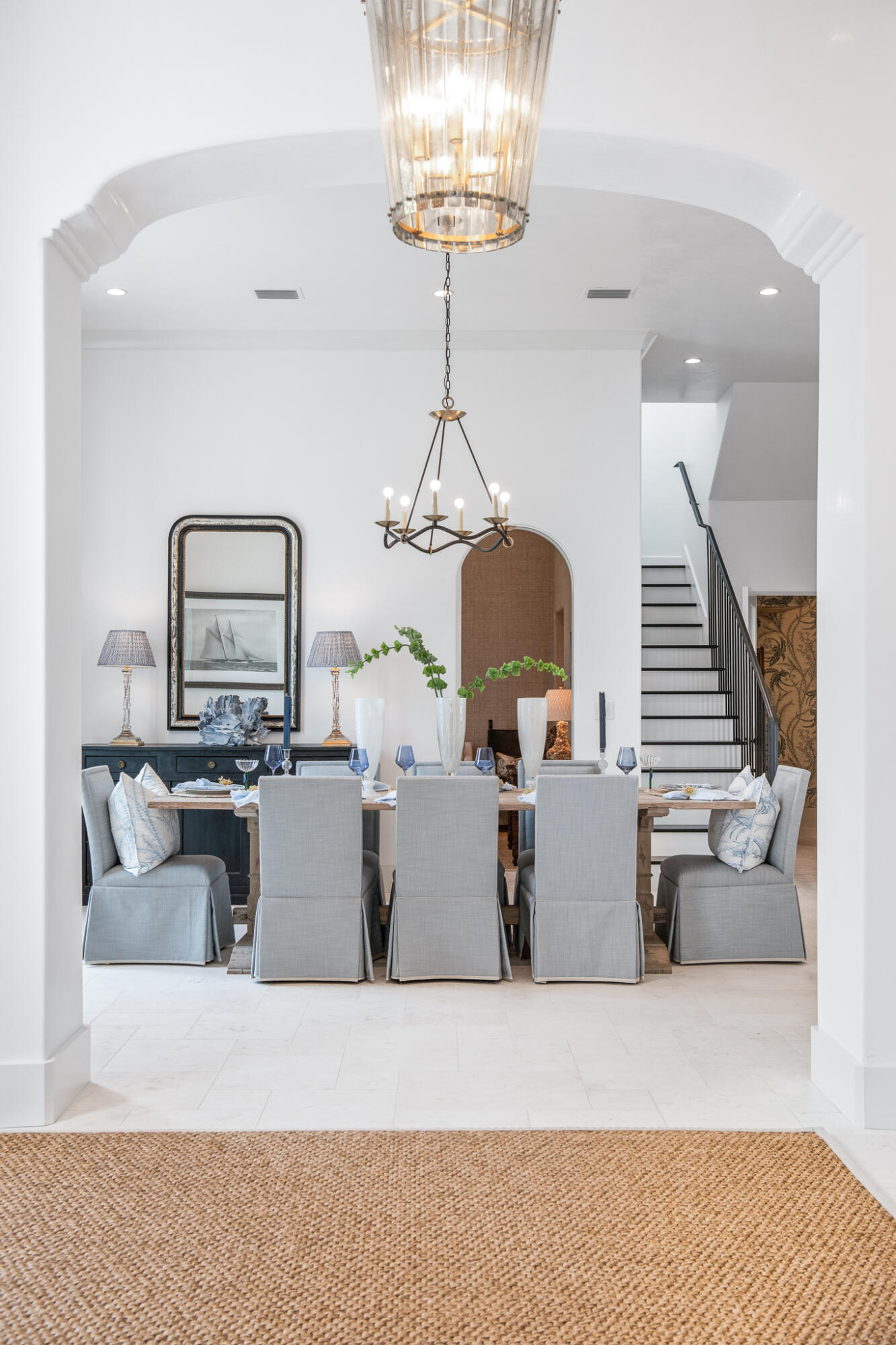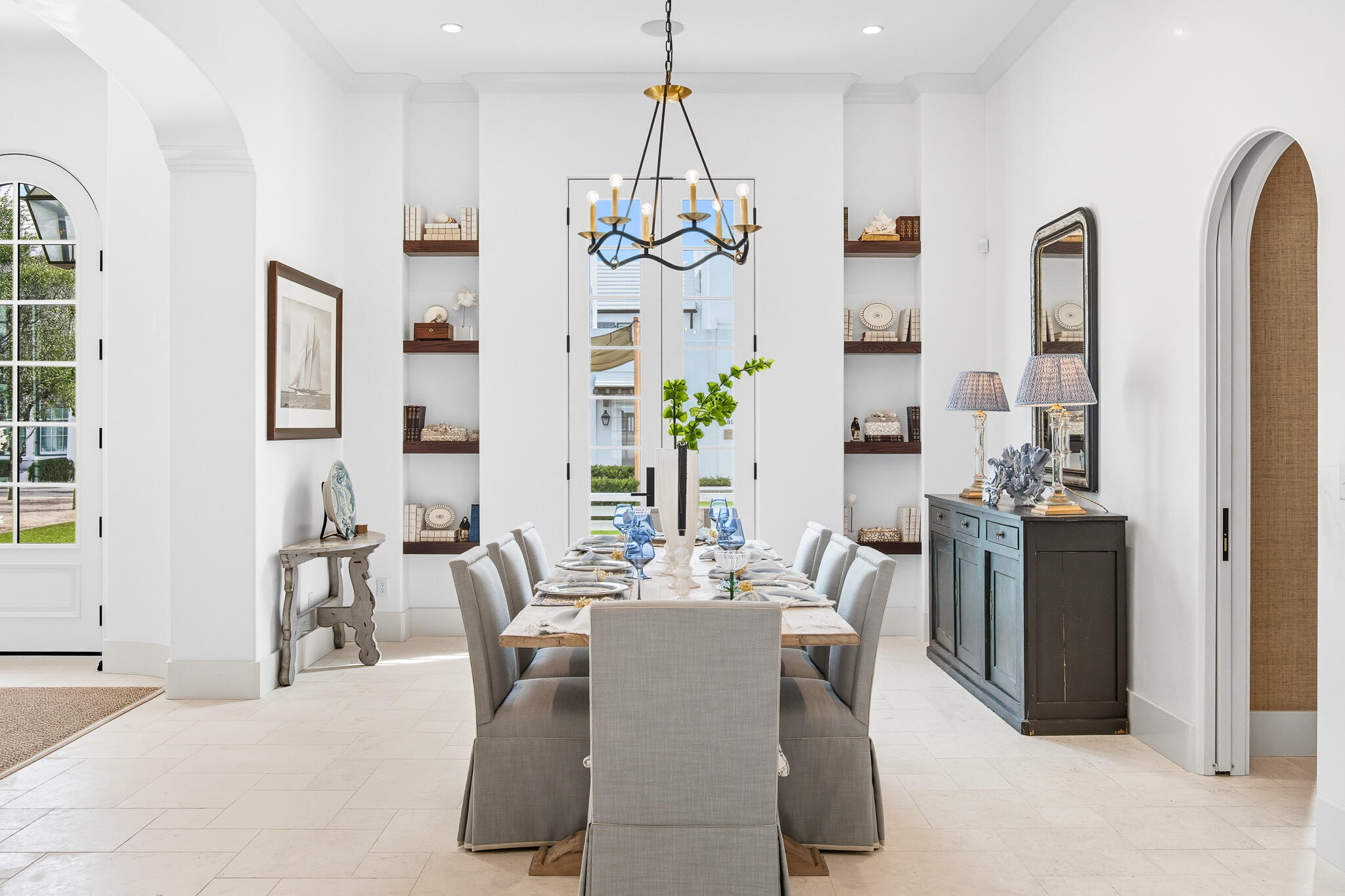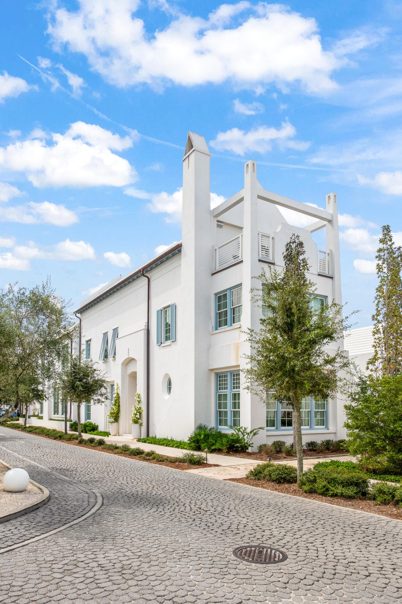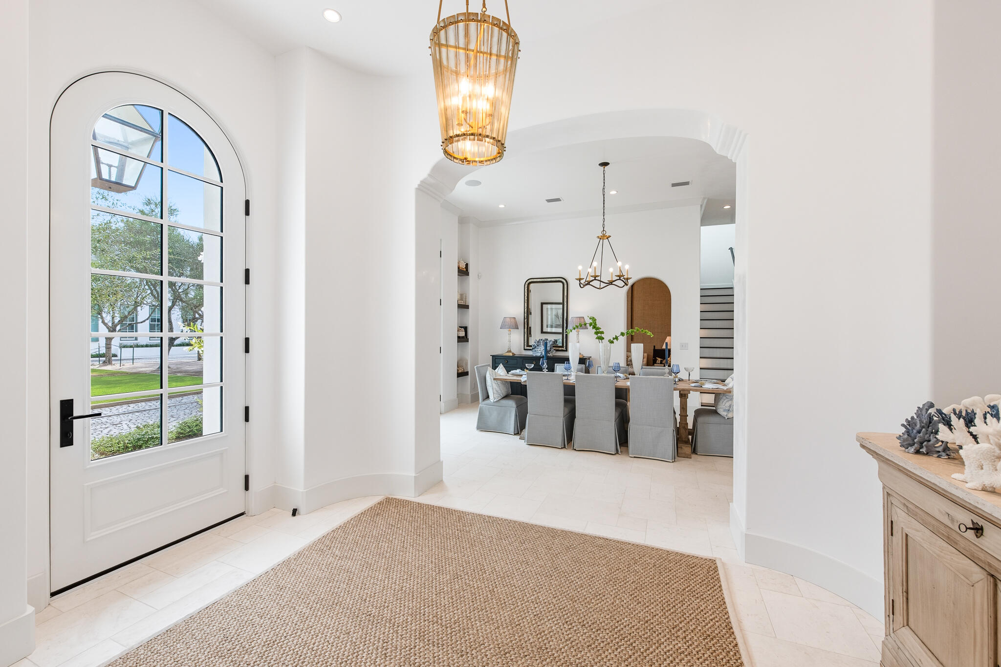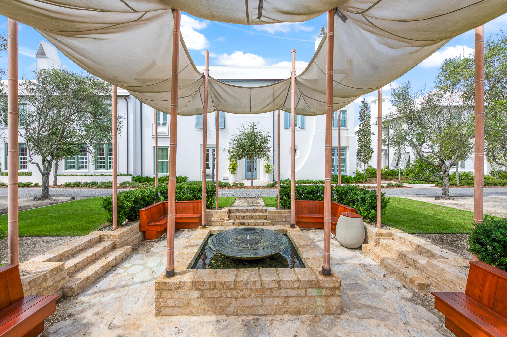 Welcome to 195 N. Charles Street, where elegance meets exquisite design in the heart of Alys Beach. Crafted by the renowned Christ & Associates Architecture, this stunning residence overlooks the picturesque Papilio Park, featuring a mature Olive Grove and a serene sitting fountain to enjoy.Spanning 4,415 sq. ft. of luxurious living space, complemented by an additional 1,133 sq. ft. of terraces and loggias, this home is a true masterpiece. As you approach, you'll be captivated by its beautiful setting, anchored by Papilio Park and a charming northern pedestrian path.Step inside to the grand foyer, adorned with architectural ceilings that set the tone for the rest of the home. To the right, you'll find a spacious living room, and to the left, an elegant dining room, both furnished with professionally designed decor and custom window treatments.