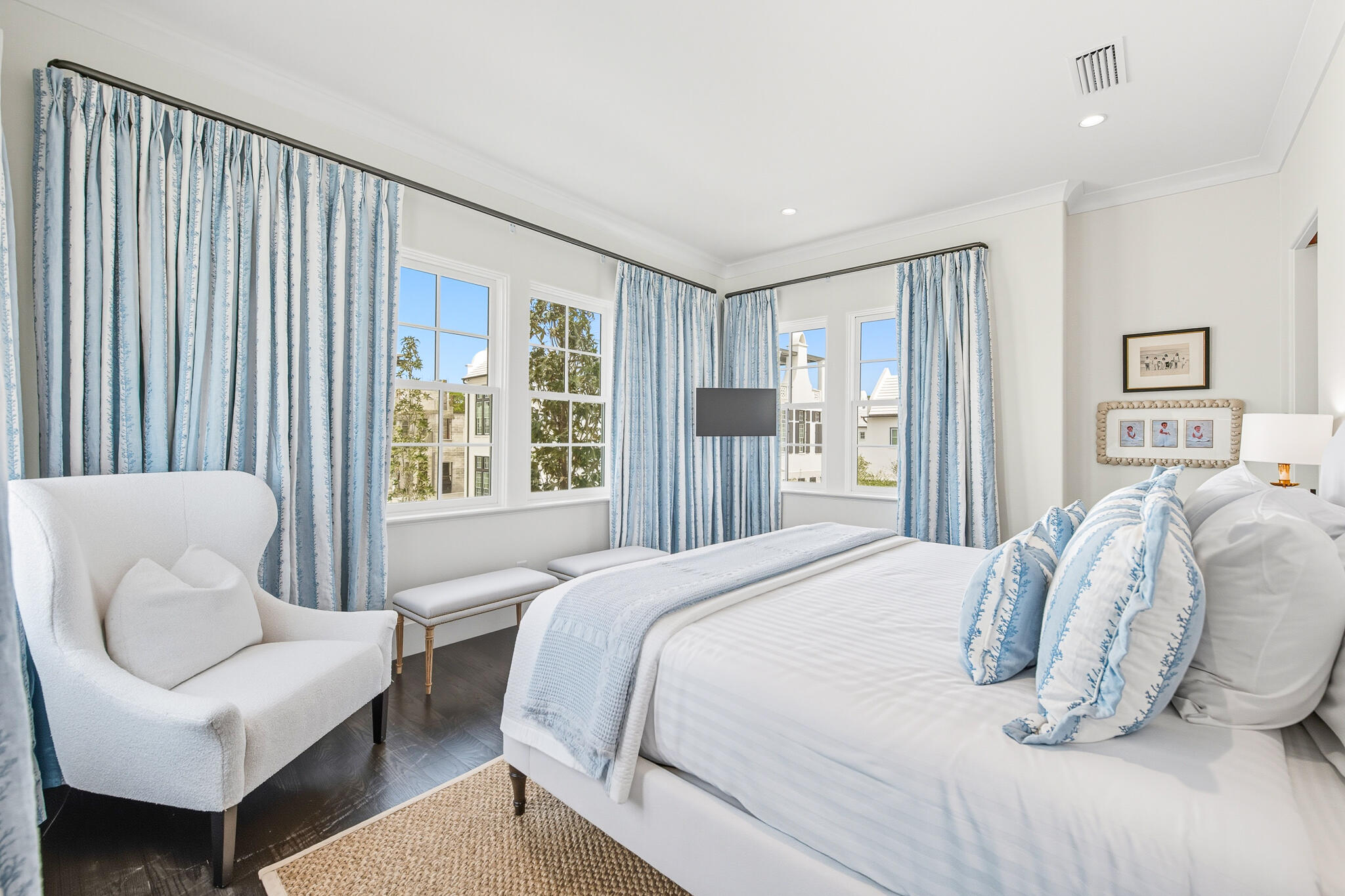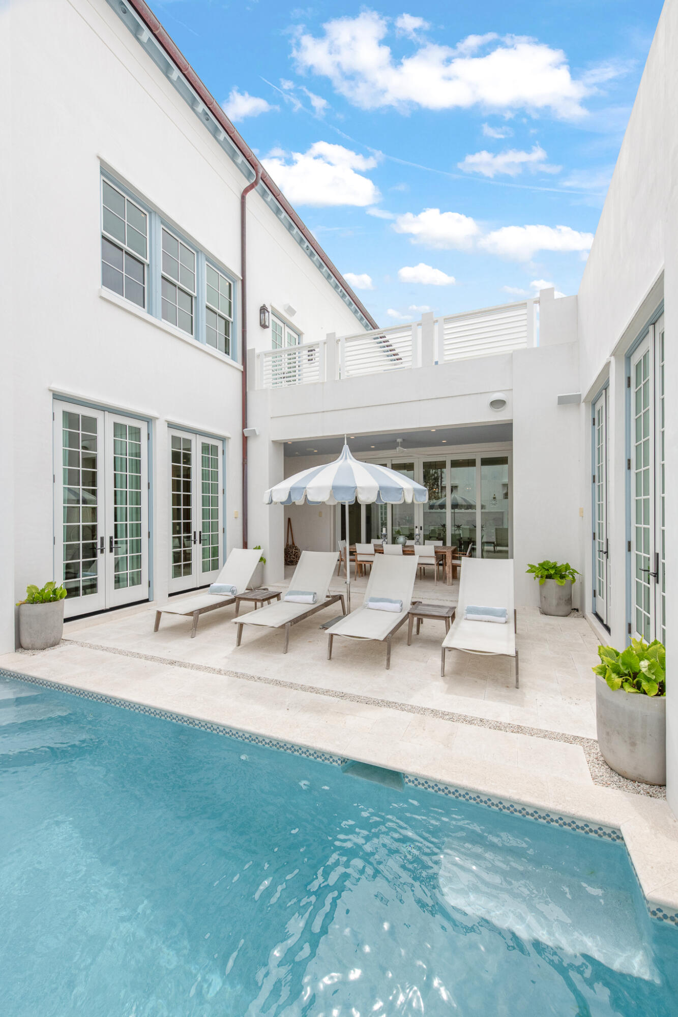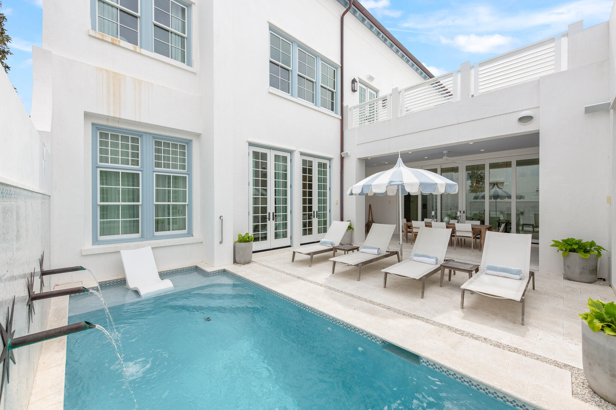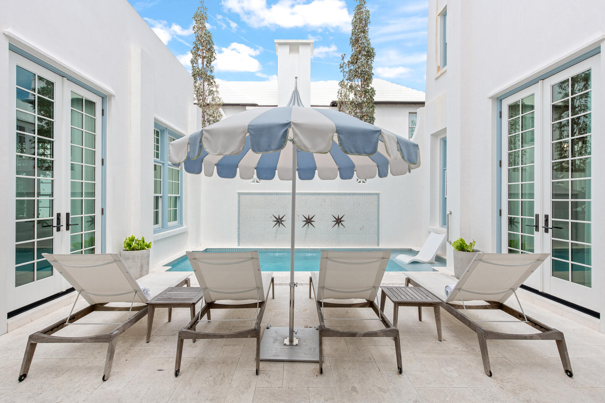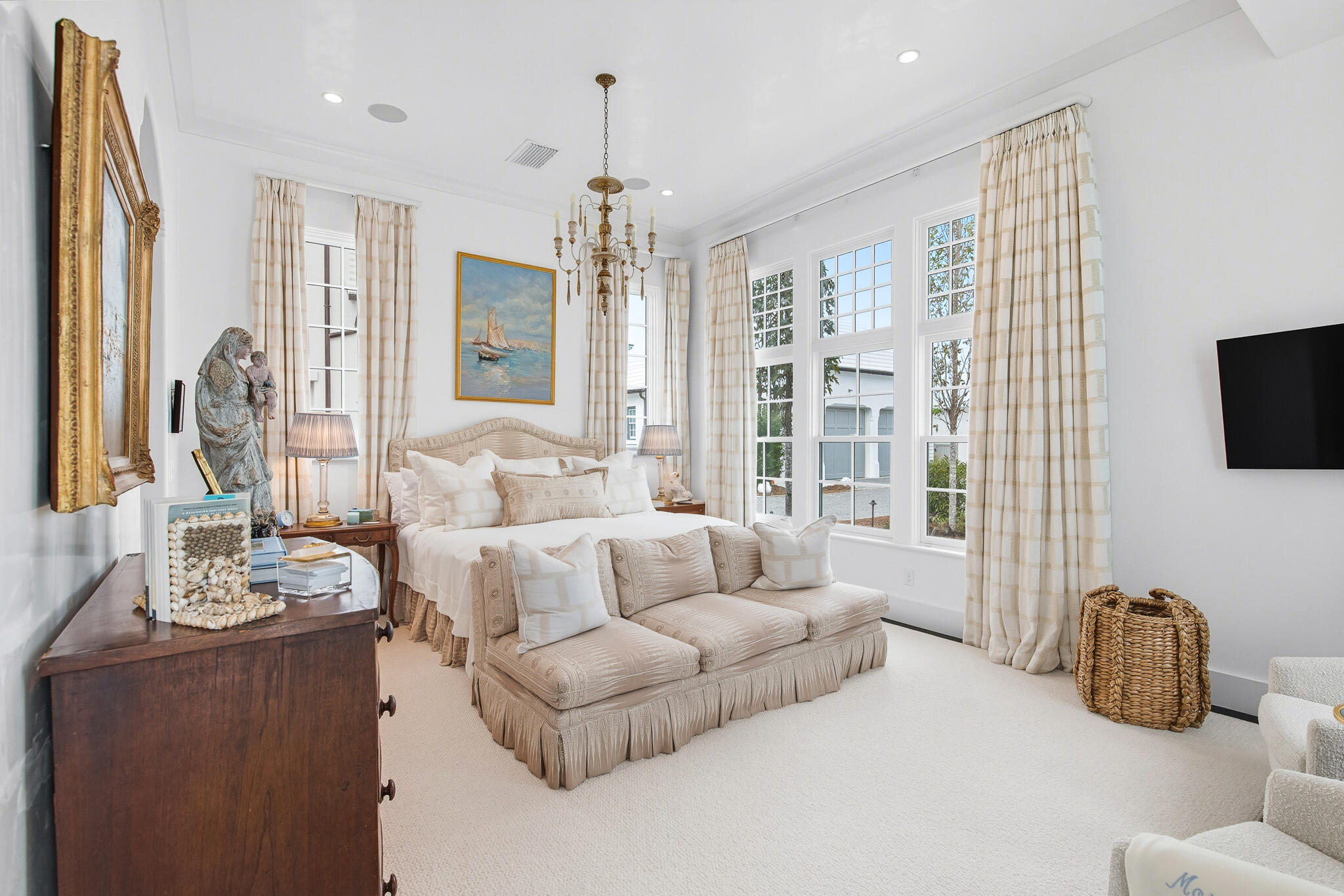 Welcome to 195 N. Charles Street, where elegance meets exquisite design in the heart of Alys Beach. Crafted by the renowned Christ & Associates Architecture, this stunning residence overlooks the picturesque Papilio Park, featuring a mature Olive Grove and a serene sitting fountain to enjoy.Spanning 4,415 sq. ft. of luxurious living space, complemented by an additional 1,133 sq. ft. of terraces and loggias, this home is a true masterpiece. As you approach, you'll be captivated by its beautiful setting, anchored by Papilio Park and a charming northern pedestrian path.Step inside to the grand foyer, adorned with architectural ceilings that set the tone for the rest of the home. To the right, you'll find a spacious living room, and to the left, an elegant dining room, both furnished with professionally designed decor and custom window treatments.