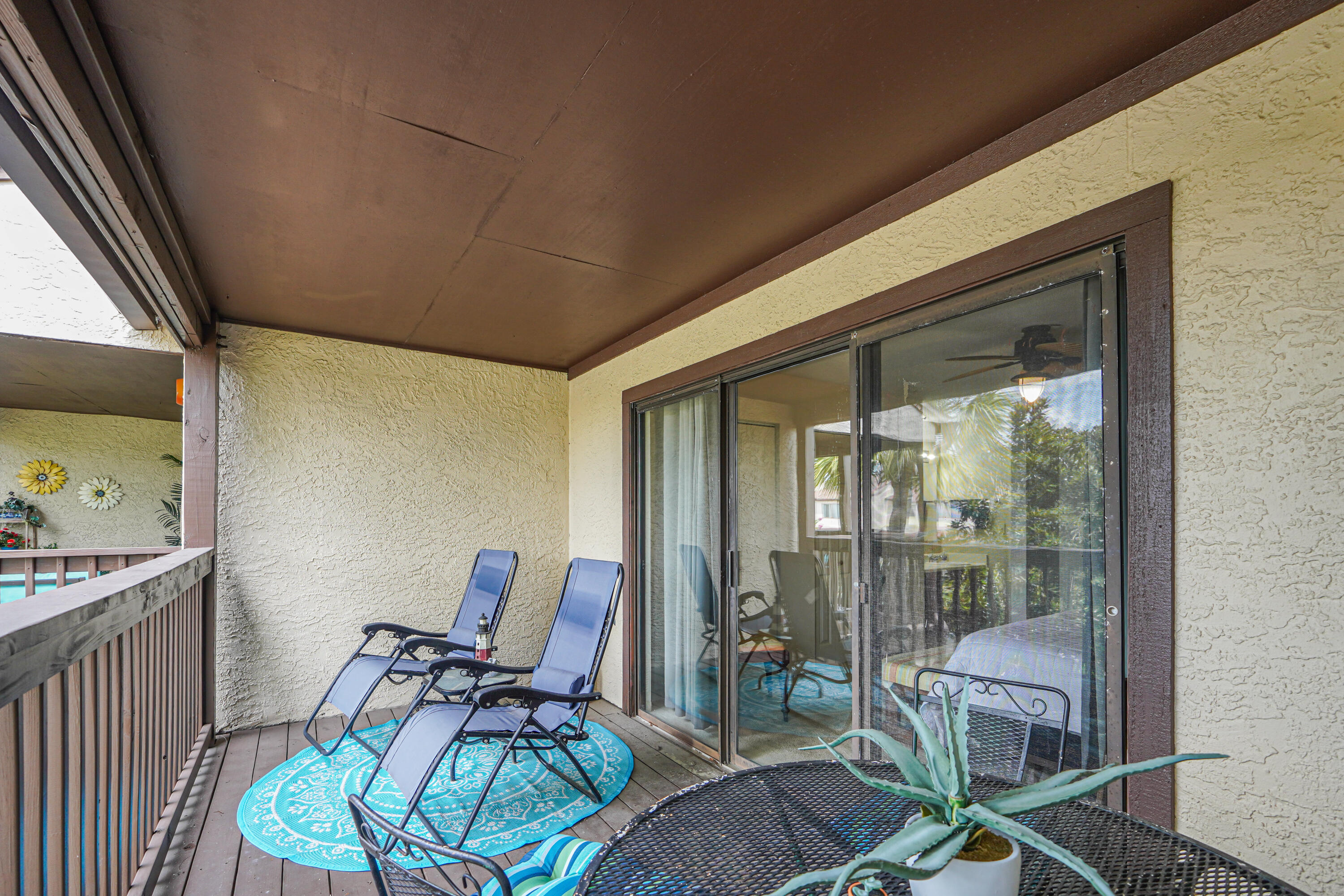 South of FL79 turn right on front beach road. Turn right on FL30 (Front Beach Rd), go 1.1 miles and turn right on Portside Drive. Continue straight on Portside Drive until you reach the Portside sign at T section, turn left pass pool and first left will be J units. J5 is second from end on right.