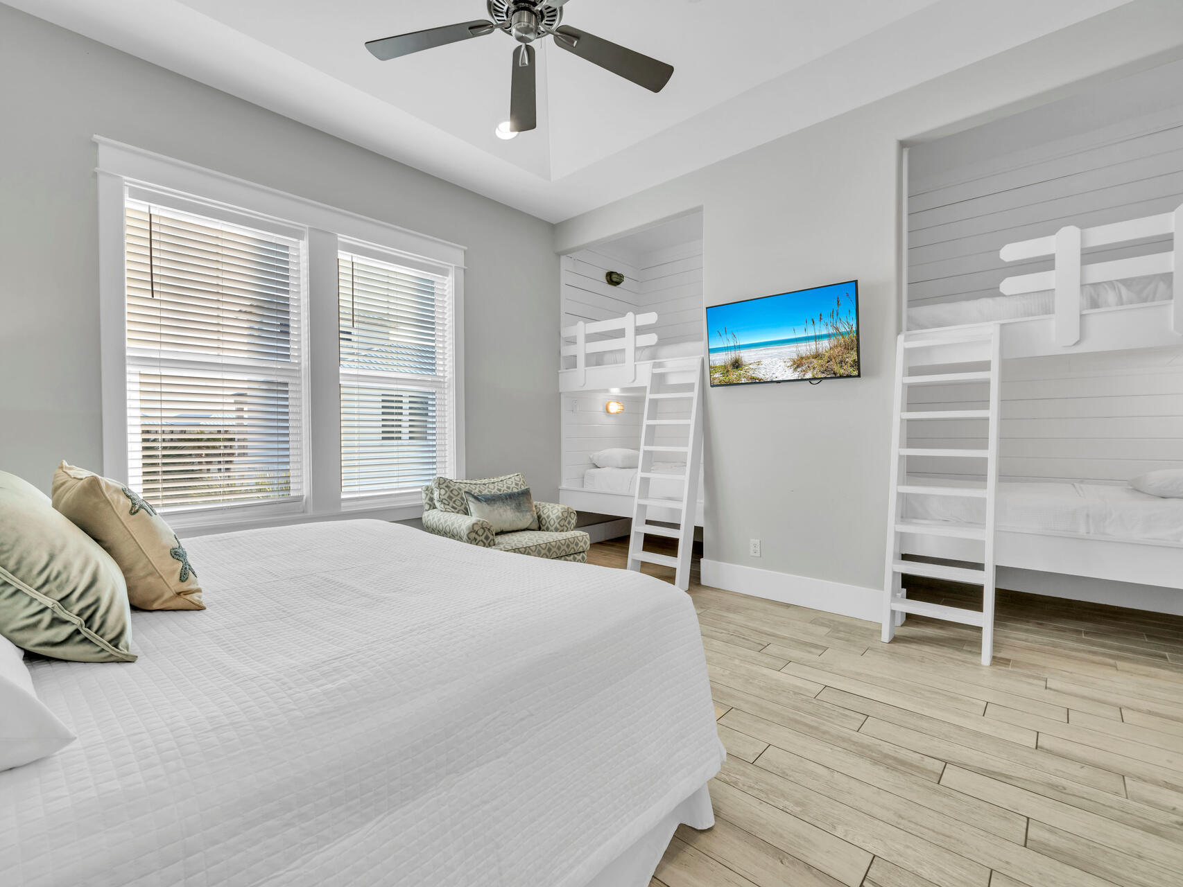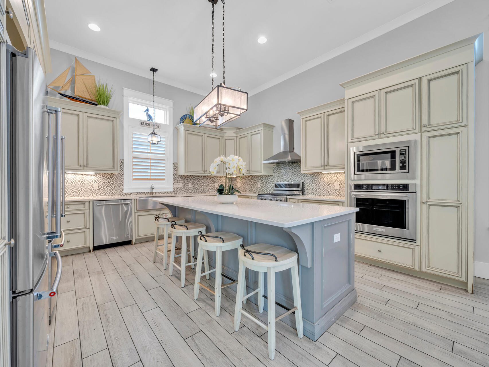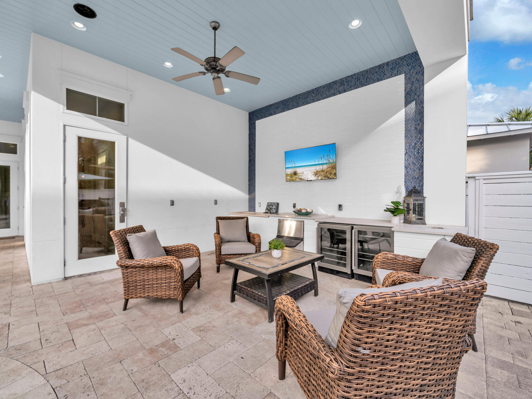 450 feet to DEEDED beach access. ''Born to Sun'' is a 9 bedroom/10 bathroom Coastal Retreat with deeded beach access and an established history of ACTUAL rental bookings year after year. Inquire for multi-year details. ACTUAL booked rental income of $261,000 in 2024 with owner usage. Over $220,000 on the books so far in 2025 with owner usage. 6-seater golf cart is included!This Frangista Beach home, designed by B Design, was completed in 2016 and is built on an oversized 65 ft. by 100 ft. lot, located one block from the deeded beach access for the community. Enjoy one of the best private pools in the entire neighborhood. All king suites have private baths that are custom detailed with tile and chrome fixtures. These suites are serviced by an elevator that carries guests and luggage to the 2nd and 3rd floors. The queen suite on the first floor has a private bath which overlooks the large private heated pool.