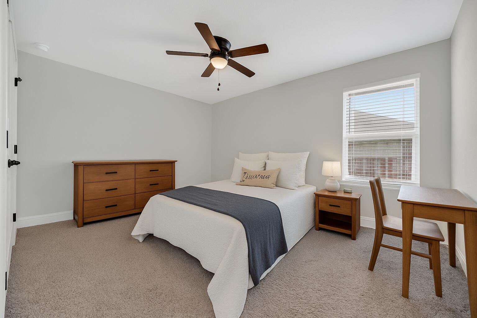 Welcome to this stunning 2021 brick home, thoughtfully crafted with elegant details throughout! Nestled in the well kept neighborhood of Plantation Woods, enjoy the freedom of no HOA along with an extended driveway, perfect for parking a boat or RV with ease. With a four-year-old roof, water heater, and HVAC, you can enjoy peace of mind knowing the major systems are up to date. Inside, neutral paint and LVP flooring create a seamless, inviting atmosphere across the open floor plan. The kitchen is a beauty, offering granite countertops, an island, a spacious pantry, and stainless steel appliances. Elegant tray ceilings and graceful archways add architectural charm, while the expansive 11x45 screened porch just off the living room extends your relaxation outdoors and offers the perfect p lace to unwind! The split primary suite features carpet, a tray ceiling and private screened in porch access. The en suite bathroom offers dual vanities, two expansive closets, a soaking tub, separate shower, and a water closet. For laundry made easy, there is direct access from one of the two closets to the laundry room. On the opposite side of the home, you'll find 2 hallways leading to two full bathrooms and three additional bedrooms, providing privacy for family members or guests. Each bedroom features carpet, a ceiling fan and ample closet space. The fifth bedroom is located just off the kitchen, offering versatile use to suit your lifestyle. With durable LVP flooring it's ideal as a bedroom, home office, gym, or even playroom. Outside, the peaceful backyard is enclosed with a privacy fence and surrounded by mature trees, creating a calming oasis. The property also includes an 11x11 shed for extra storage and a two-car garage with a workbench. This home is ideally located near the interstate for an easy commute and just 25 minutes from Navarre Beach and Pensacola. Move in ready and well cared for, this property is prepared to welcome its next family!