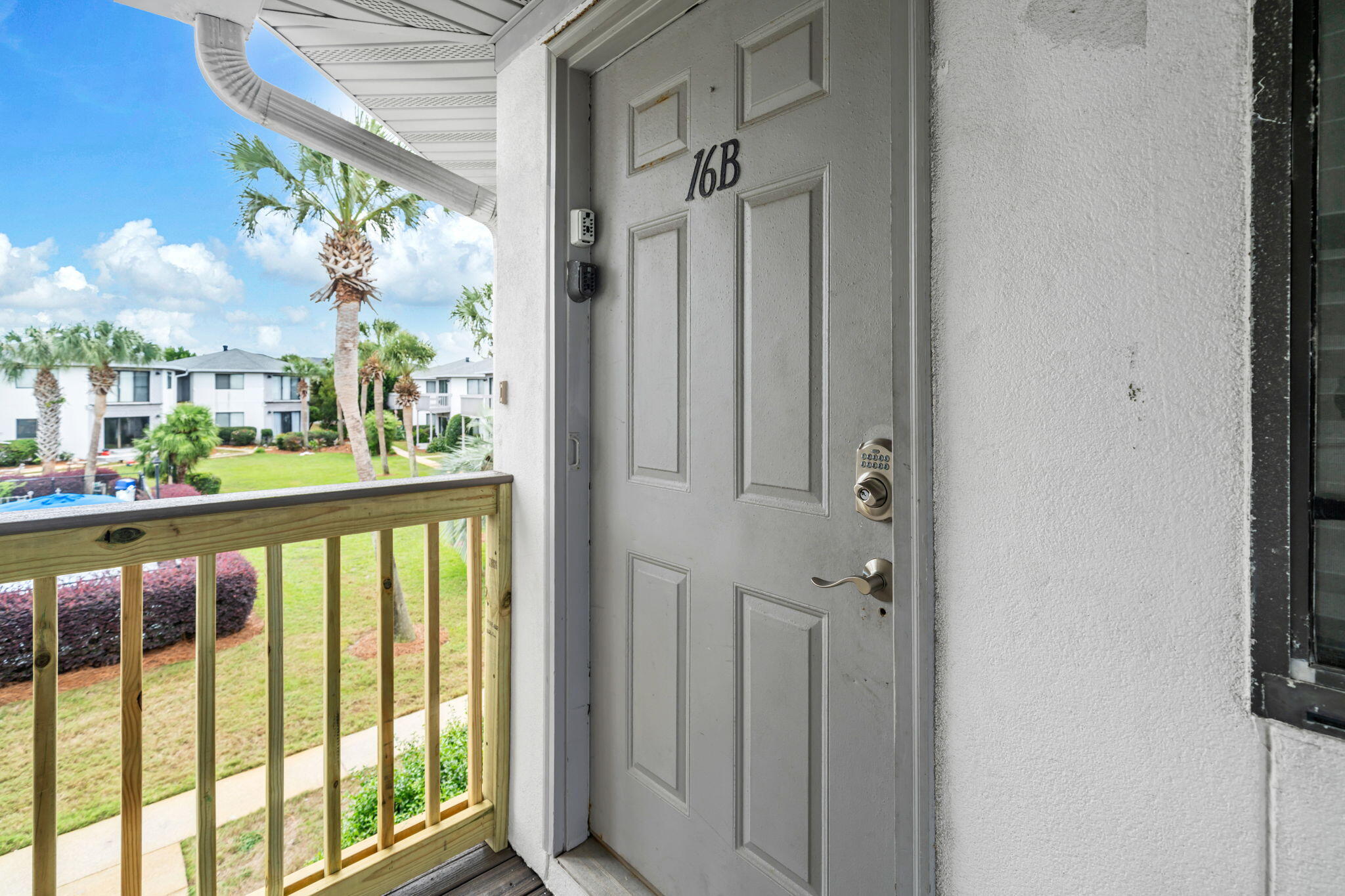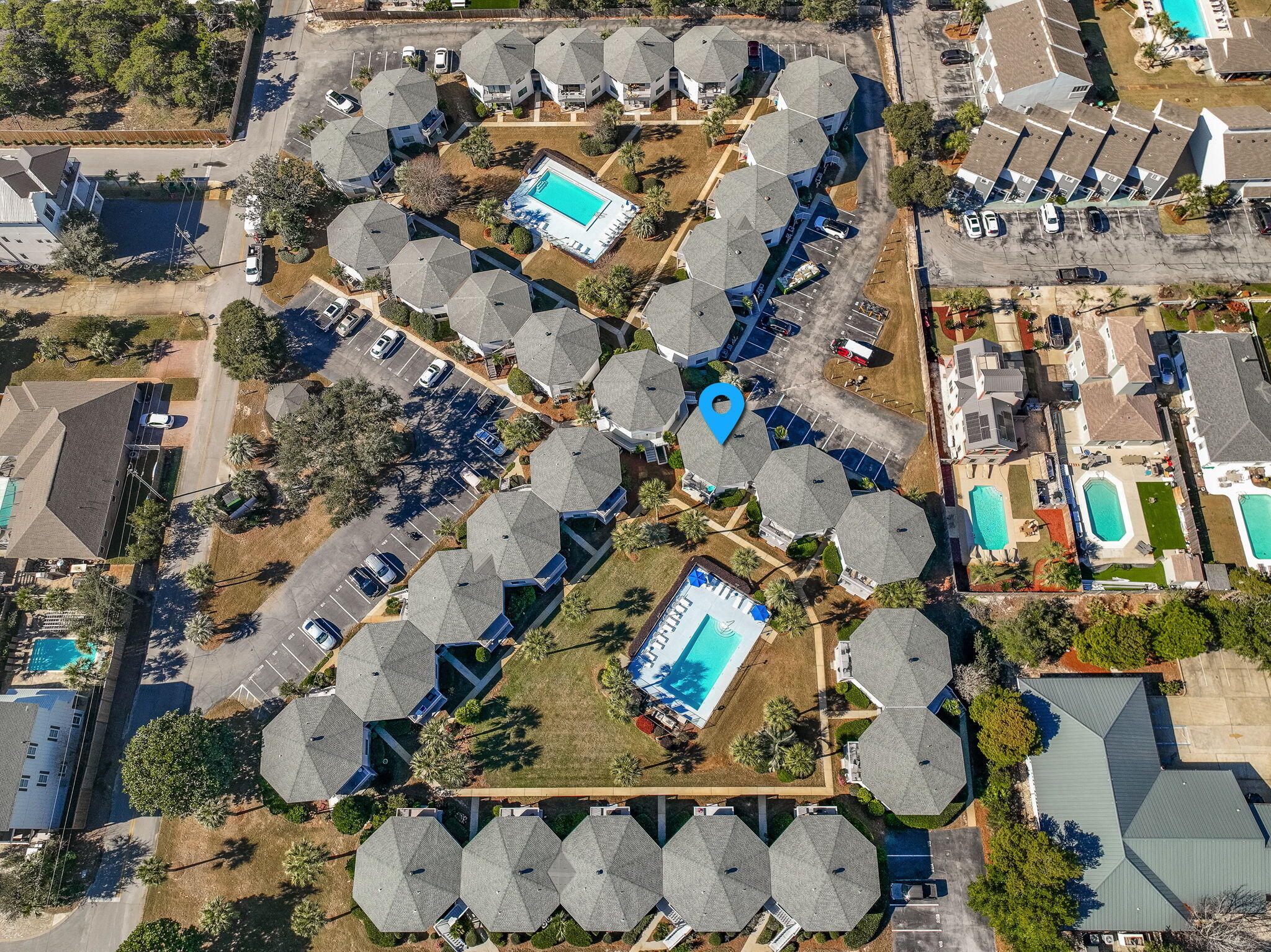 From Hwy.98 , go South on Ellis Rd.(at Fountain Plaza, across from McDonalds) Turn Left at 2nd stop sign and look for Octagonal shaped condos. Take first right and look for 16B.