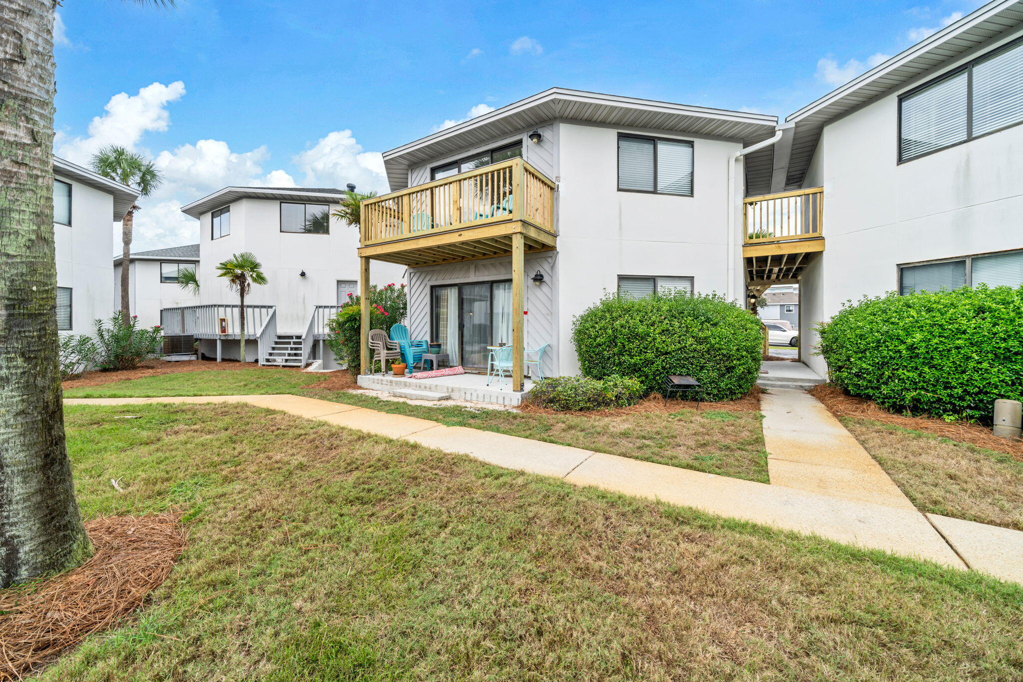 Fantastic Investment Opportunity or Beach Getaway!This beautifully renovated top-floor 2-bedroom, 2-bath condo is ideally located just 21/2 blocks from the beach. The open-concept floor plan provides a spacious feel and features beautiful views of the courtyard, pool, and lush tropical landscaping. The unit now boasts brand-new stairs and a newly rebuilt balcony.One of only eight units in the complex offering a private shared breezeway. The primary suite includes its own private bath and a large closet. Each unit comes with two designated parking spaces. Enjoy coastal living at its best -- just a short walk from beach access, dining, and entertainment.
