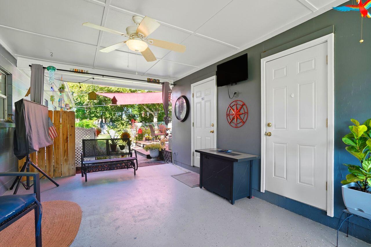 EXTERIOR | Columns,Deck Open,Fenced Back Yard,Fenced Lot-All,Fenced Privacy,Lawn Pump,Patio Covered,Porch,Porch Open,Rain Gutter,Renovated,Shower,Sprinkler System,Workshop,Yard Building |