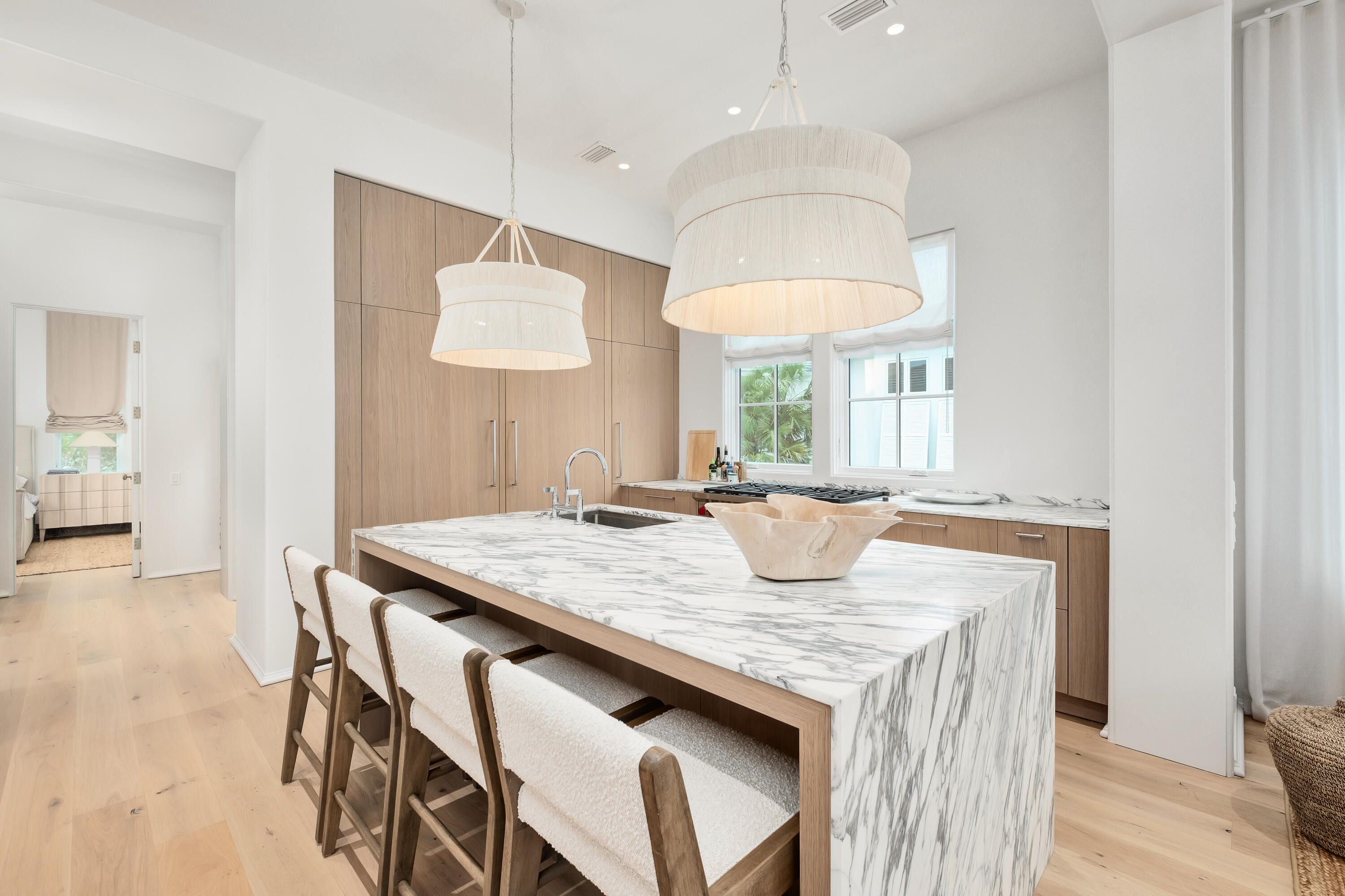 Experience luxury and coastal elegance in this exquisite custom built home located within the prestigious private gated property of Jasmine Dunes in Seagrove beach. Situated in a second-tier location, the property offers breathtaking views of the Gulf, ensuring a serene and exclusive coastal living experience. Step outside your door and within one minute you'll find yourself on the pristine white sands of the Gulf, accessible via an exclusive private beach reserved solely for property owners of Jasmine Dunes. Crafted by the renowned award-winning developer Benecki Homes of Atlanta and designed by acclaimed designer Melanie Turner of MTI Atlanta this home exemplifies superior craftsmanship and attention to detail. This meticulously designed home meets every expectation with its well thought out layout and luxurious features. Boasting 4 bedrooms each with its own en-suite bath it provides ample space for family and guests. The lower level features a family room overlooking a private pool, perfect for relaxation and entertainment. A fitness room adds to the homes amenities, catering to a lifestyle of wellness and leisure. The second level is designed for seamless indoor/ outdoor living with the living dining and kitchen areas all offering stunning views of the Gulf. An elevator ensures easy access between floors, while the oversized single garage provides convenient parking and storage. No detail has been overlooked in the customization of this home, featuring Venetian plaster walls, French oak flooring, and select marble in all baths adorned with Kohler and Waterworks fixtures. The kitchen is the chef's dream, equipped with Wolf and SubZero appliances, complemented by Italian cabinetry. Outdoor living is equally impressive, with the second level terrace providing a perfect spot to enjoy the Gulf views and coastal breezes. This home at Jasmine Dunes not only meets but exceeds all expectations of luxury coastal living, offering unparalleled comfort, elegance, end exclusivity in one of the most desirable beachfront communities on the Gulf Coast.