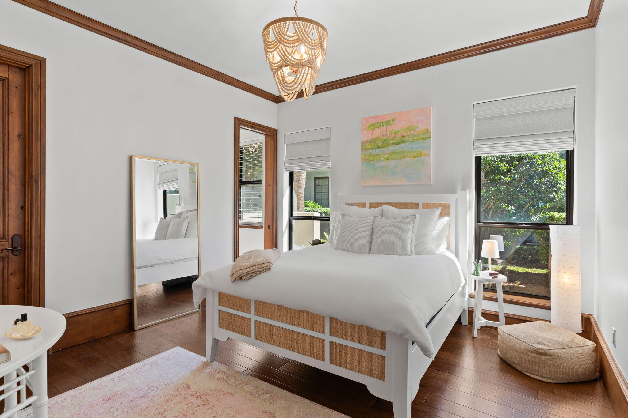 From Baytowne Ave. Take a left onto Club Dr., and the Burnt Pine security gate. Take a right onto Burnt Pine Lane and follow it past the Golf Club, and turn left into The Preserve. The home will be down in the cul-de-sac and on the left.