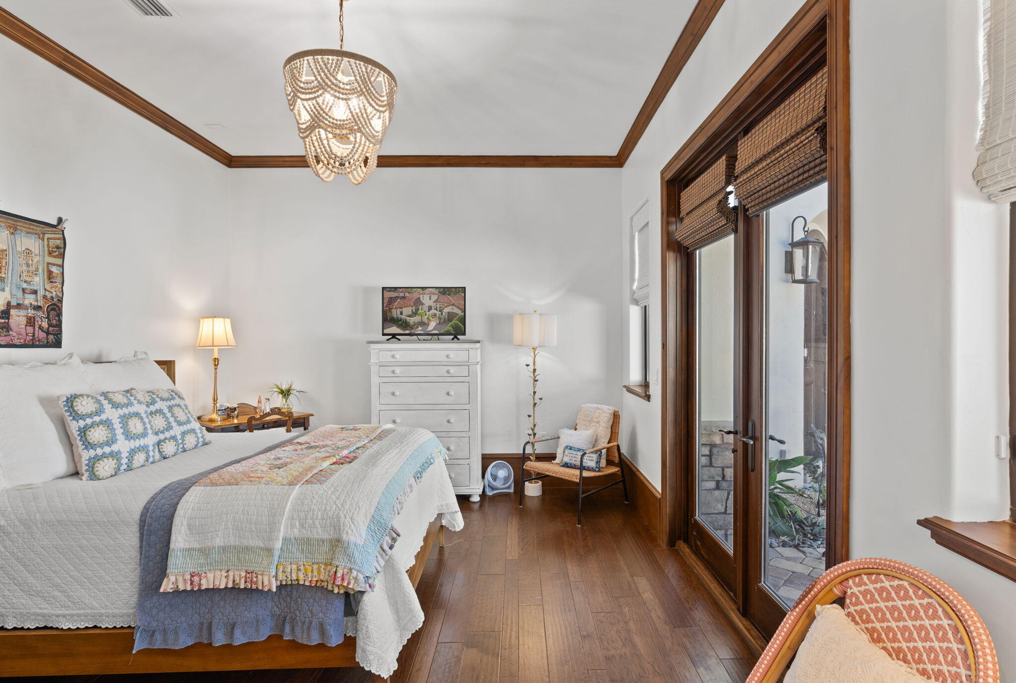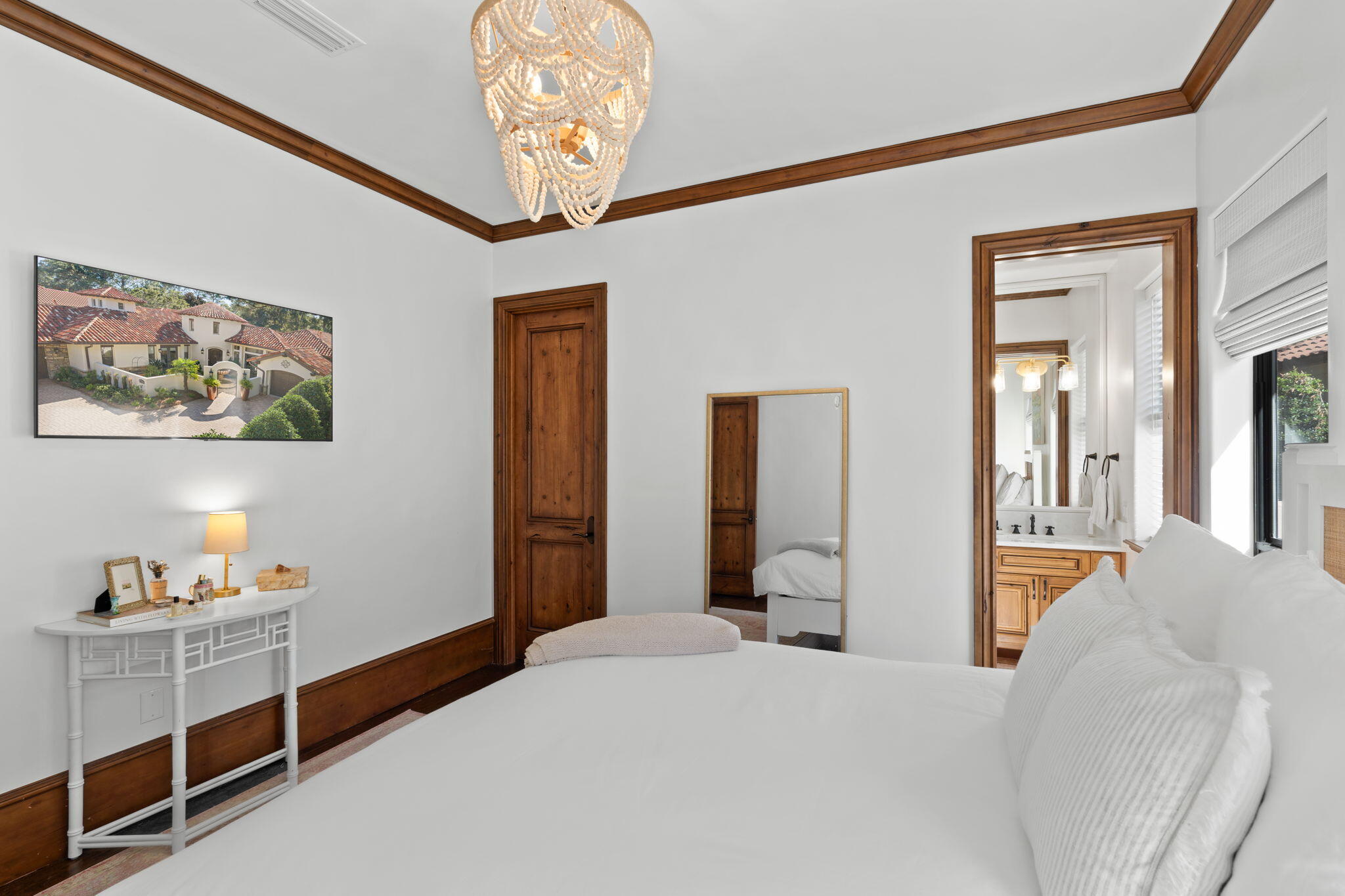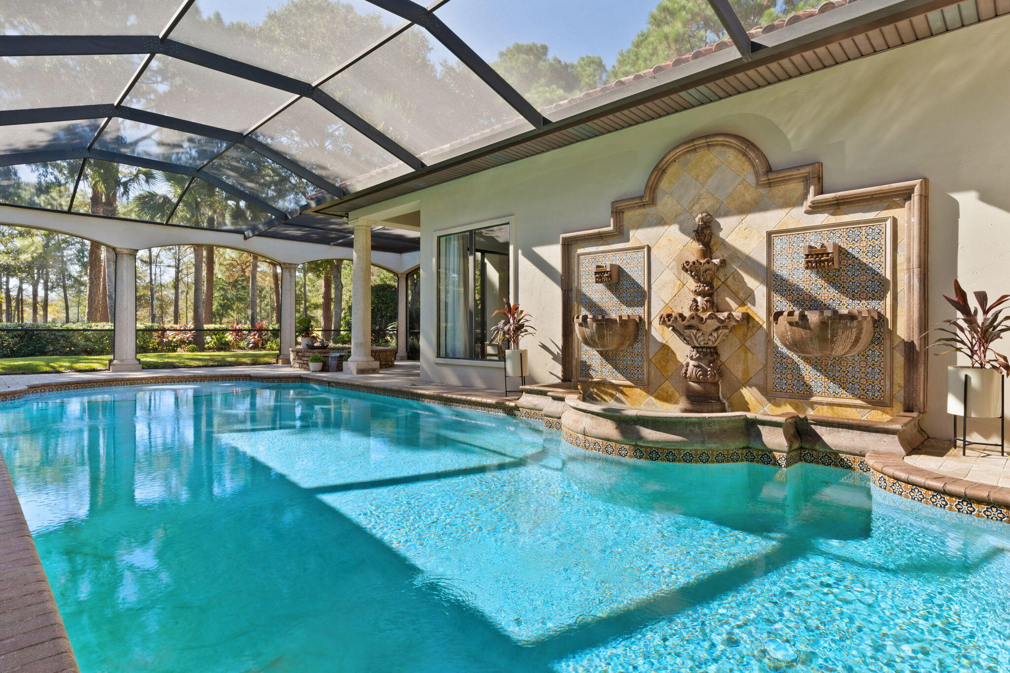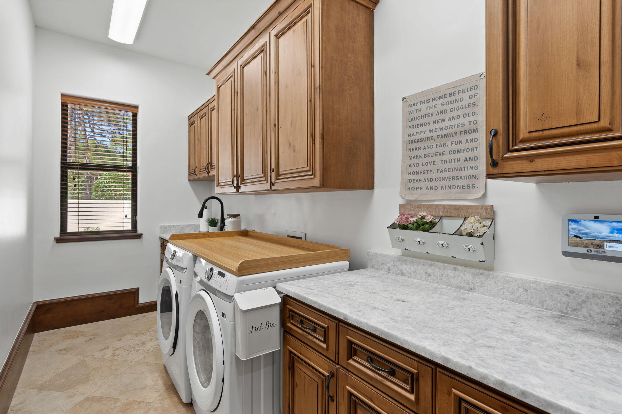 This exquisite custom-built, sprawling, single story home is truly one of a kind. Tucked away on a prime, estate sized lot and cul-de-sac, located in the gated neighborhood of Burnt Pine and on the 2nd tee box of the Burnt Pine Golf Course, is a Tuscan inspired treasure. At 3,949 sq. ft., 3 beds, 5 baths, plus office, built by Sweet Homes as the builder's residence, the finishes are beautifully extraordinary. The many authentic wooden beams and wood planked ceilings are a timeless feature and from the illuminated brick covered barrel hallway ceiling to the stone accent walls, it is a showplace of craftsmanship and architectural design. Enter by an arched courtyard gate that leads to a tranquil, cascading fountain. The grand foyer, with its impressive twenty foot turret wooden ceiling is simply stunning. With a popular open floor plan, the kitchen flows out to many rooms including the spacious dining room, suitable for an elegant dinner party with its a stone gas fireplace, beautiful hardwood flooring, attractive custom built-ins, vaulted wood ceiling and with views and access to a side courtyard. The wine room, with its pretty iron gate, breakfast nook, double door pantry, oversized granite island, perfect for serving and entertaining, are all part of the kitchen. The unique three-sided, stone, gas fireplace that graces the kitchen, breakfast nook, and living room adds lots of charm and seasonal warmth during the cooler evenings. A stone arched way and brick accented walls are also found in the kitchen, along with wooden beamed ceilings and many bronze iron lighting fixtures. Custom, pecan-stained wood cabinetry and millwork are all high-end features found throughout the entire estate the along with 12 foot and taller ceilings. This gourmet kitchen is not only functional, but lovely. It overlooks the large, heated, salt water pool, spa, and wall of fountains. It is the heart of the home with its stainless appliances, including a Bosch dishwasher, a built-in, oversized GE Monogram refrigerator freezer, five burner gas stove with hood vent, warming drawer, double wall ovens and microwave. The home has a built-in sound system in most rooms. Enter the the grand living room and find hardwood flooring and the same pecan-stained wood entertainment center. The ceiling in the living room is showy with more of those eye-catching beams and shiplap styled woodwork and another fabulous, iron lighting fixture. Like the dining room, the living room can easily accommodate the entire family during special occasions, but cozy enough for just two. The walls of sliding glass doors found in the living room stack open presenting a seamless appearance between the indoors and outdoors. They allow access onto the spacious, and recently re-screened outdoor living, dining, lounging, heated pool, spa and wall of fountains. The home wraps around the pool and fountains as it is the focal point. Also found there is the outdoor kitchen which includes a serving island, new Thor double stainless refrigerated beverage drawers, and a new Thor ice maker, a built-in Viking gas grill with a vent hood, more custom cabinetry for added storage, another stone, gas fireplace with wood mantle, TV cabinet, a shiplap ceiling with many beams and six ceiling fans. It's a fabulous place to gather and dine while enjoying our wonderful weather. Or just relax, read a good book and let stress melt away. It accesses a full bath and includes a storage closet. Moving back inside, you will find the master en-suite which overlooks and accesses this great outdoor living area. It really is a special retreat with two full baths, his and hers, a large walk-in/through closet, with many built-in cabinetry, and has a coffee/wet bar with a mini fridge. In keeping with custom features, a trey ceiling, those beautiful hardwood floors and the custom pecan-stained wood cabinets are present. One master bath has a double vanity, a large shower, a free standing spa bathtub, water closet, and a linen closet. The other bath has a shower, single vanity, toilet, and with access to the pool and spa. Designed with a split floor plan, the two guest suites are on the opposite side of the home offering privacy for all. These spacious en-suite guest bedrooms not only have their attached private full baths, they include the hardwood flooring and both have walk-in closets. One guest suite accesses the fountain courtyard for private entry and exit, and the other guest bedroom suite views the side courtyard. The executive office continues with a wall of custom cabinetry for electronics and books, wood flooring, and even has a hidden safe room. The office looks onto and accesses both the front courtyard, for a private entry and exit, and the screened outdoor living area, pool, and the fountains with its trickling water falls that can be heard if the glass doors there are open making it a peaceful working place. The laundry room includes a stainless sink for washing out those sandy bathing suits, and the full sized washer and dryer. There is a security system, central vacuum cleaning system and the home can be entered through the attached two car garage. There is also a separate golf cart garage. No detail has been overlooked here. There is also beautiful landscape lighting on a timer. The exterior has recently been painted with an attractive, off-white shade of Rhino-shield paint, good for many years, two of the three HVAC systems where replaced in 2020 and 2022 with American Standard units, and the two new Navien, tankless, gas hot water heaters were replaced in 2022 along with the GE Monogram microwave oven.