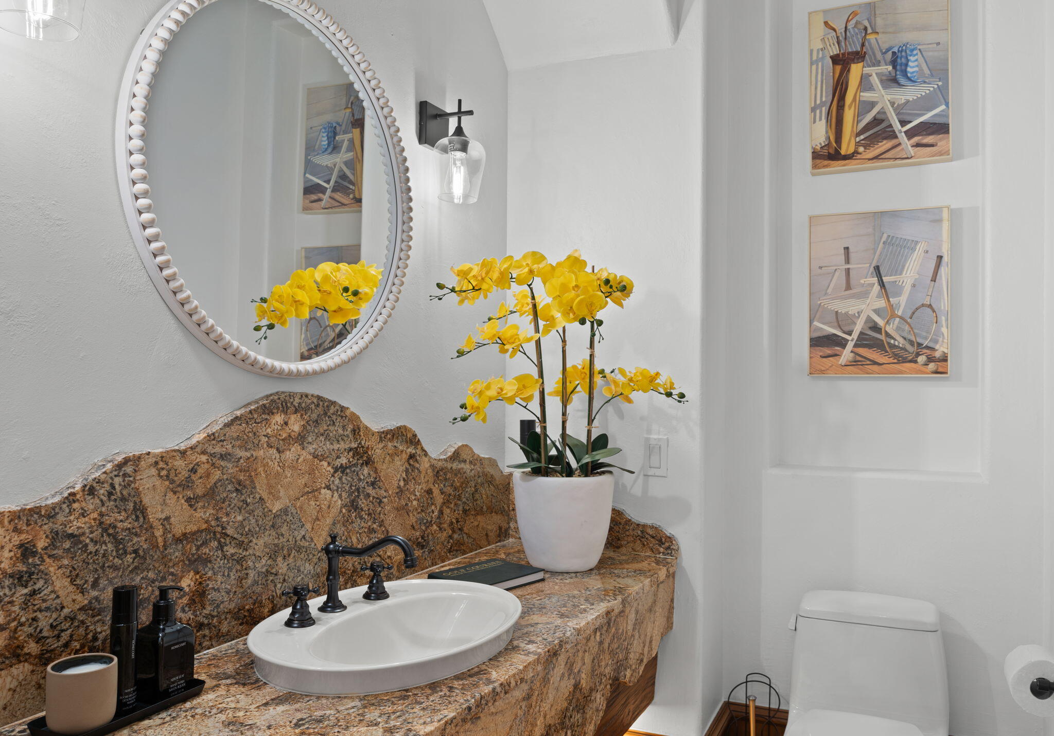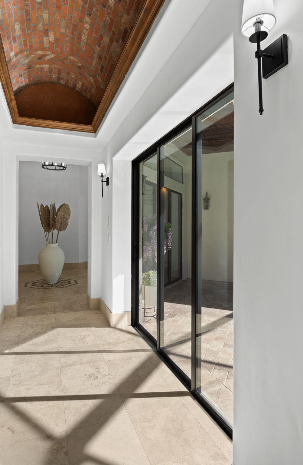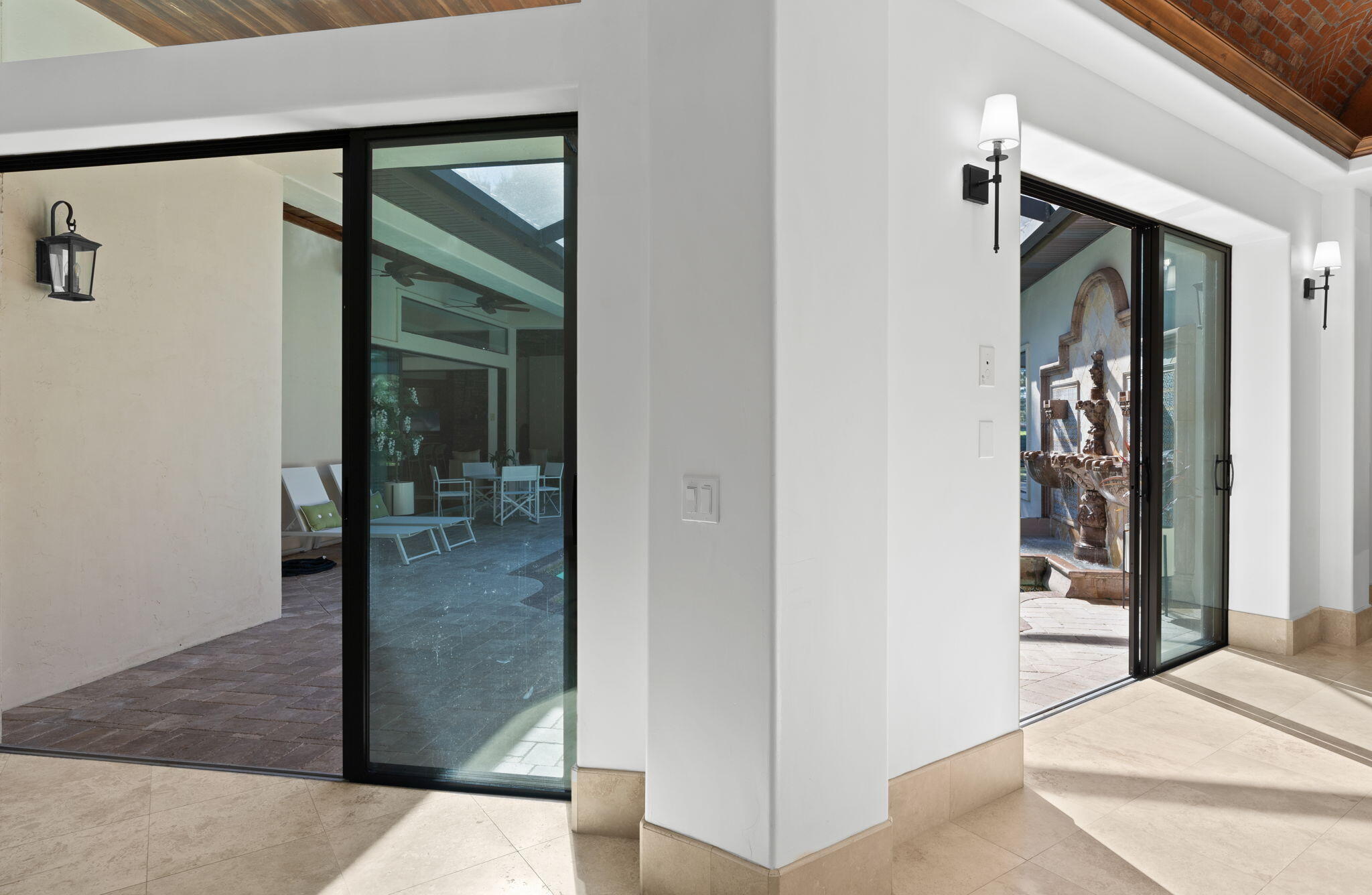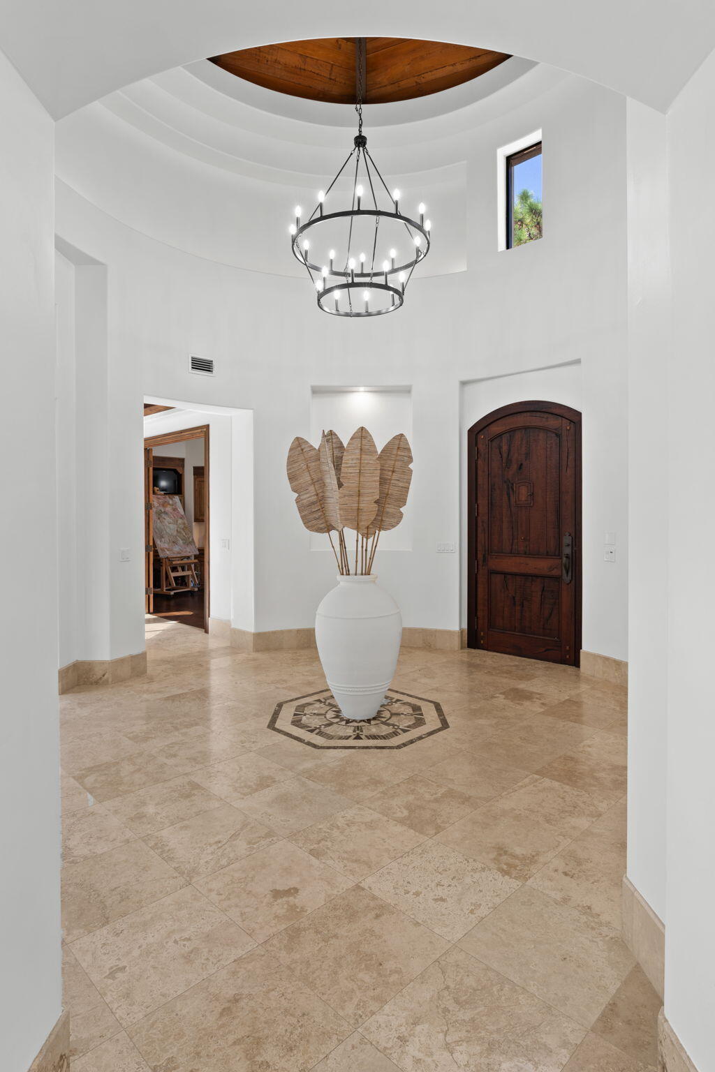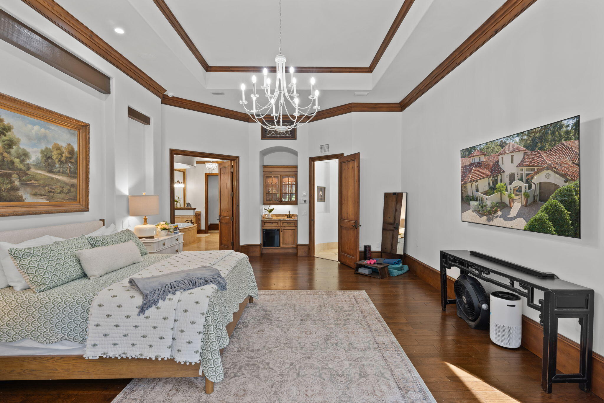 This exquisite custom-built, sprawling, single story home is truly one of a kind. Tucked away on a prime, estate sized lot and cul-de-sac, located in the gated neighborhood of Burnt Pine and on the 2nd tee box of the Burnt Pine Golf Course, is a Tuscan inspired treasure. At 3,949 sq. ft., 3 beds, 5 baths, plus office, built by Sweet Homes as the builder's residence, the finishes are beautifully extraordinary. The many authentic wooden beams and wood planked ceilings are a timeless feature and from the illuminated brick covered barrel hallway ceiling to the stone accent walls, it is a showplace of craftsmanship and architectural design. Enter by an arched courtyard gate that leads to a tranquil, cascading fountain. The grand foyer, with its impressive twenty foot turret wooden ceiling is simply stunning. With a popular open floor plan, the kitchen flows out to many rooms including the spacious dining room, suitable for an elegant dinner party with its a stone gas fireplace, beautiful hardwood flooring, attractive custom built-ins, vaulted wood ceiling and with views and access to a side courtyard. The wine room, with its pretty iron gate, breakfast nook, double door pantry, oversized granite island, perfect for serving and entertaining, are all part of the kitchen. The unique three-sided, stone, gas fireplace that graces the kitchen, breakfast nook, and living room adds lots of charm and seasonal warmth during the cooler evenings. A stone arched way and brick accented walls are also found in the kitchen, along with wooden beamed ceilings and many bronze iron lighting fixtures. Custom, pecan-stained wood cabinetry and millwork are all high-end features found throughout the entire estate the along with 12 foot and taller ceilings. This gourmet kitchen is not only functional, but lovely. It overlooks the large, heated, salt water pool, spa, and wall of fountains. It is the heart of the home with its stainless appliances, including a Bosch dishwasher, a built-in, oversized GE Monogram refrigerator freezer, five burner gas stove with hood vent, warming drawer, double wall ovens and microwave. The home has a built-in sound system in most rooms. Enter the the grand living room and find hardwood flooring and the same pecan-stained wood entertainment center. The ceiling in the living room is showy with more of those eye-catching beams and shiplap styled woodwork and another fabulous, iron lighting fixture. Like the dining room, the living room can easily accommodate the entire family during special occasions, but cozy enough for just two. The walls of sliding glass doors found in the living room stack open presenting a seamless appearance between the indoors and outdoors. They allow access onto the spacious, and recently re-screened outdoor living, dining, lounging, heated pool, spa and wall of fountains. The home wraps around the pool and fountains as it is the focal point. Also found there is the outdoor kitchen which includes a serving island, new Thor double stainless refrigerated beverage drawers, and a new Thor ice maker, a built-in Viking gas grill with a vent hood, more custom cabinetry for added storage, another stone, gas fireplace with wood mantle, TV cabinet, a shiplap ceiling with many beams and six ceiling fans. It's a fabulous place to gather and dine while enjoying our wonderful weather. Or just relax, read a good book and let stress melt away. It accesses a full bath and includes a storage closet. Moving back inside, you will find the master en-suite which overlooks and accesses this great outdoor living area. It really is a special retreat with two full baths, his and hers, a large walk-in/through closet, with many built-in cabinetry, and has a coffee/wet bar with a mini fridge. In keeping with custom features, a trey ceiling, those beautiful hardwood floors and the custom pecan-stained wood cabinets are present. One master bath has a double vanity, a large shower, a free standing spa bathtub, water closet, and a linen closet. The other bath has a shower, single vanity, toilet, and with access to the pool and spa. Designed with a split floor plan, the two guest suites are on the opposite side of the home offering privacy for all. These spacious en-suite guest bedrooms not only have their attached private full baths, they include the hardwood flooring and both have walk-in closets. One guest suite accesses the fountain courtyard for private entry and exit, and the other guest bedroom suite views the side courtyard. The executive office continues with a wall of custom cabinetry for electronics and books, wood flooring, and even has a hidden safe room. The office looks onto and accesses both the front courtyard, for a private entry and exit, and the screened outdoor living area, pool, and the fountains with its trickling water falls that can be heard if the glass doors there are open making it a peaceful working place. The laundry room includes a stainless sink for washing out those sandy bathing suits, and the full sized washer and dryer. There is a security system, central vacuum cleaning system and the home can be entered through the attached two car garage. There is also a separate golf cart garage. No detail has been overlooked here. There is also beautiful landscape lighting on a timer. The exterior has recently been painted with an attractive, off-white shade of Rhino-shield paint, good for many years, two of the three HVAC systems where replaced in 2020 and 2022 with American Standard units, and the two new Navien, tankless, gas hot water heaters were replaced in 2022 along with the GE Monogram microwave oven.