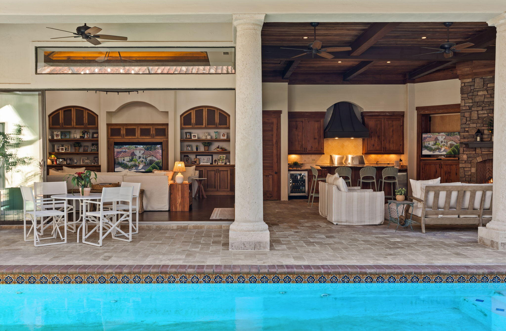 EXTERIOR | BBQ Pit/Grill,Columns,Fireplace,Hot Tub,Patio Covered,Patio Enclosed,Pool - Enclosed,Pool - Gunite Concrt,Pool - Heated,Pool - In-Ground,Porch,Porch Open,Porch Screened,Rain Gutter,Sprinkler System,Summer Kitchen |