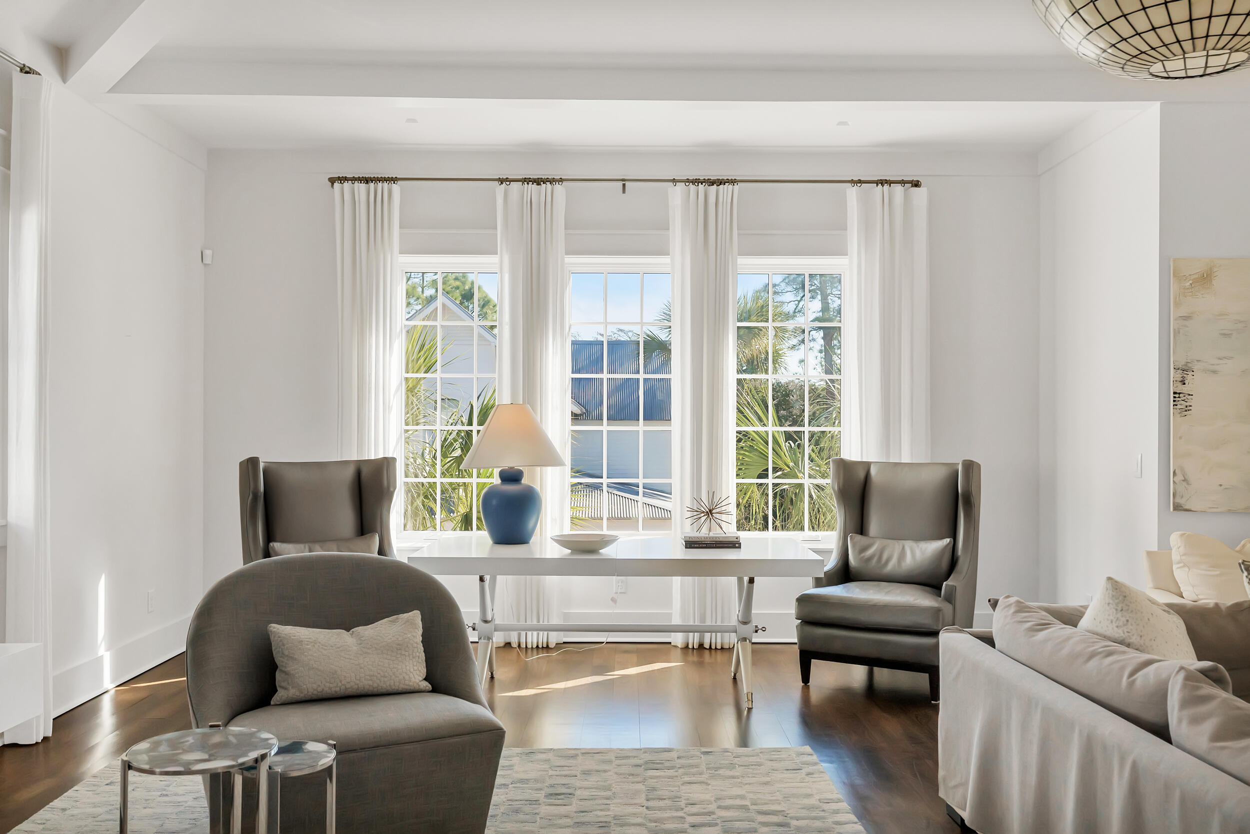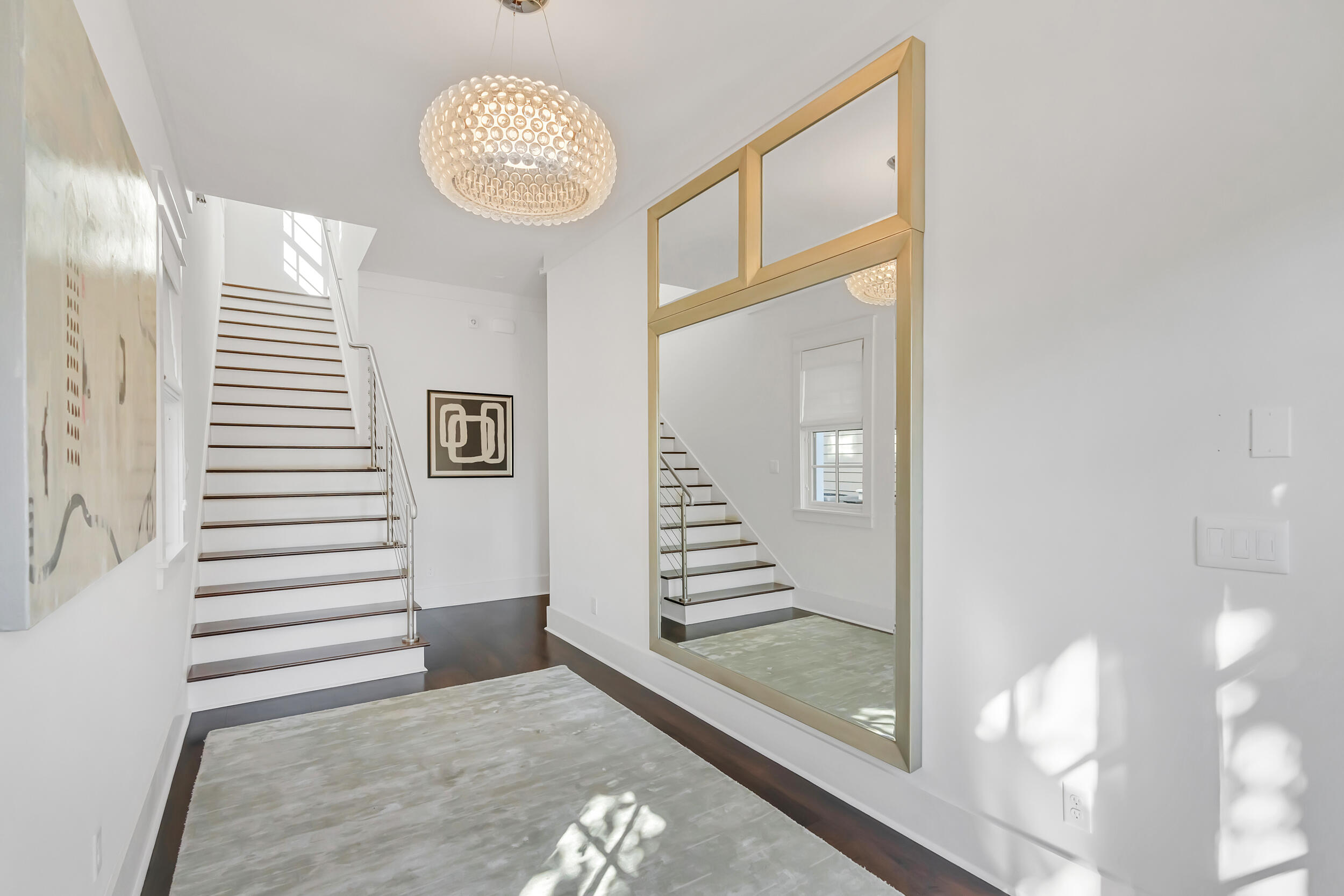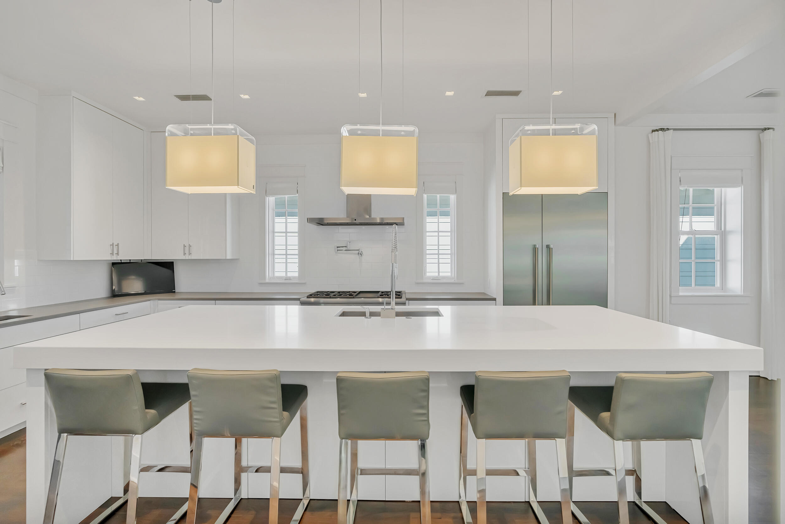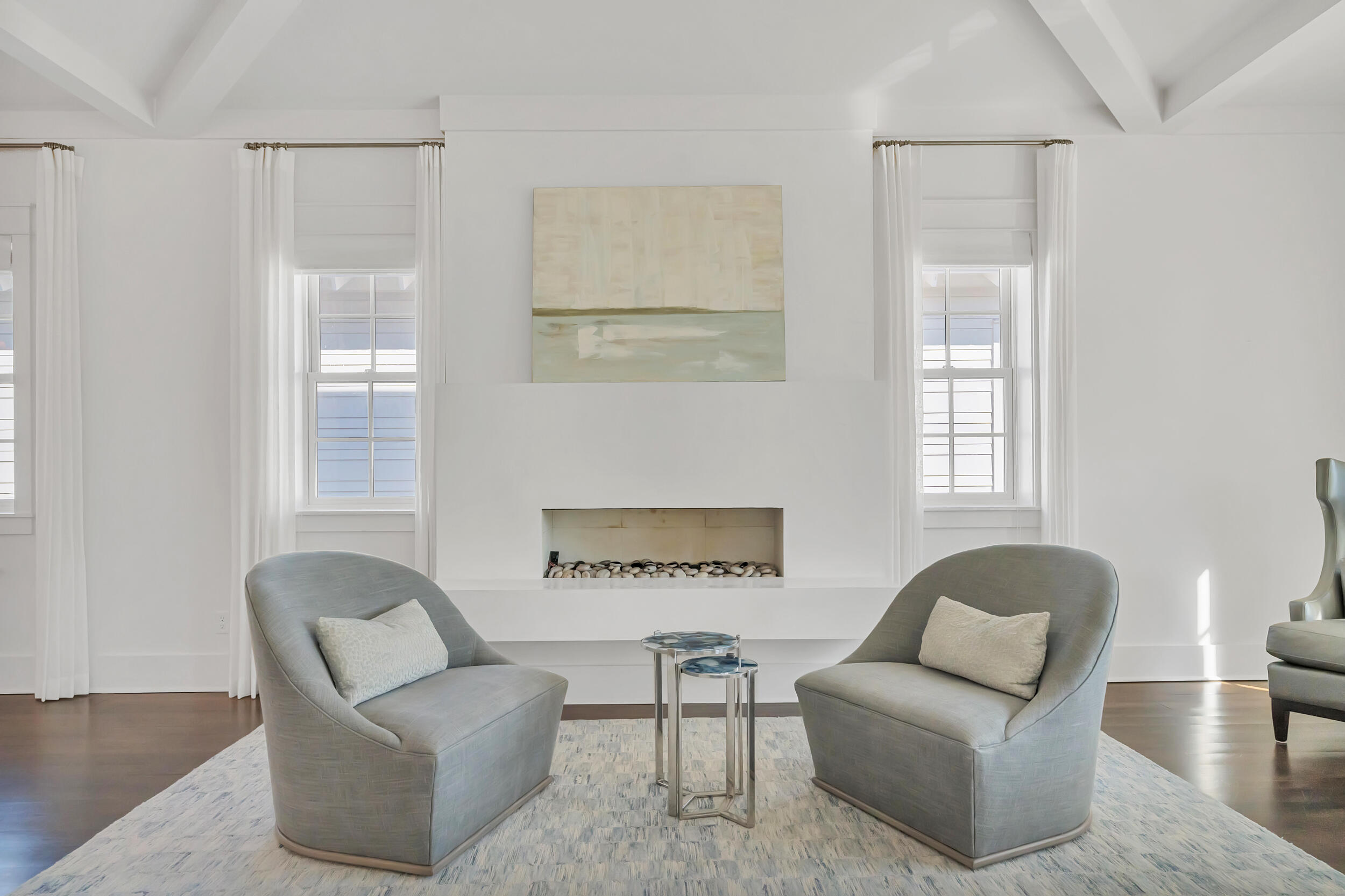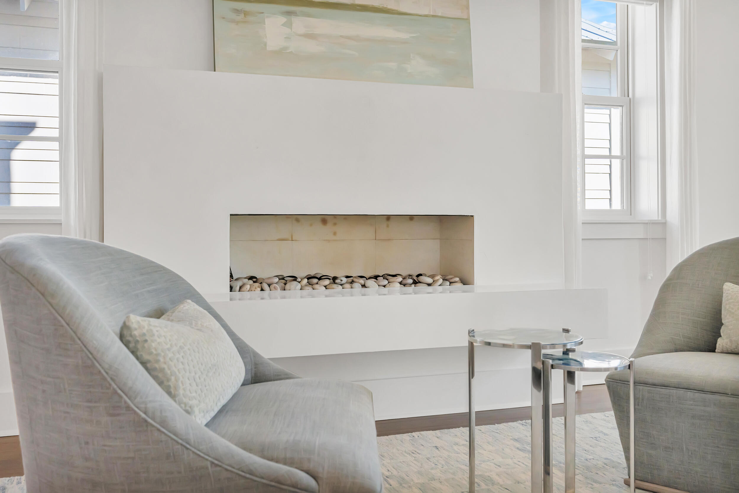 Experience the pinnacle of luxury living at 69 Cypress Dunes, where elegance and serenity merge within an exclusive gated community. This exquisite modern home spans 3,564 square feet, offering four bedrooms plus a study, and four and a half bathrooms, all meticulously designed with contemporary finishes. As you enter the foyer, you're immediately embraced by an atmosphere of refined sophistication. The second floor is the heart of entertainment, with a spacious living room featuring a striking Venetian plaster fireplace, custom drapery, vaulted ceilings, and a stunning designer globe light fixture. Just off the living room, a dining area with a well-appointed bar, ice maker, and wine fridge, flows seamlessly into the gourmet kitchen.