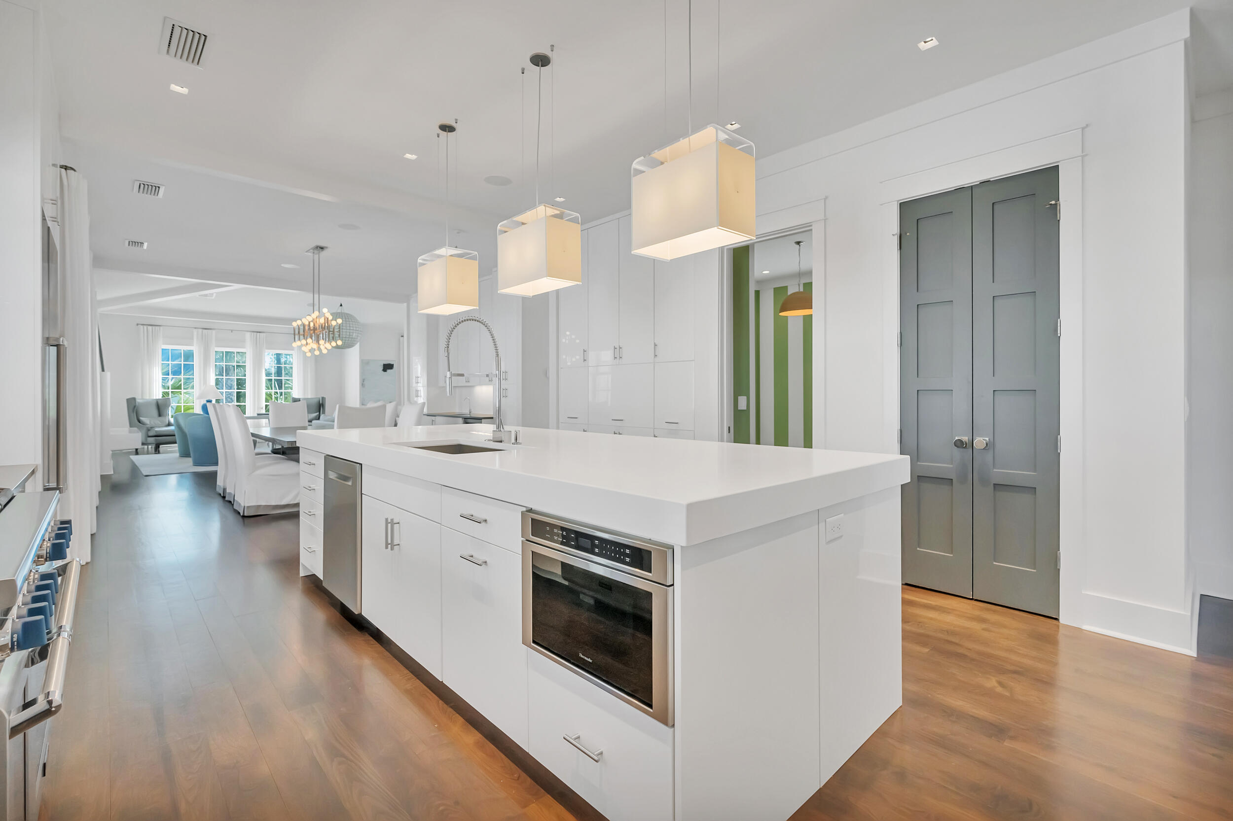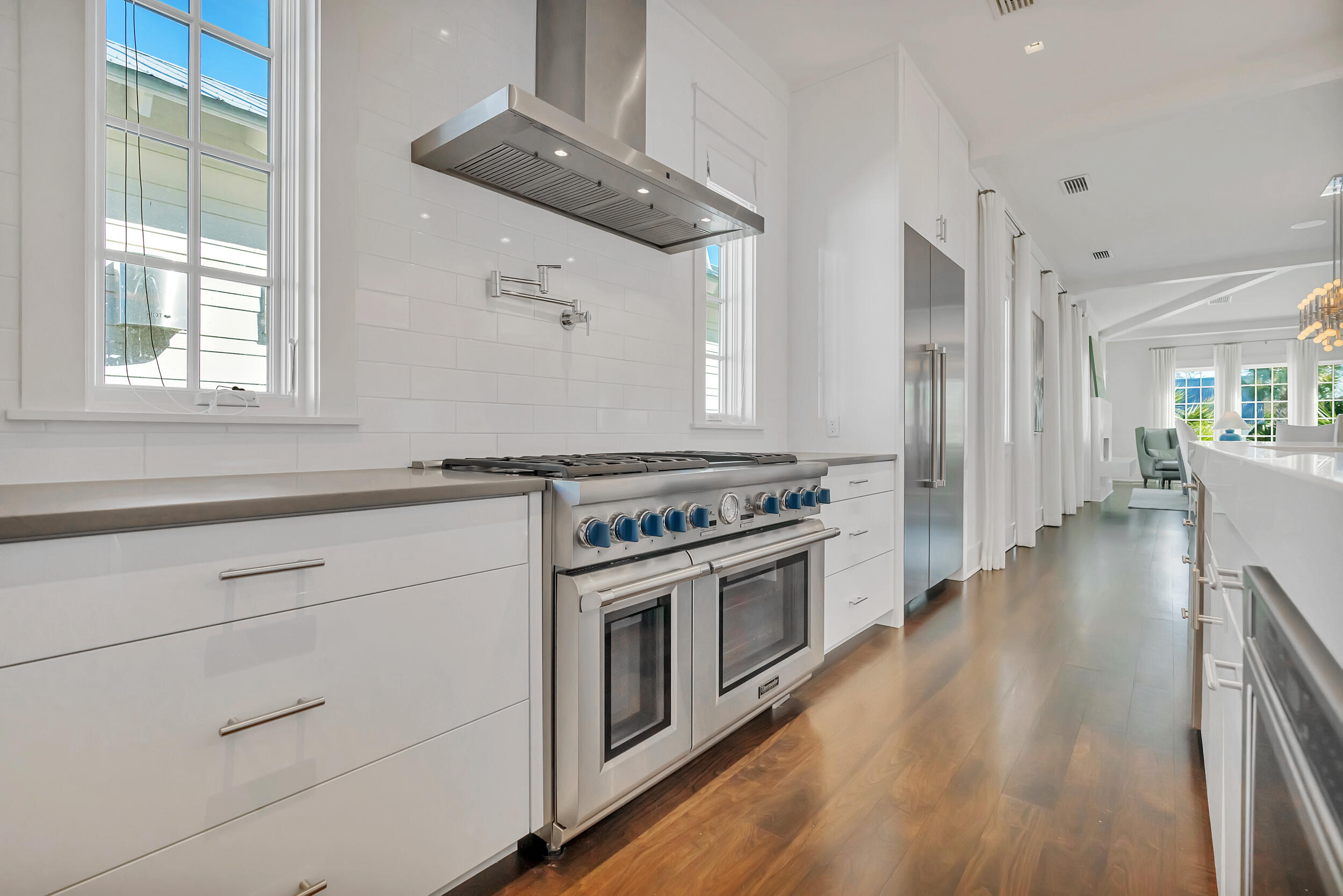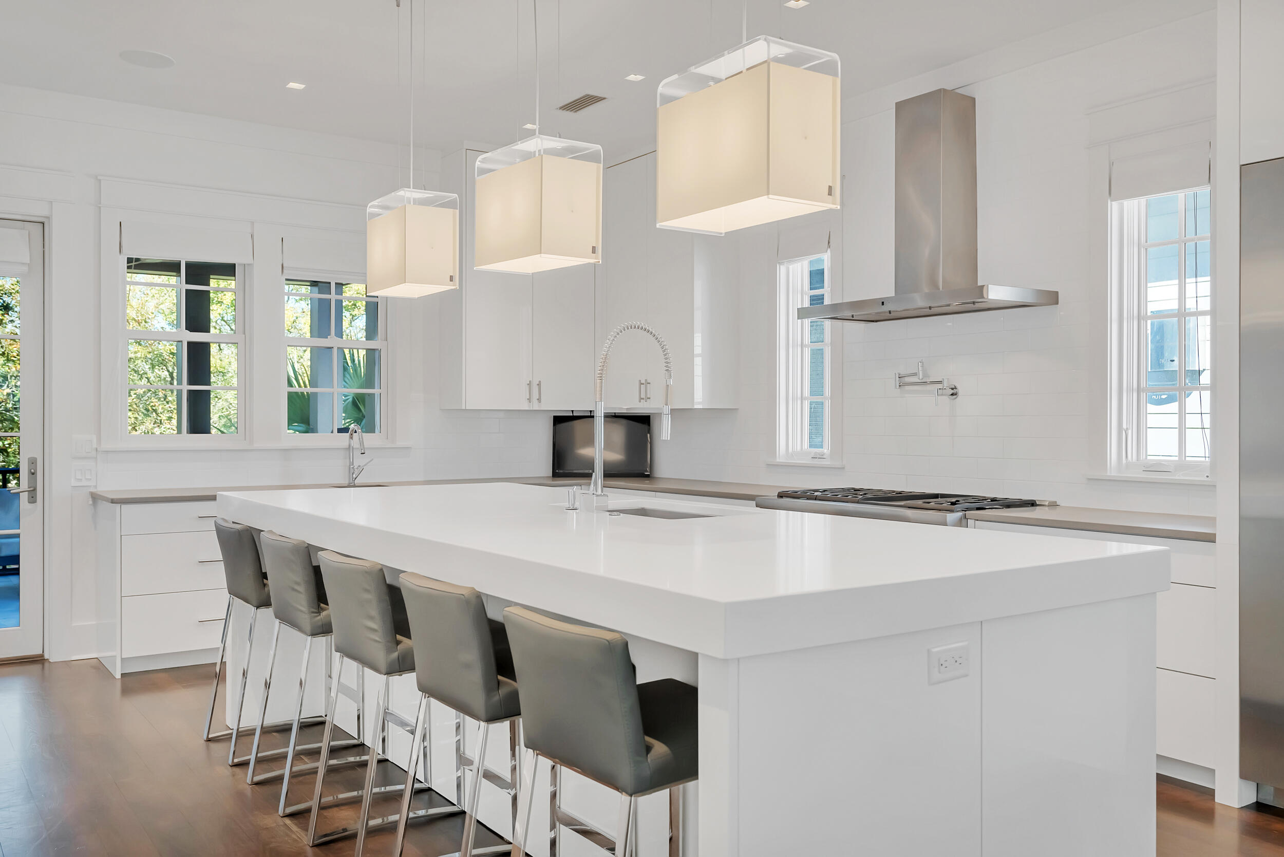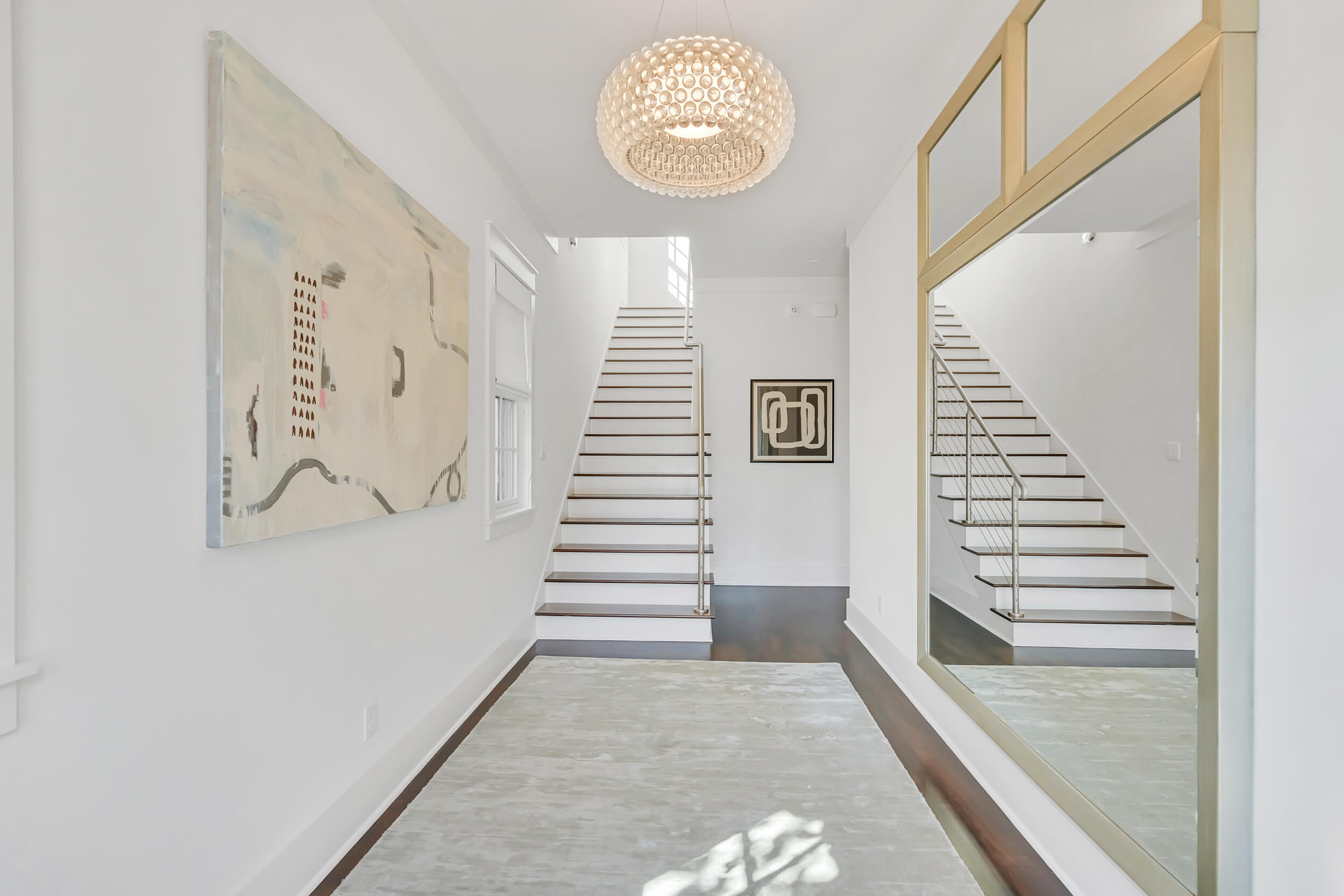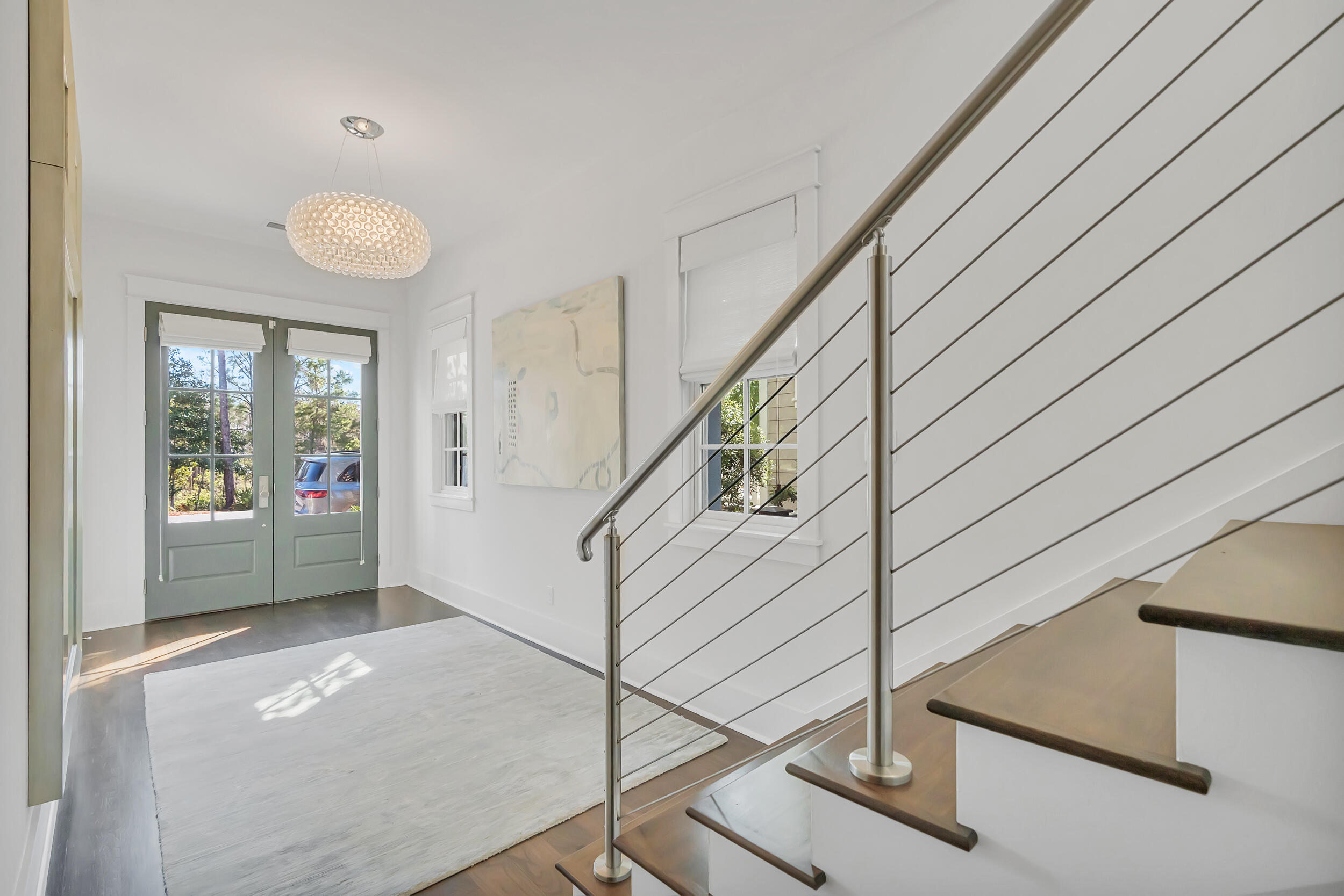 Experience the pinnacle of luxury living at 69 Cypress Dunes, where elegance and serenity merge within an exclusive gated community. This exquisite modern home spans 3,564 square feet, offering four bedrooms plus a study, and four and a half bathrooms, all meticulously designed with contemporary finishes. As you enter the foyer, you're immediately embraced by an atmosphere of refined sophistication. The second floor is the heart of entertainment, with a spacious living room featuring a striking Venetian plaster fireplace, custom drapery, vaulted ceilings, and a stunning designer globe light fixture. Just off the living room, a dining area with a well-appointed bar, ice maker, and wine fridge, flows seamlessly into the gourmet kitchen.