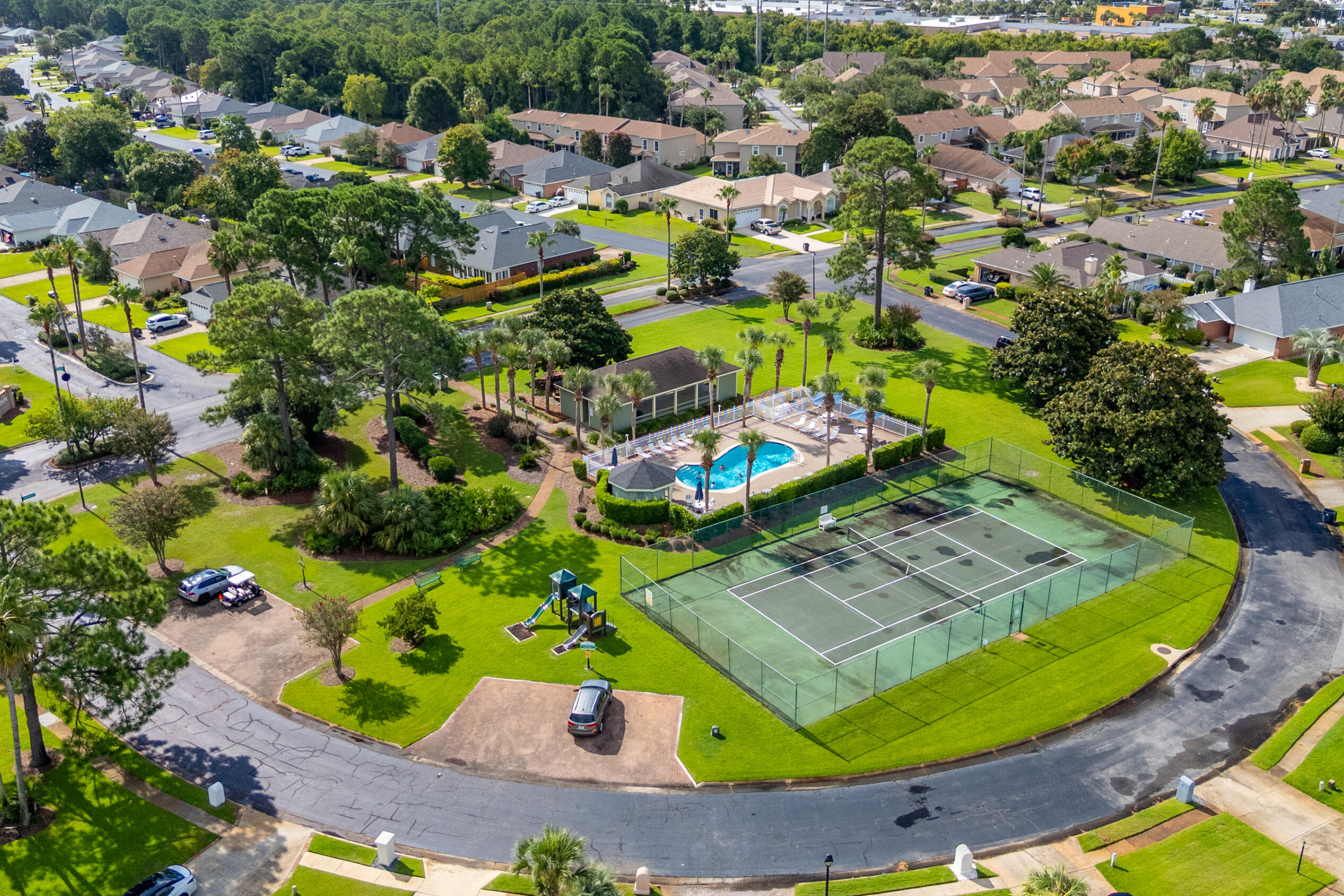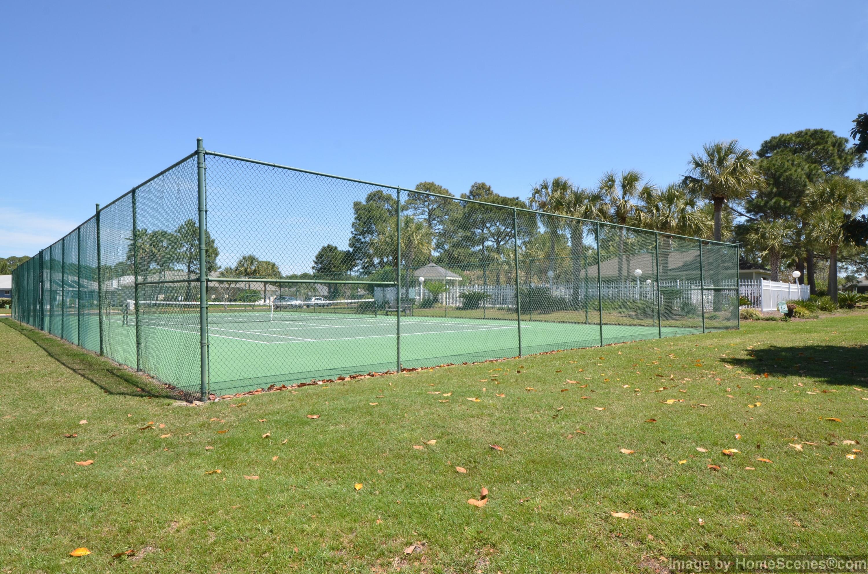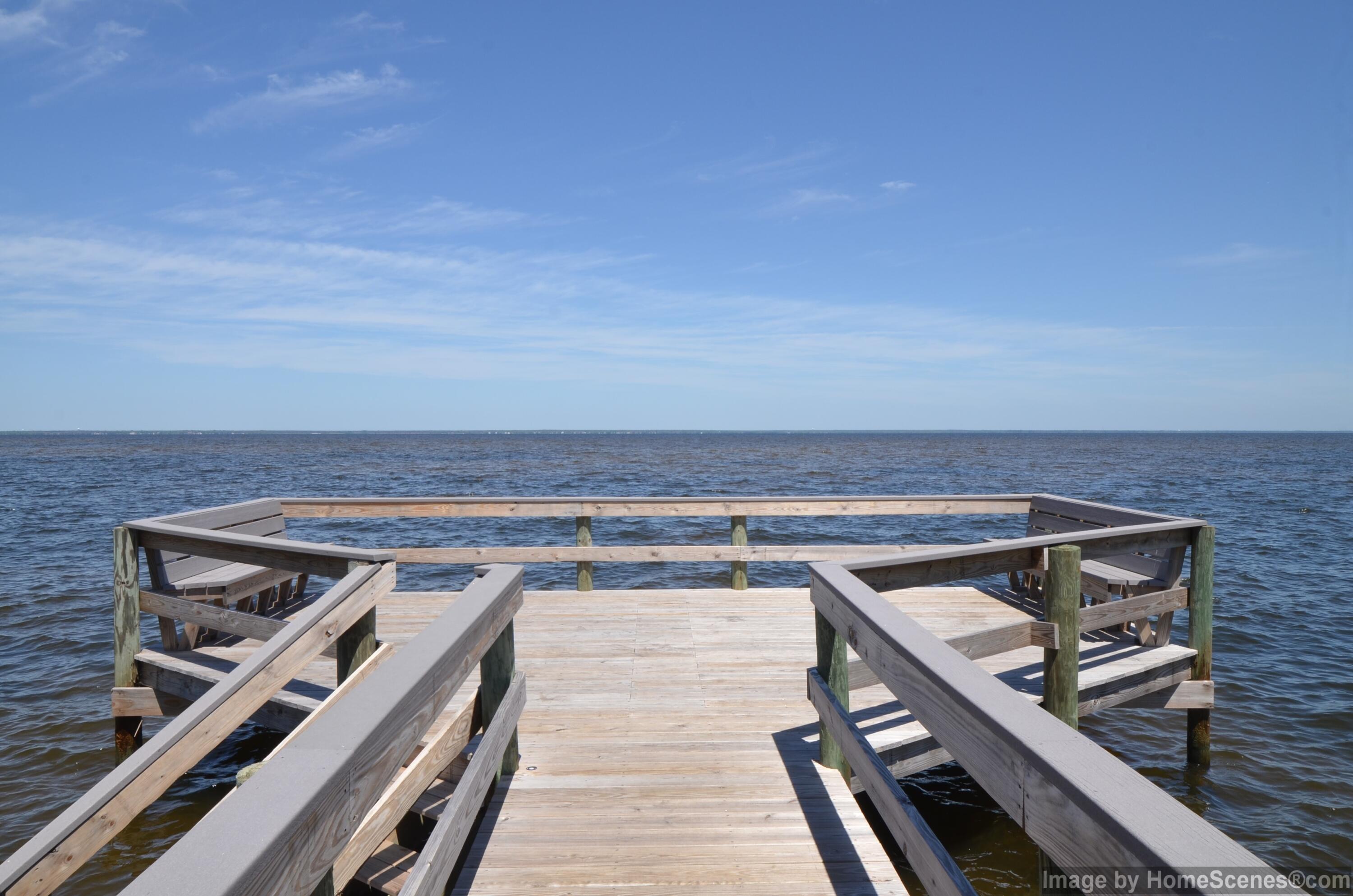 Enjoy the Sunsets over the Bay from this spacious Brick home, on an oversized corner lot and across from the Community Dock! Fireplace, vaulted ceiling, split bedroom plan, natural gas stove and outdoor grill hookup on the screen back porch. Newly painted interior, new kitchen countertop, roof replaced in '24 and carpet in '25. Community Amenities include tennis courts, pool and picnic area - just a short distance from this lovely home. Silver Sands Outlet Mall, restaurants, grocery and Beach access are only a few blocks away. Easy access to Hwy 98 with a traffic signal at the subdivision entrance. This home is priced to sell and is ready for your own customization and renovations. Waterfront conveniences without the Waterfront Price! Come view this home before its gone!
