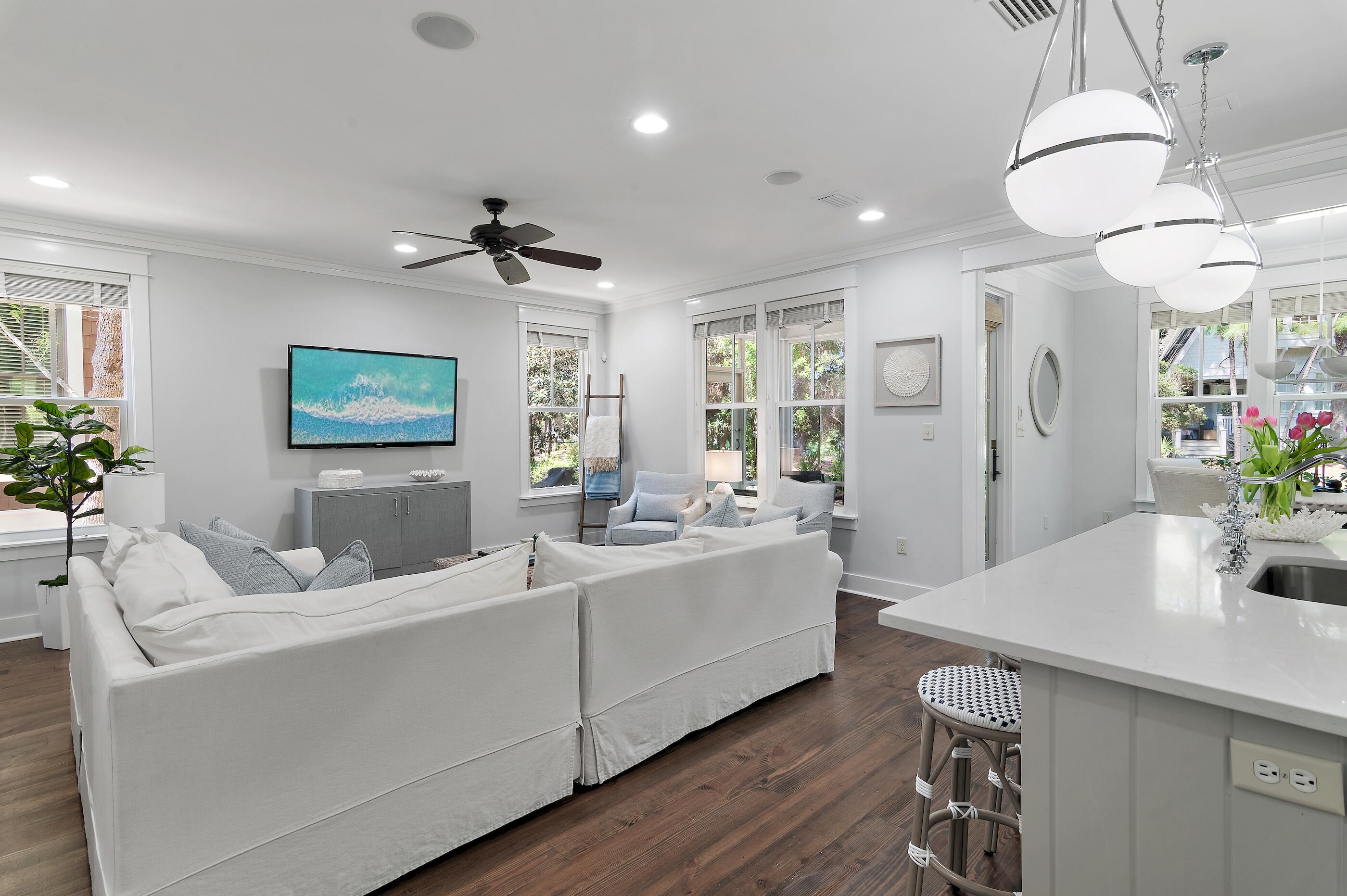 Residing behind the private gated enclave of Watersound West Beach in the sought-after Cottage District, this like-new and fully furnished 3BD + BUNKS 'Huff Home' seamlessly blends luxury accommodations with an inviting coastal flair and was recently remodeled by the design team at Lusso Interiors. Upon initial approach, the stately paver driveway bordered by lush vegetation leads way to the impressive foyer featuring soaring 10' ceilings, shiplap planked walls, and stunning hardwood flooring. The heart of the home immediately welcomes you with a sophisticated living space meticulously designed for both relaxation and entertainment with beautiful views of the community park. The well-appointed kitchen offers custom soft-close cabinetry coupled with quartz countertops, an oversized kitchen island with integrated seating, all new tableware, and a luxury appliance suite with a gas range. The screened-in porch offers a true continuation of living space overlooking the surrounding topography creating the perfect setting for reading a book or enjoying an evening night cap.