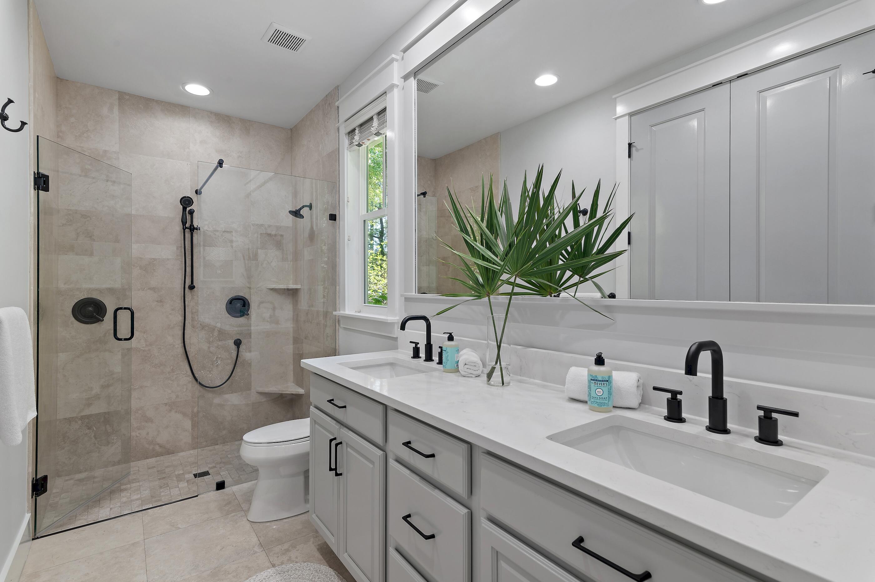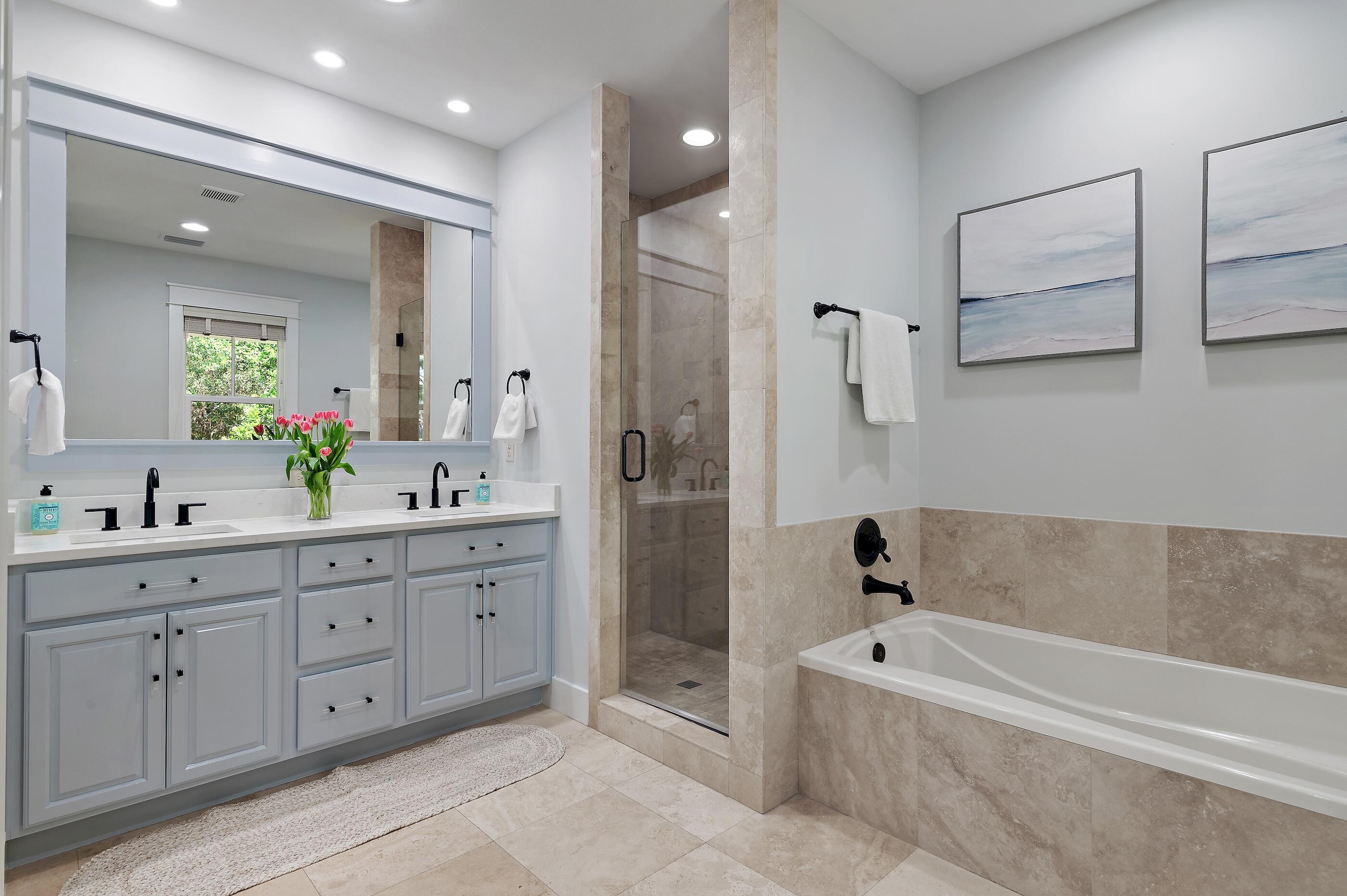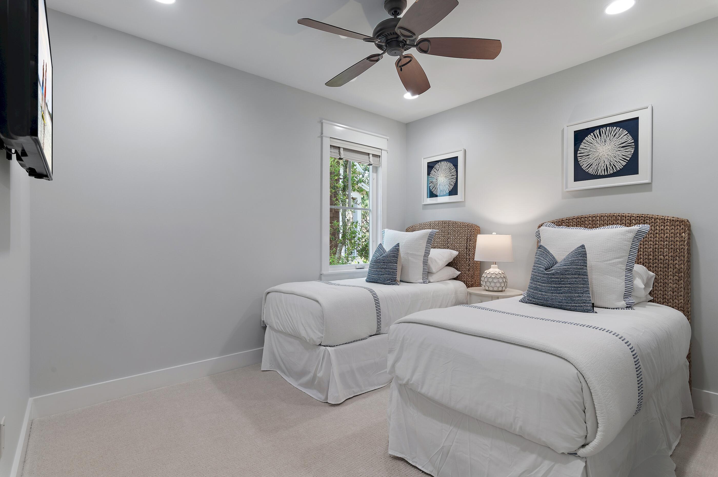 The primary suite is graced with natural light and equipped with a walk-in closet and private covered terrace spanning the entire width of the home. The luxurious ensuite affords a spa-like experience with a garden-style soaking tub, double vanity, an enclosed water closet, and walk-in wet room. coastal-themed, second-floor XL bunk room features built-in bunks, a cozy seating area with a TV, and is the perfect hangout spot for the kids. An additional guest suite currently configured with 2 twin beds and direct access to a full bath complete the top level.