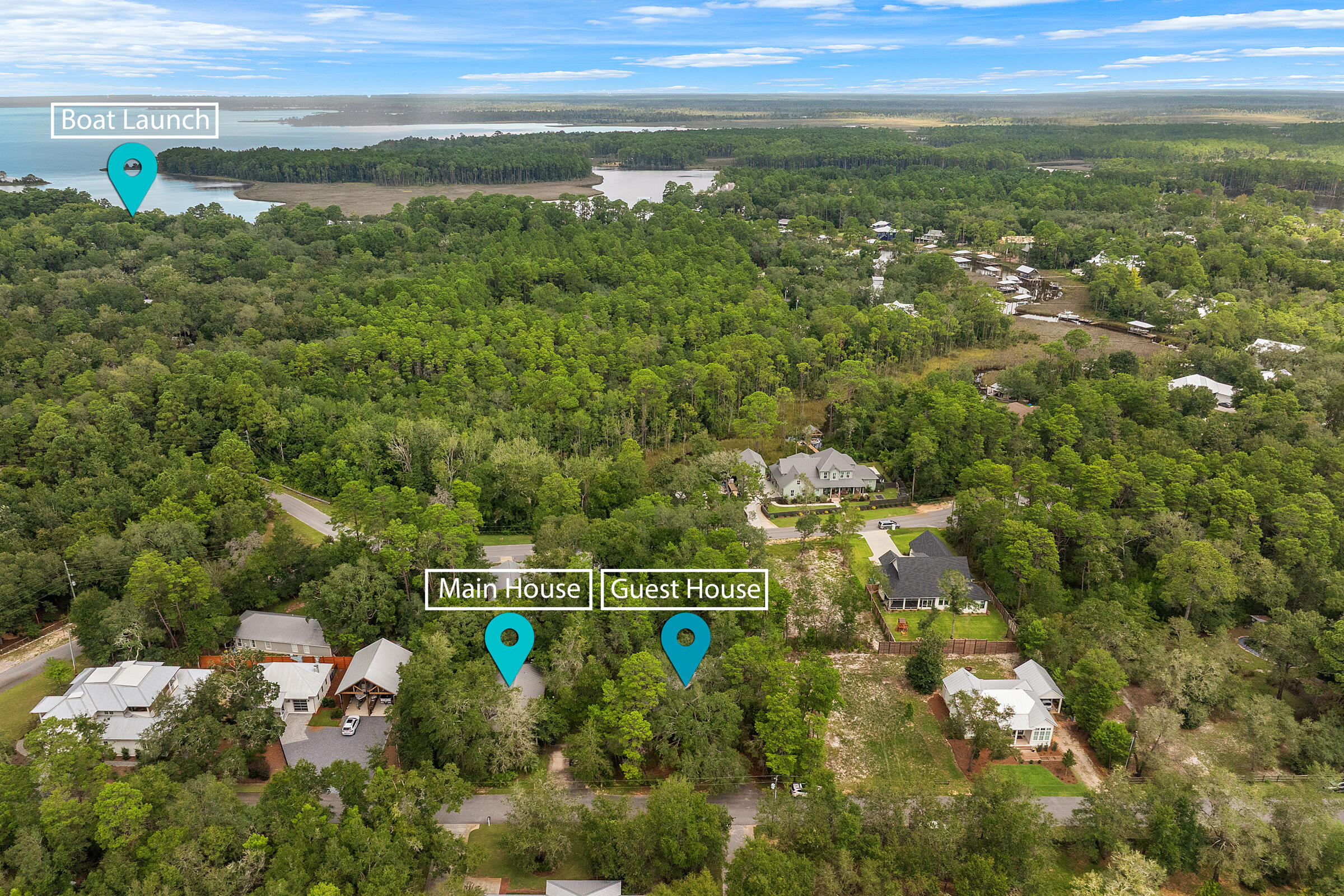 Nestled in the charming and historic community of Point Washington--one of Walton County's oldest settlements--this property offers the perfect blend of space, versatility, and location. Just minutes north of Seaside and WaterColor and less than a mile from the public boat launch on Choctawhatchee Bay at the end of Hwy 395, it's an ideal spot for boaters, beach lovers, and those seeking a peaceful, pedestrian-friendly neighborhood. Towering native trees, a circular driveway, and ample room for a pool or manicured lawn create a serene, park-like setting. The single-story main home features a smart, no-wasted-space floor plan with open kitchen, living, and dining areas, generous bedrooms, abundant storage, and a large laundry room. The spacious garage with extended ceiling and garage door heights of 11', and a depth of 31', is perfect for housing multiple vehicles, water crafts, and recreational vehicles. Additional locked storage in the rear of the garage allows future owners the space for a safe room or to be used as an owner's closet while renters occupy the space.