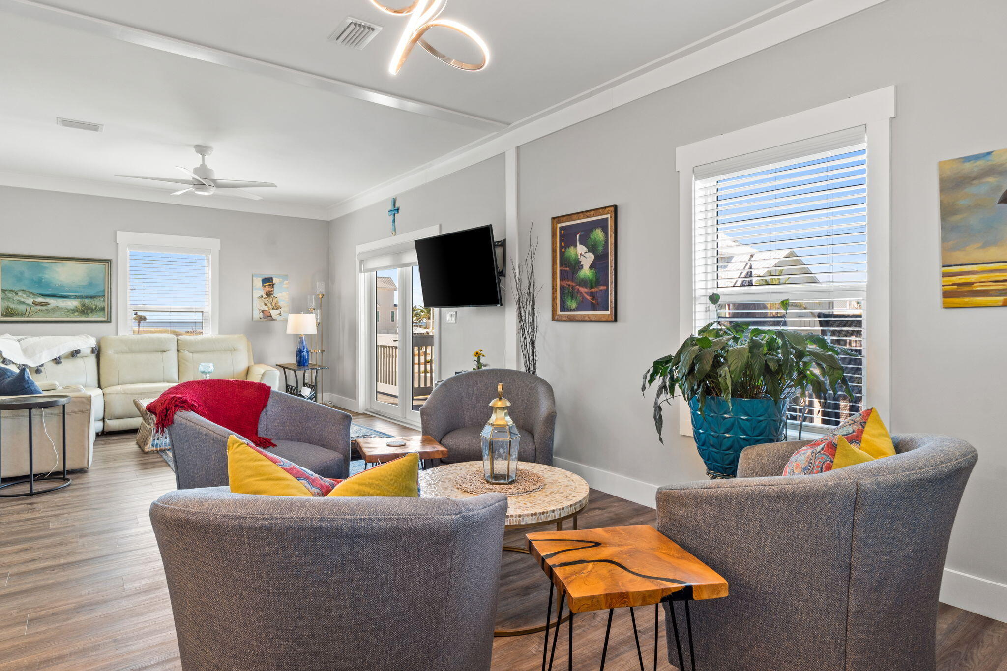 Welcome to your perfect coastal escape! This beautiful 4-bedroom, 3-bathroom home, built in 2021, offers 2,240 square feet of heated and cooled living space and combines modern comfort with breathtaking water views. Located in a quiet neighborhood just off Highway 98 and just a short walk to the beach, this home is ideal for full-time living, a vacation retreat, or an investment property. Step inside to a spacious open living area designed for relaxing and entertaining, and unwind in the large master suite featuring its own private deck -- the perfect place to enjoy morning coffee or evening sunsets. Multiple decks throughout the home offer stunning canal and Gulf views, creating the ideal backdrop for outdoor living. Additional highlights include a two-car garage with ample storage and Welcome to your perfect coastal escape! This beautiful 4-bedroom, 3-bathroom home, built in 2021, offers 2,240 square feet of heated and cooled living space and combines modern comfort with breathtaking water views. Located in a quiet neighborhood just off Highway 98 and just a short walk to the beach, this home is ideal for full-time living, a vacation retreat, or an investment property. Step inside to a spacious open living area designed for relaxing and entertaining, and unwind in the large master suite featuring its own private deck the perfect place to enjoy morning coffee or evening sunsets. Multiple decks throughout the home offer stunning canal and Gulf views, creating the ideal backdrop for outdoor living. Additional highlights include a two-car garage with ample storage and convenient beach access just minutes away. With its combination of modern design, prime location, and beautiful coastal scenery, this home truly captures the best of Gulf Coast living. This is a rare oversized beachside lot and there should be plenty of room for both a pool and boat parking if desired. Miramar Drive is a quiet side street with no HOA that is very desirable. This home is located in the X flood zone with very reasonable optional flood insurance. Home would make a great vacation rental being this close to the beach and is being sold mostly furnished and equipped. Check out the virtual tour!