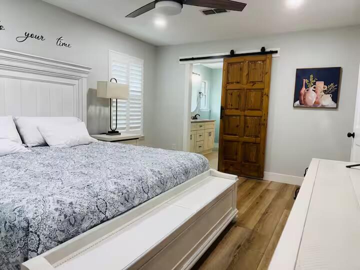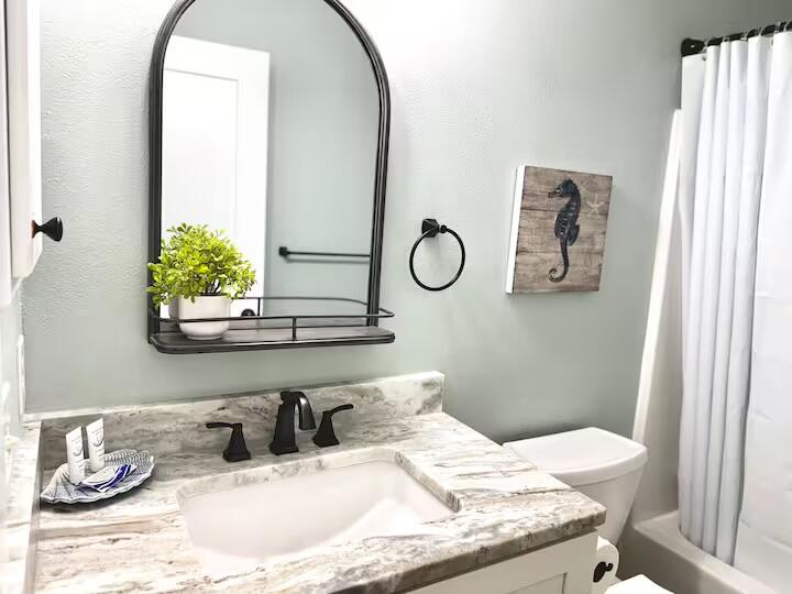 This pristine move ready home, located in the desirable Holley by the Sea community, is just minutes from the stunning Emerald Coast beaches. Beautifully renovated, it's perfect as a primary residence or a high-performing Airbnb investment. Kitchen is a cook's dream, featuring all-new appliances--including an induction stove with convection oven. The luxurious primary suite offers a spa-like en suite with double vanity and relaxing garden tub. A spacious office provides an ideal at-home workspace, while the covered, screened-in patio is the perfect place to unwind with a coffee or good book. Step outside to your private backyard oasis with a water feature, fire pit, and large workshop. All furnishings are negotiable.This turn key treasure is ready for you to call home second home or Airbnb