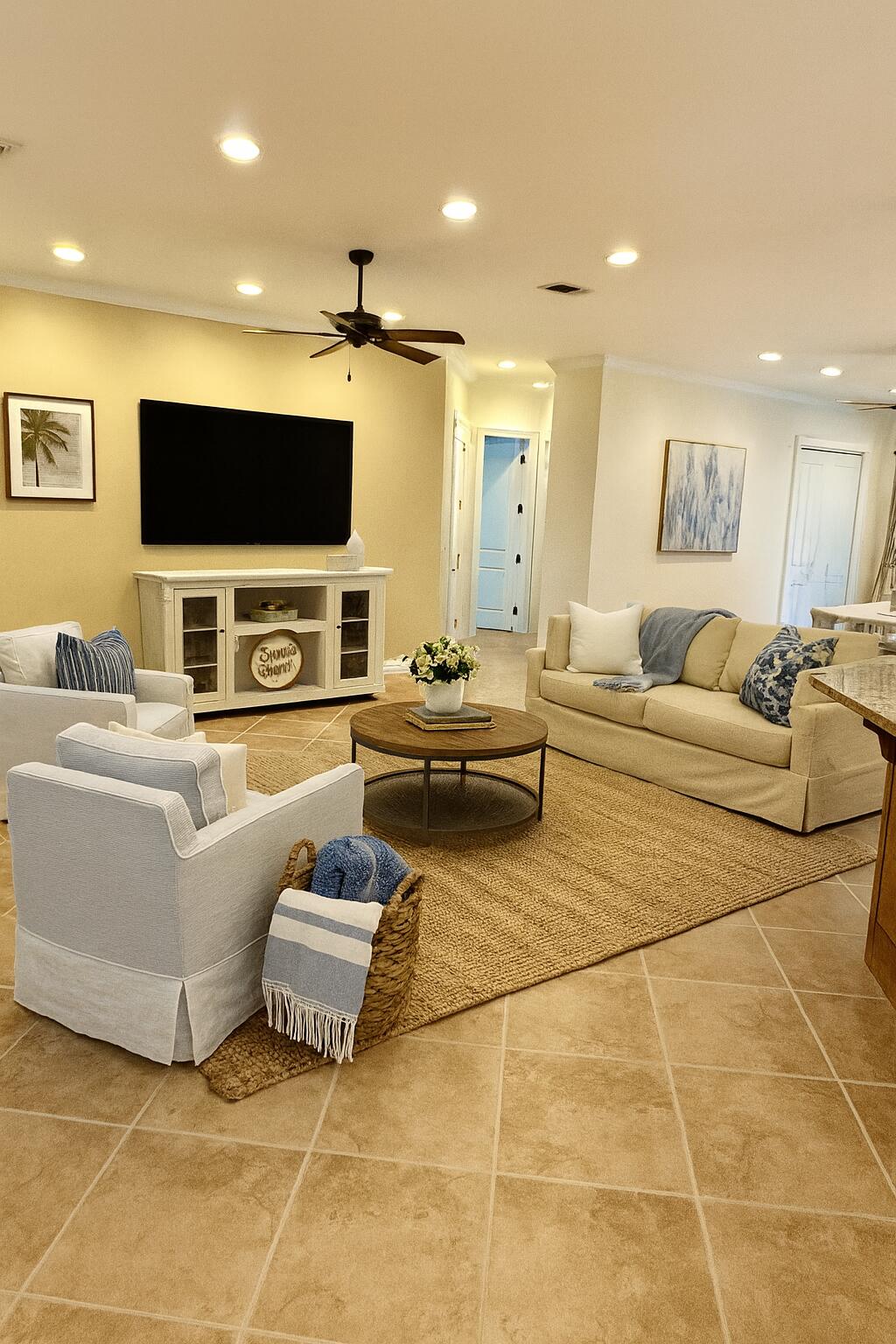 Beautiful family home ready to move into in the quiet neighborhood of Mack Bayou Estates off of Goldsby Road in Santa Rosa Beach. Close to Sacred Heart, Grand Boulevard, Butler Elementary and 30A, this home is conveniently located for all of your South Walton activities. The home was built in 2006 and is just under 2,100 sq. feet. When you walk in the front door, the entryway connects to the open concept living room, dining room and kitchen, which is perfect for family meals and entertaining. The master bedroom is a generous size with an extra large walk-in closet. The master bathroom features a double vanity, soaking tub and oversized walk-in shower. The two additional guest bedrooms feature private bathrooms as well. The laundry room is located off of the kitchen near the entrance to
