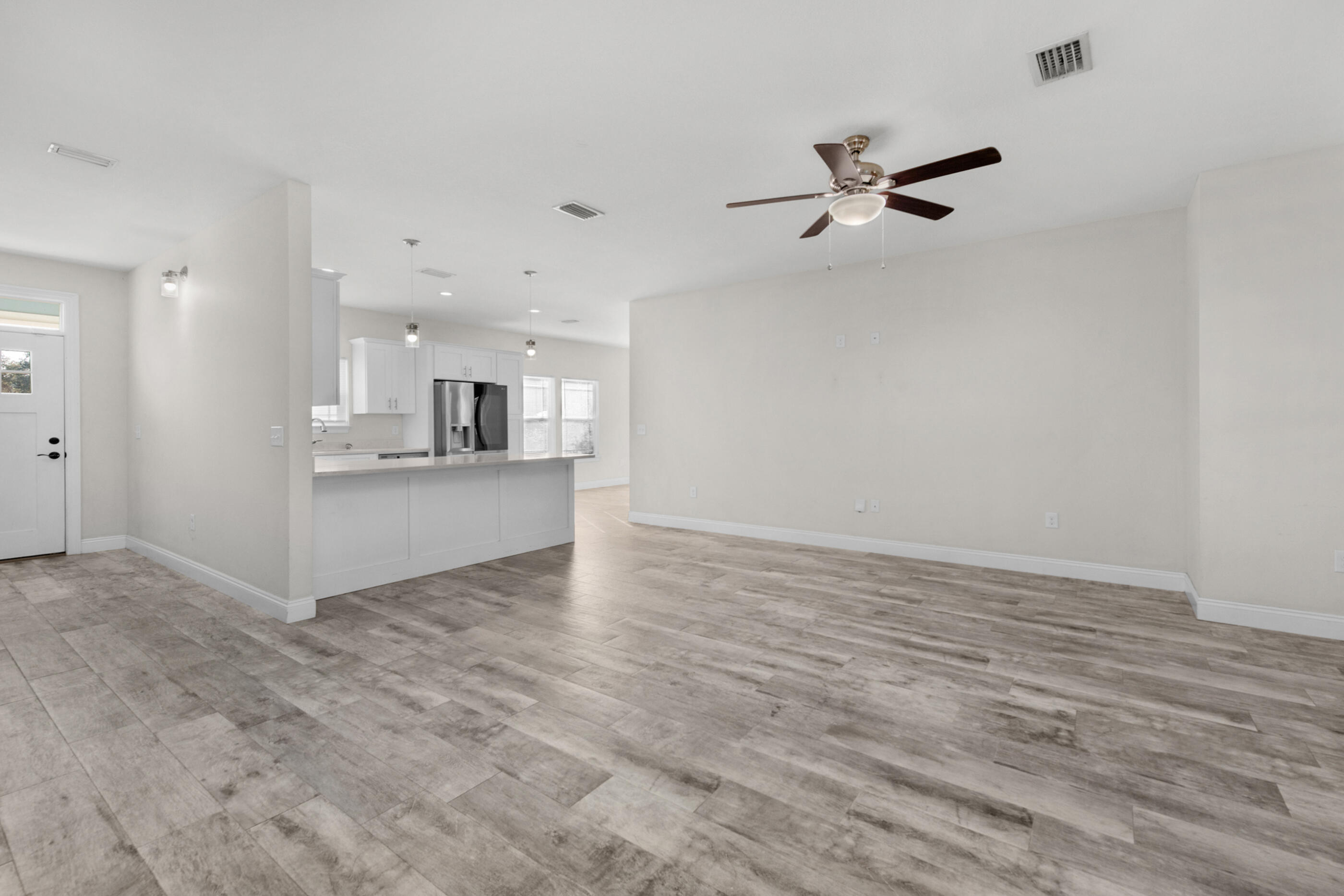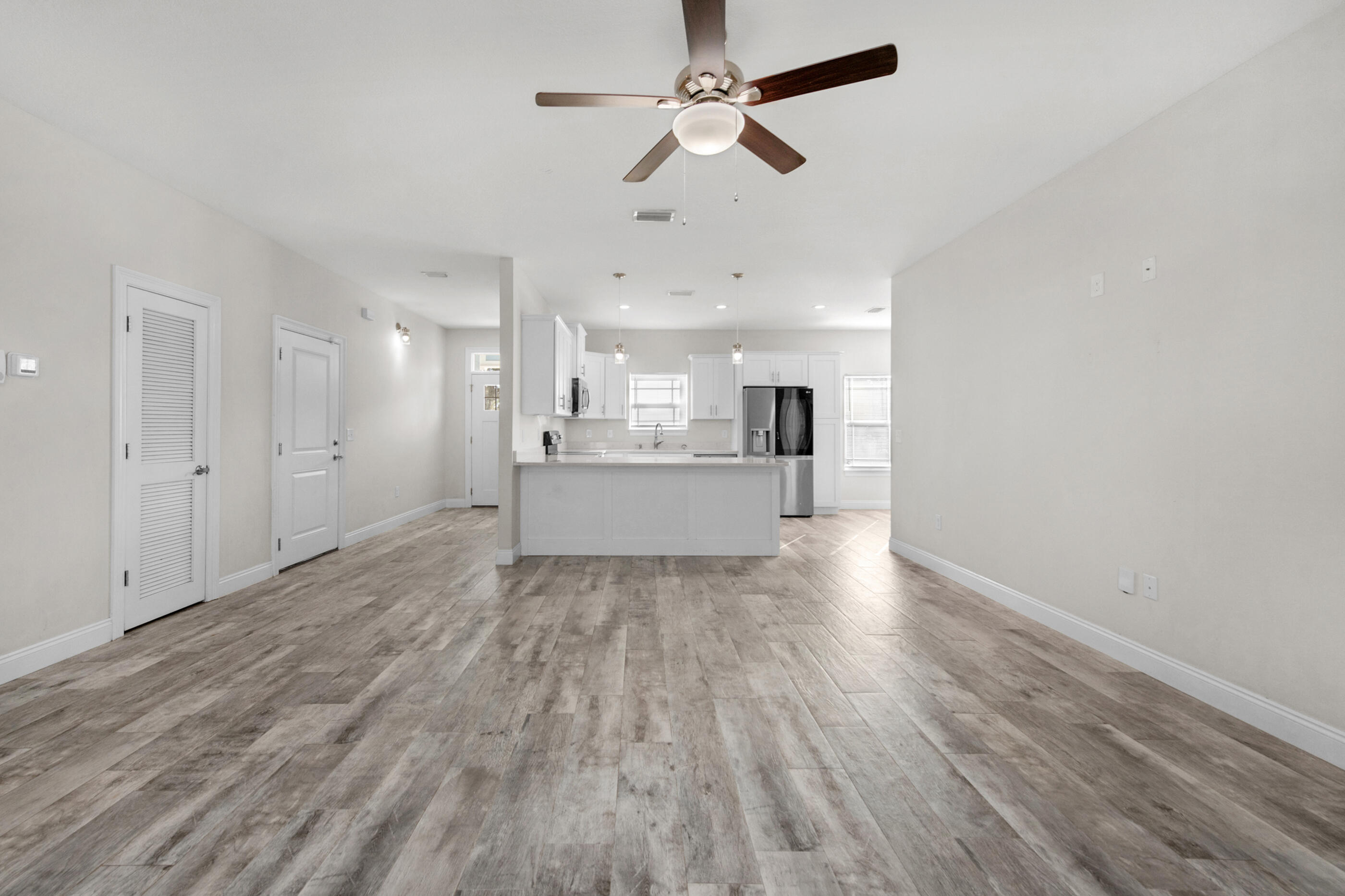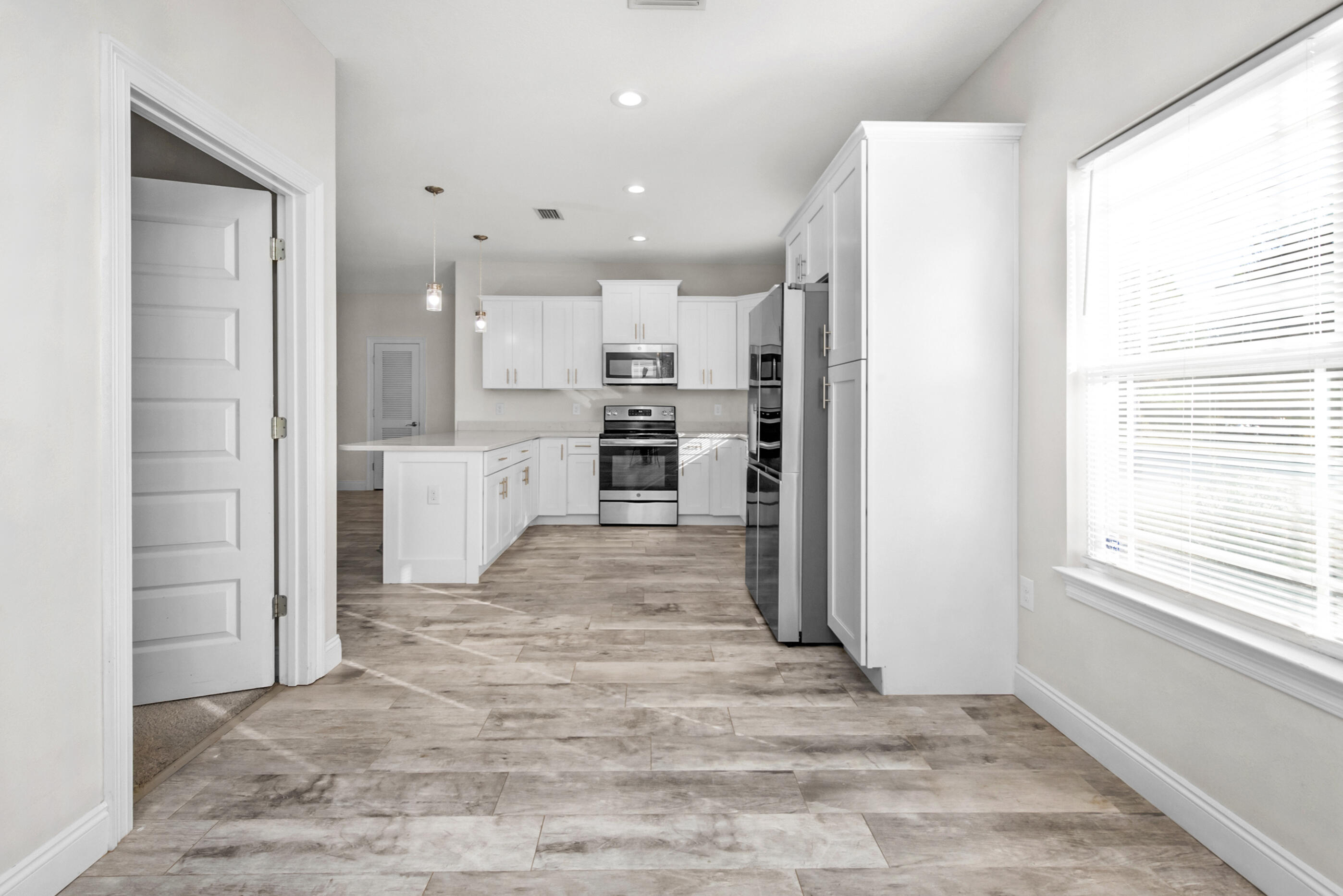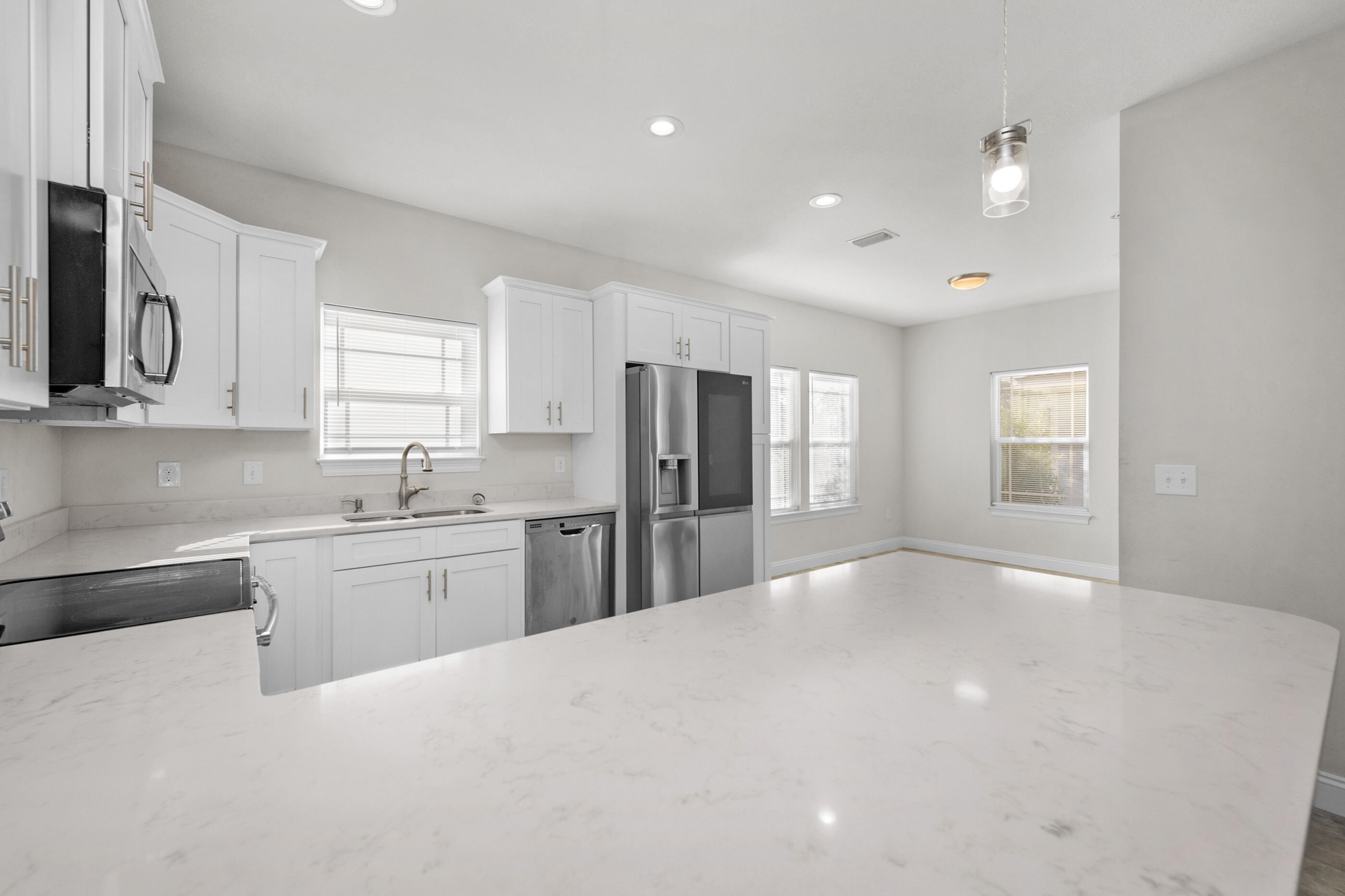 Priced to sell! Beautiful like-new home in East Navarre! Built in 2018 and barely lived in, this spacious home boasts an open-concept living area with quartz countertops, a counter-height bar, and premium plank tile flooring. The primary suite offers a custom closet with built-ins and a private bath. Enjoy the screened back porch, perfect for relaxing bug-free! Plus, solar panels paid off with a full-price offer and a $3,000 carpet allowance make this home an incredible value!
