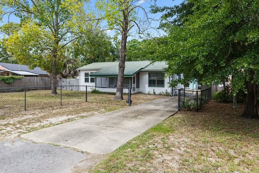 This inviting cottage blends character, comfort, and untapped potential--perfectly positioned near local military bases, Niceville, and Fort Walton Beach.Step inside to discover a welcoming screened porch, a spacious kitchen with custom cabinetry and Corian countertops, and bathrooms featuring dual vanities in the primary suite with private backyard access. The cozy den flows seamlessly into a dedicated dining area and the kitchen, creating a warm, functional layout.Outside, enjoy a true backyard retreat with a sparkling pool, two storage sheds, a deck, and a pergola--perfect for entertaining or relaxing.With its blend of character and opportunity for finishing touches, this charming home is a must-see chance to create your perfect Emerald Coast getaway.