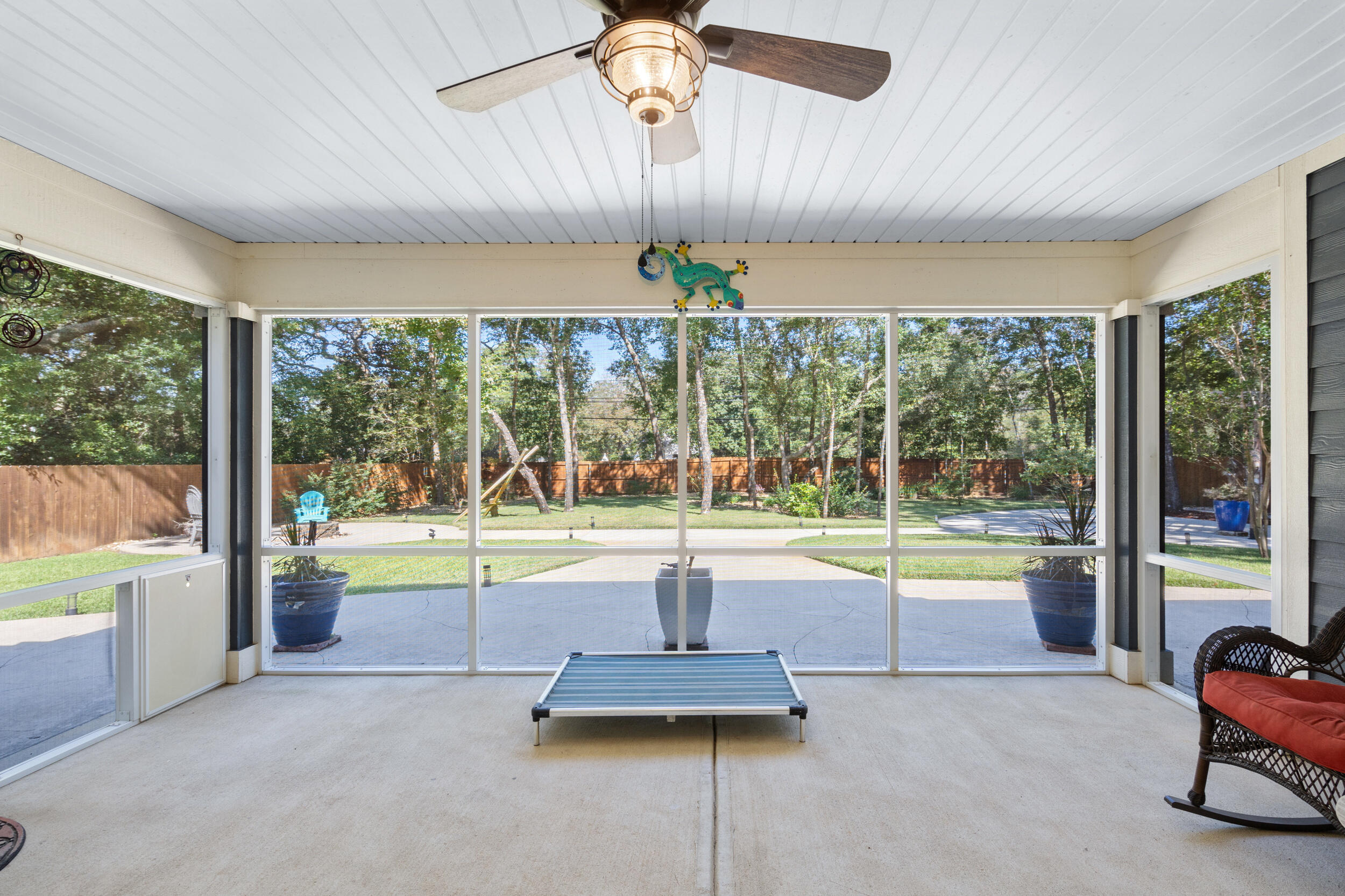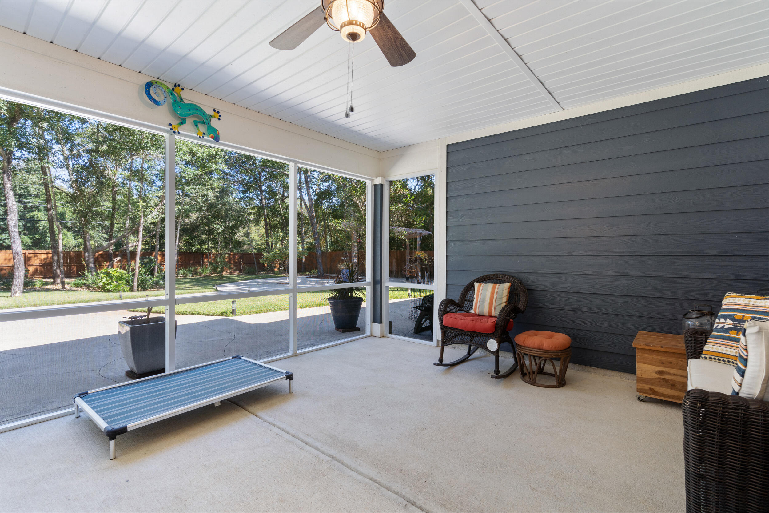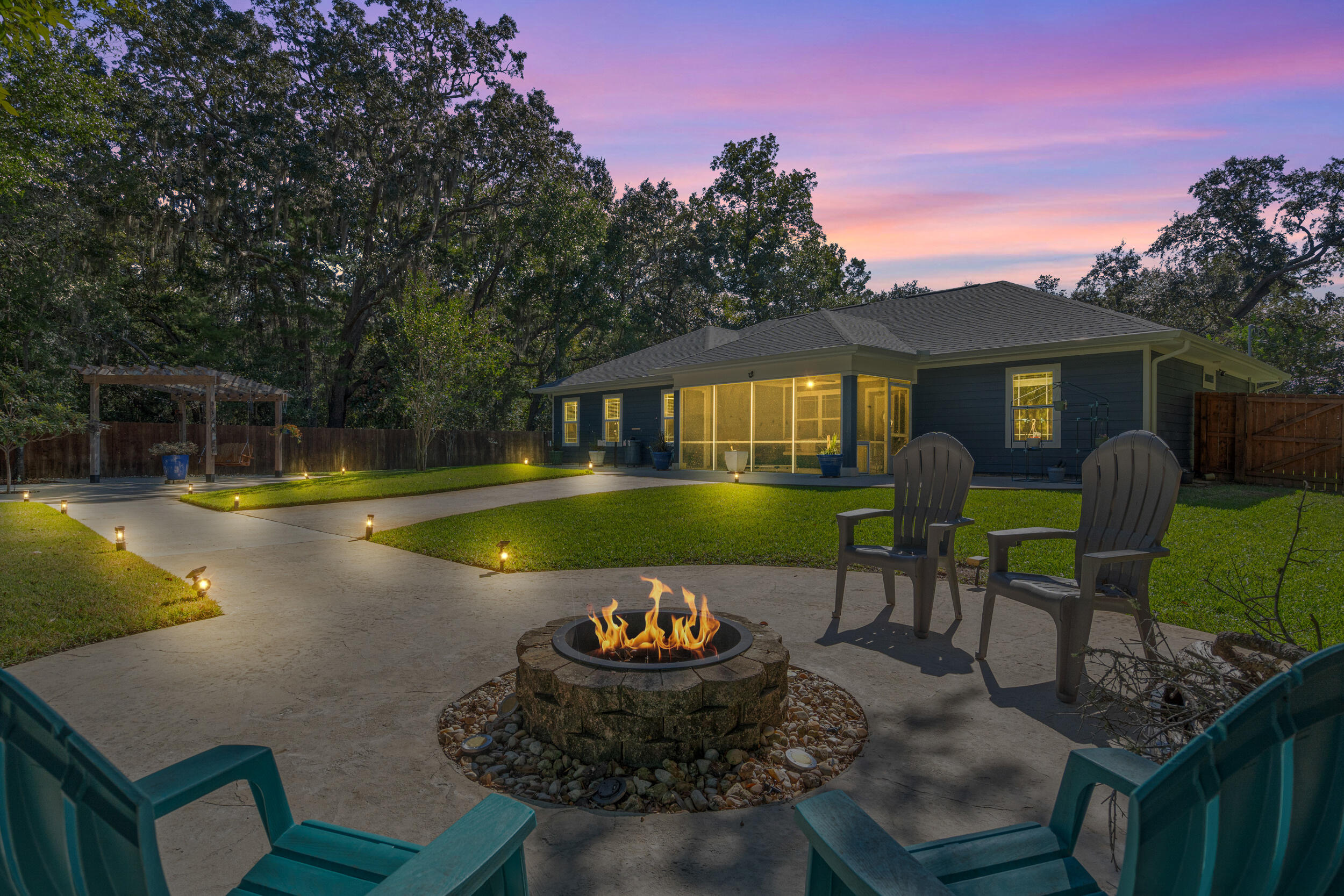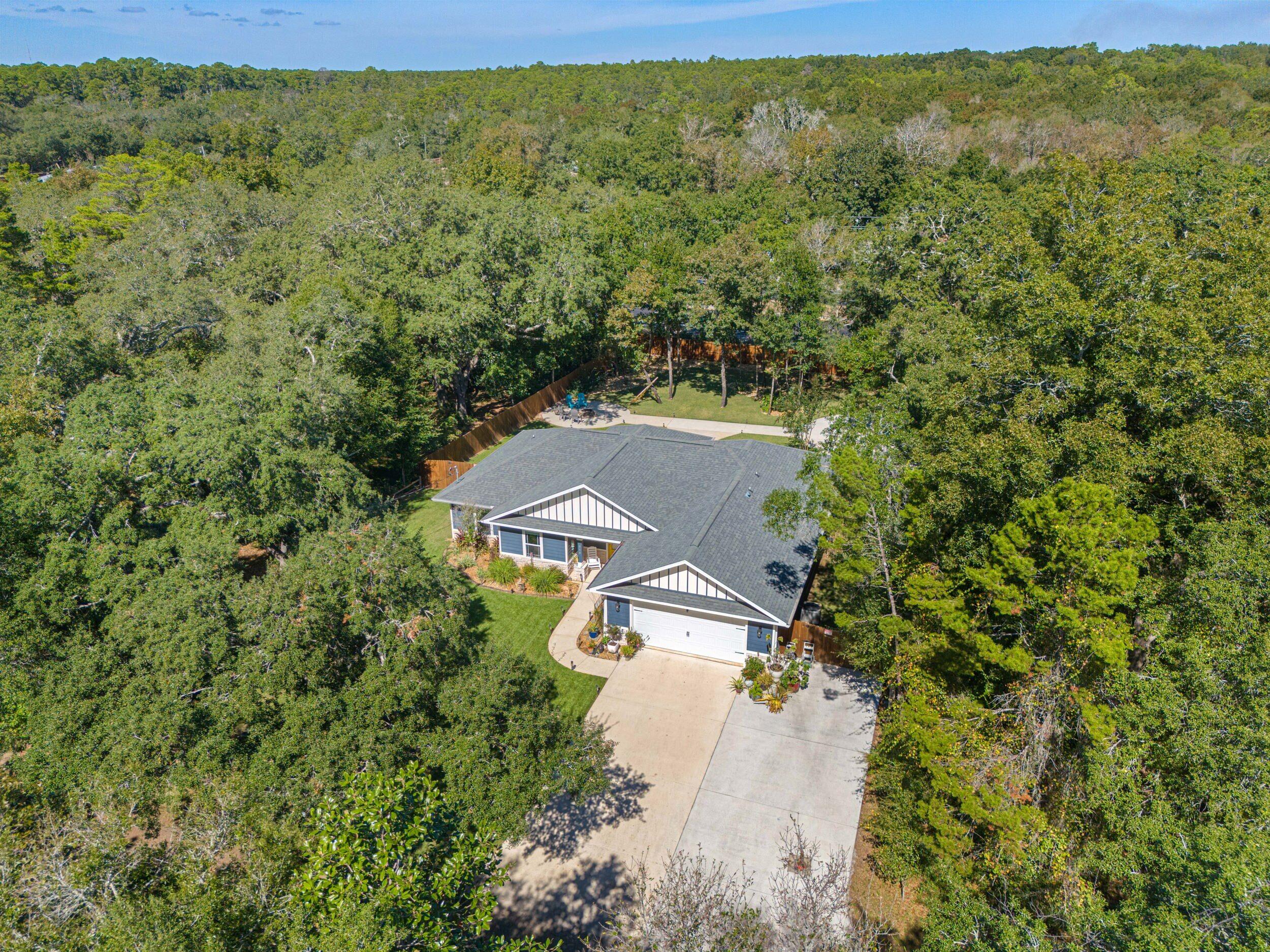 Nestled in a desirable Holley neighborhood this Navarre beauty immediately captures attention with its exceptional curb appeal, lush lawn, and thoughtfully designed landscaping. The extended driveway provides ample space for guests, extra vehicles, or even an RV, perfect for those who appreciate flexibility and convenience. Step into your own backyard oasis, where every detail has been designed for relaxation and enjoyment. Meandering concrete pathways lead to a cozy fire pit area, ideal for evenings under the stars, while another path guides you to a pergola with a porch swing, a peaceful spot to unwind. The fence has been freshly stained, enhancing the landscaping and giving the space a finished, well-maintained look. You'll also love the extended, screened-in patio, perfect for entertaining or enjoying the outdoors year-round. Inside, the home boasts a bright, open floor plan with vinyl plank and tile flooring throughoutno carpet anywhere! The spacious living room features tray ceilings, adding depth and style, while the split floor plan offers comfort and privacy for all. The kitchen shines with a large sink, bar area with wine fridge, and a walk-in pantry offering abundant storage. Just across the hall, the generous laundry room adds even more functionality. The primary suite is a true retreatextended during construction to provide additional space and featuring tray ceilings, a large tiled walk-in shower, and two walk-in closets. The guest bedrooms and bath are comfortably sized, making everyone feel right at home. With both an eat-in kitchen and a dedicated dining area, the layout offers flexibility for daily living or entertaining. From the inside out, this home has been meticulously maintained and beautifully upgraded, offering the perfect blend of comfort, charm, and thoughtful design.