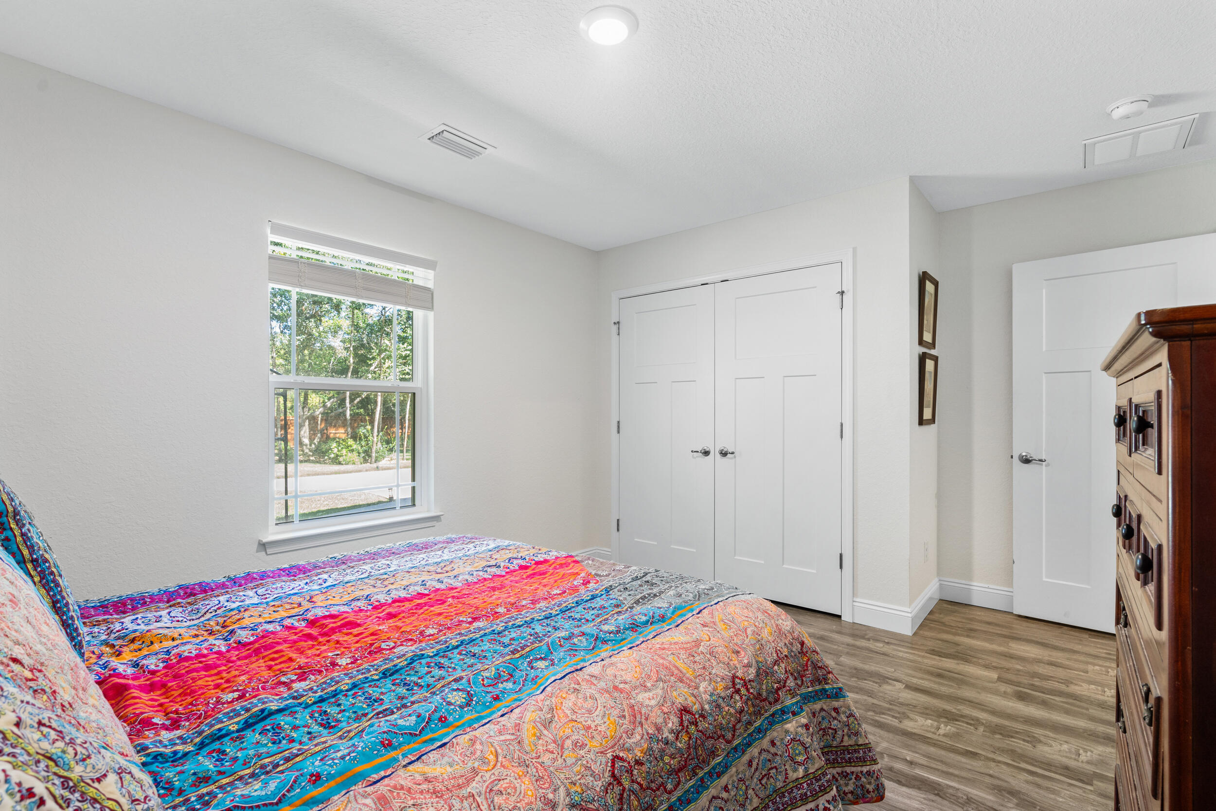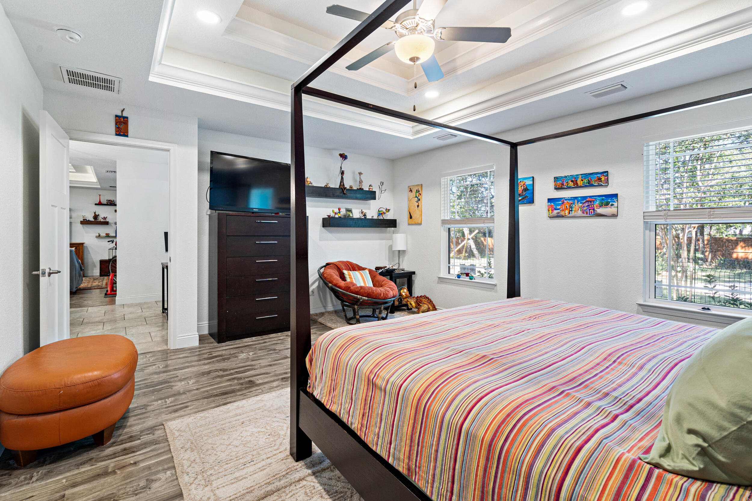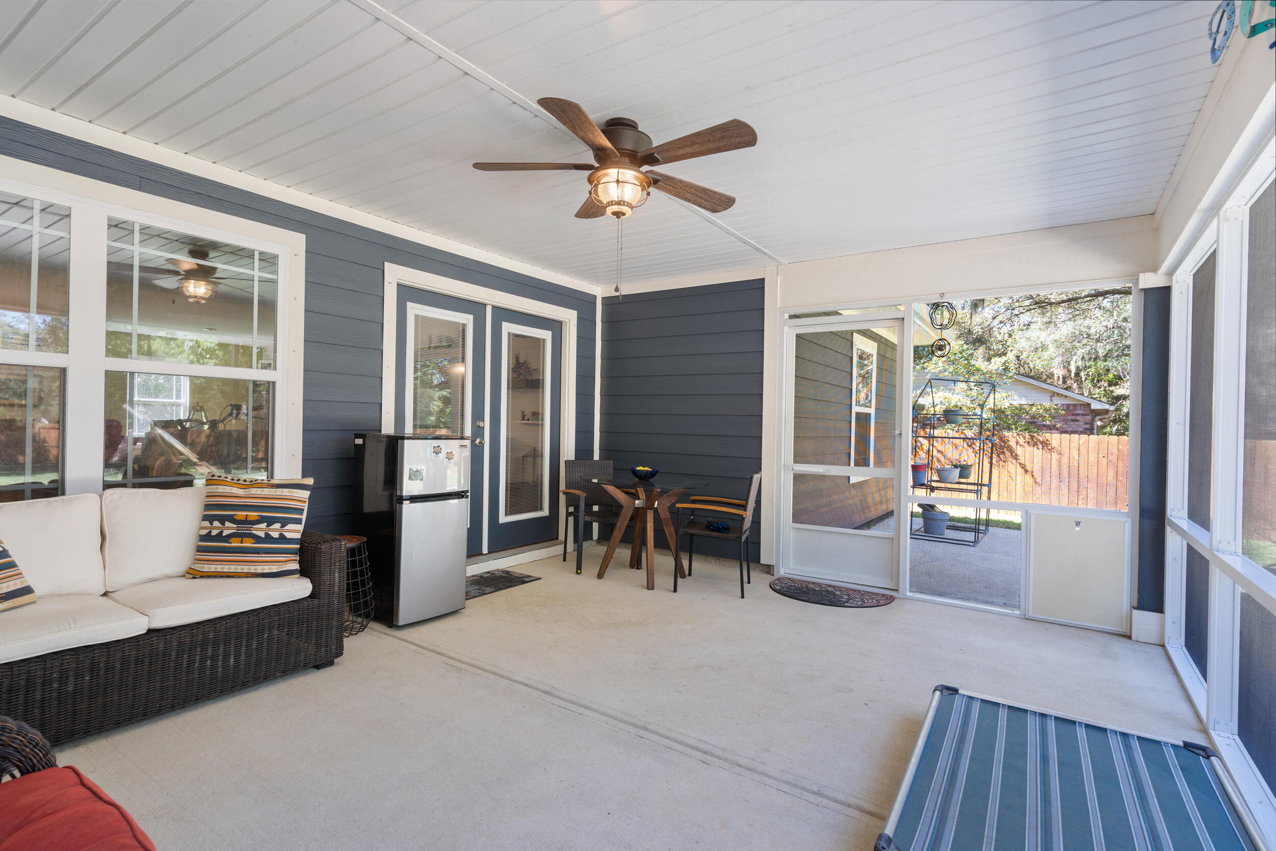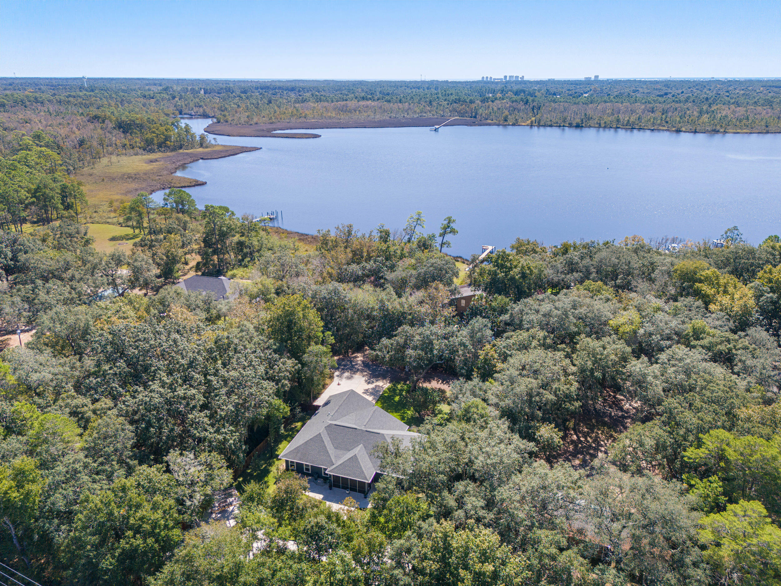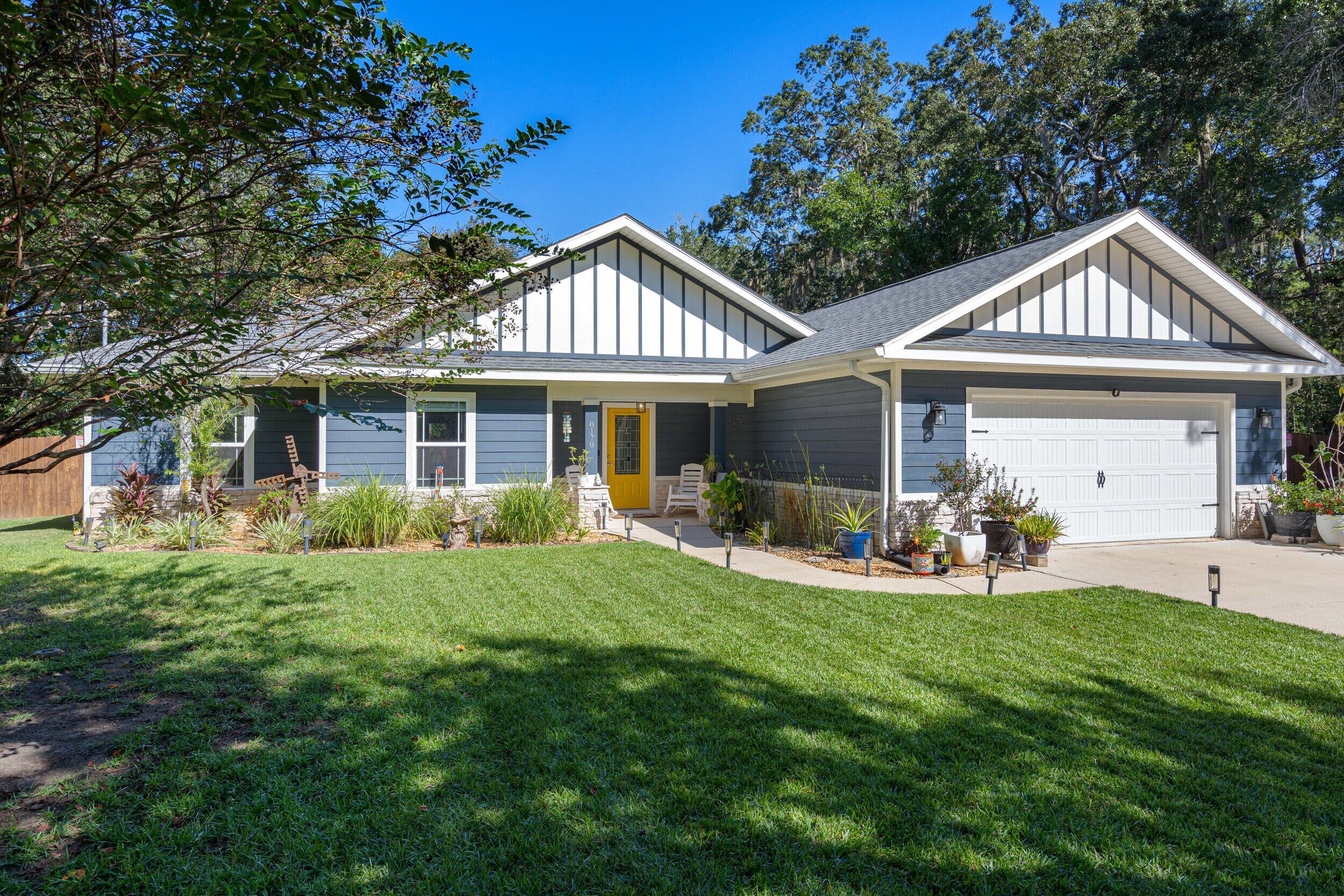 Nestled in a desirable Holley neighborhood this Navarre beauty immediately captures attention with its exceptional curb appeal, lush lawn, and thoughtfully designed landscaping. The extended driveway provides ample space for guests, extra vehicles, or even an RV, perfect for those who appreciate flexibility and convenience. Step into your own backyard oasis, where every detail has been designed for relaxation and enjoyment. Meandering concrete pathways lead to a cozy fire pit area, ideal for evenings under the stars, while another path guides you to a pergola with a porch swing, a peaceful spot to unwind. The fence has been freshly stained, enhancing the landscaping and giving the space a finished, well-maintained look. You'll also love the extended, screened-in patio, perfect for entertaining or enjoying the outdoors year-round. Inside, the home boasts a bright, open floor plan with vinyl plank and tile flooring throughoutno carpet anywhere! The spacious living room features tray ceilings, adding depth and style, while the split floor plan offers comfort and privacy for all. The kitchen shines with a large sink, bar area with wine fridge, and a walk-in pantry offering abundant storage. Just across the hall, the generous laundry room adds even more functionality. The primary suite is a true retreatextended during construction to provide additional space and featuring tray ceilings, a large tiled walk-in shower, and two walk-in closets. The guest bedrooms and bath are comfortably sized, making everyone feel right at home. With both an eat-in kitchen and a dedicated dining area, the layout offers flexibility for daily living or entertaining. From the inside out, this home has been meticulously maintained and beautifully upgraded, offering the perfect blend of comfort, charm, and thoughtful design.