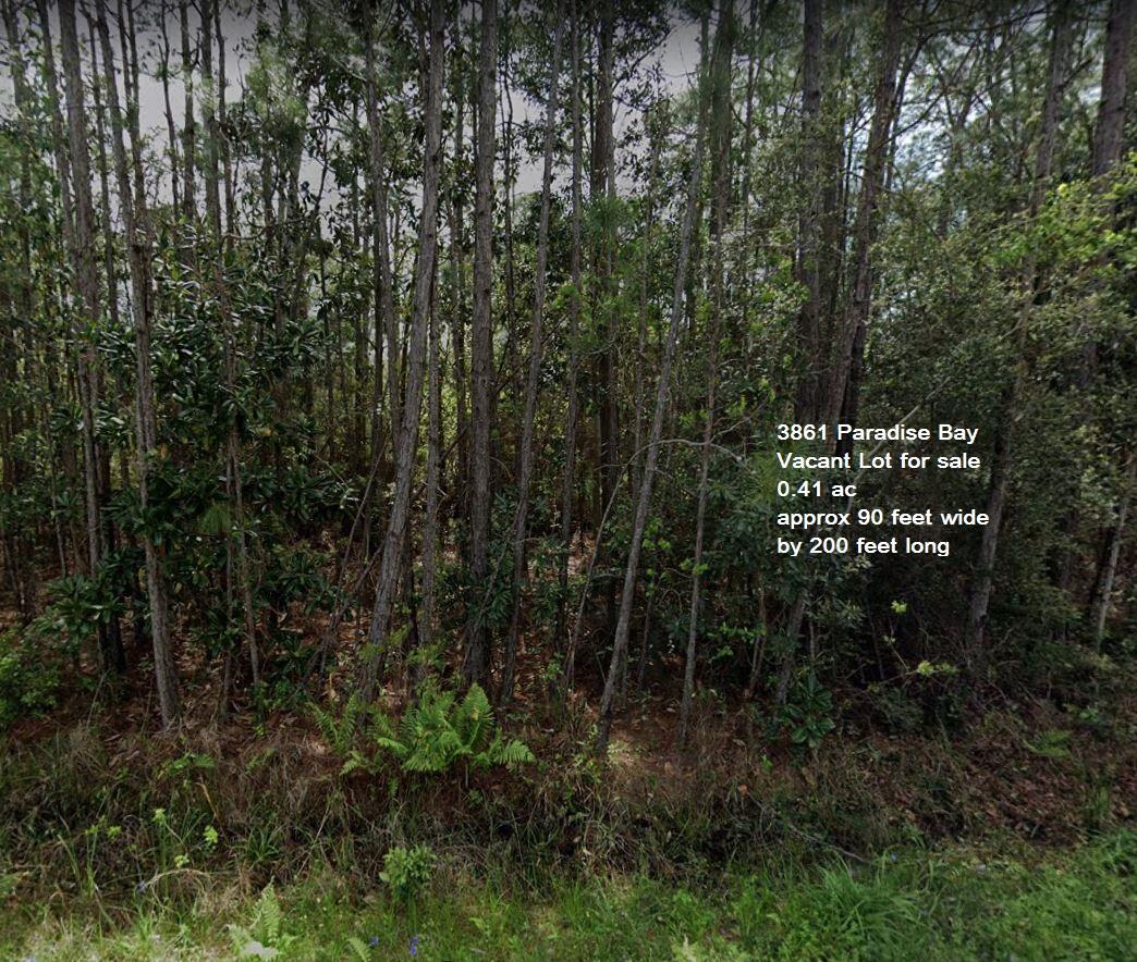 his is a beautiful 0.41 ac vacant lot available in prestigious Paradise Bay community. Locates towards the end of Paradise Bay Drive, across and overlooking vast East Bay waters. The property is designated Single Family Residential with Water View. Approximate lot size is 90 feet on the road and 200 feet deep, to build a family dream home. On both sides of the lot, to the left and to the right sides, there are separate vacant lots may also be considered for purchase, to gain the setbacks and for extra privacy. Some wetland may be present, for the builder to apply for wetland permit before construction.