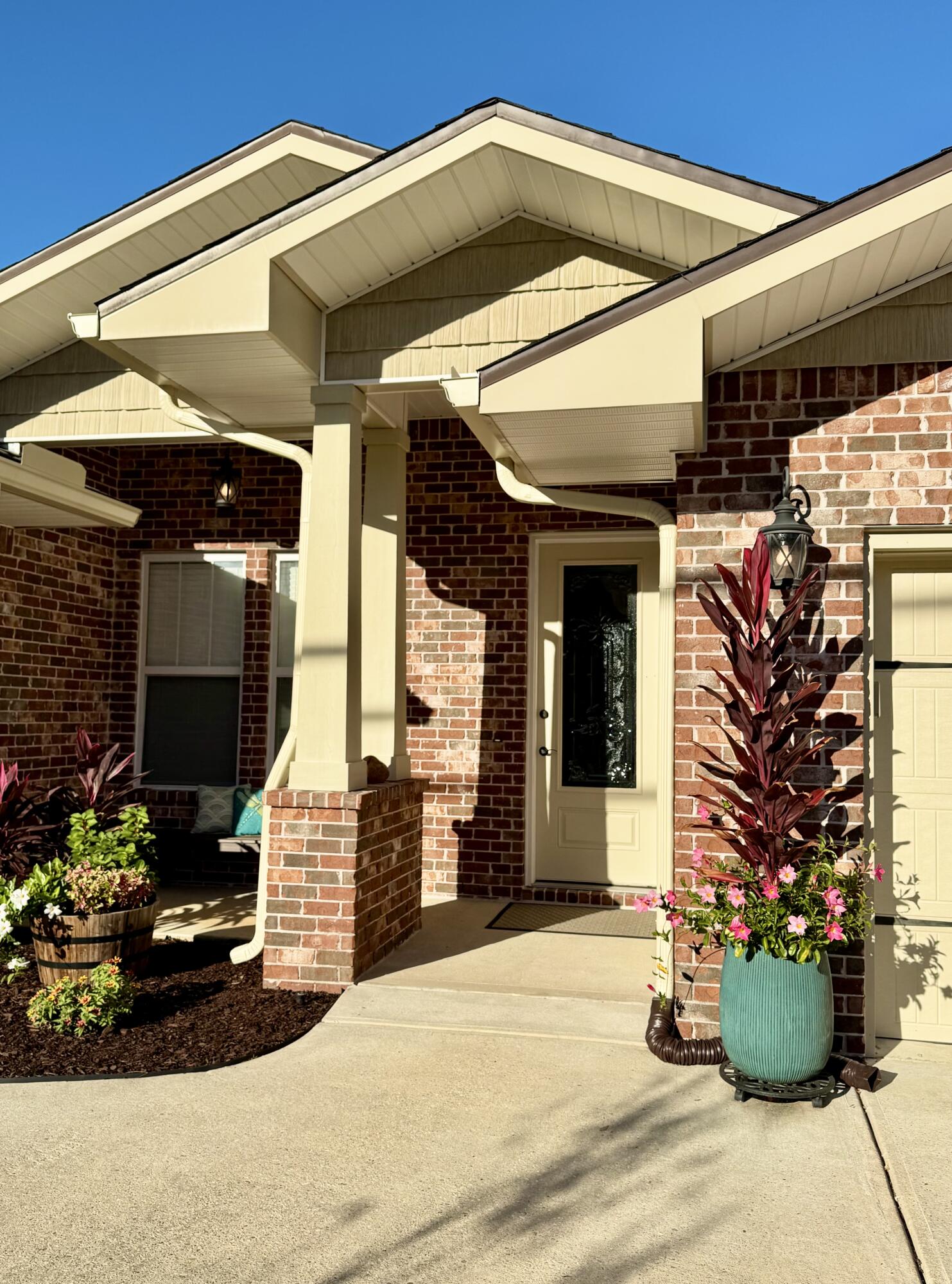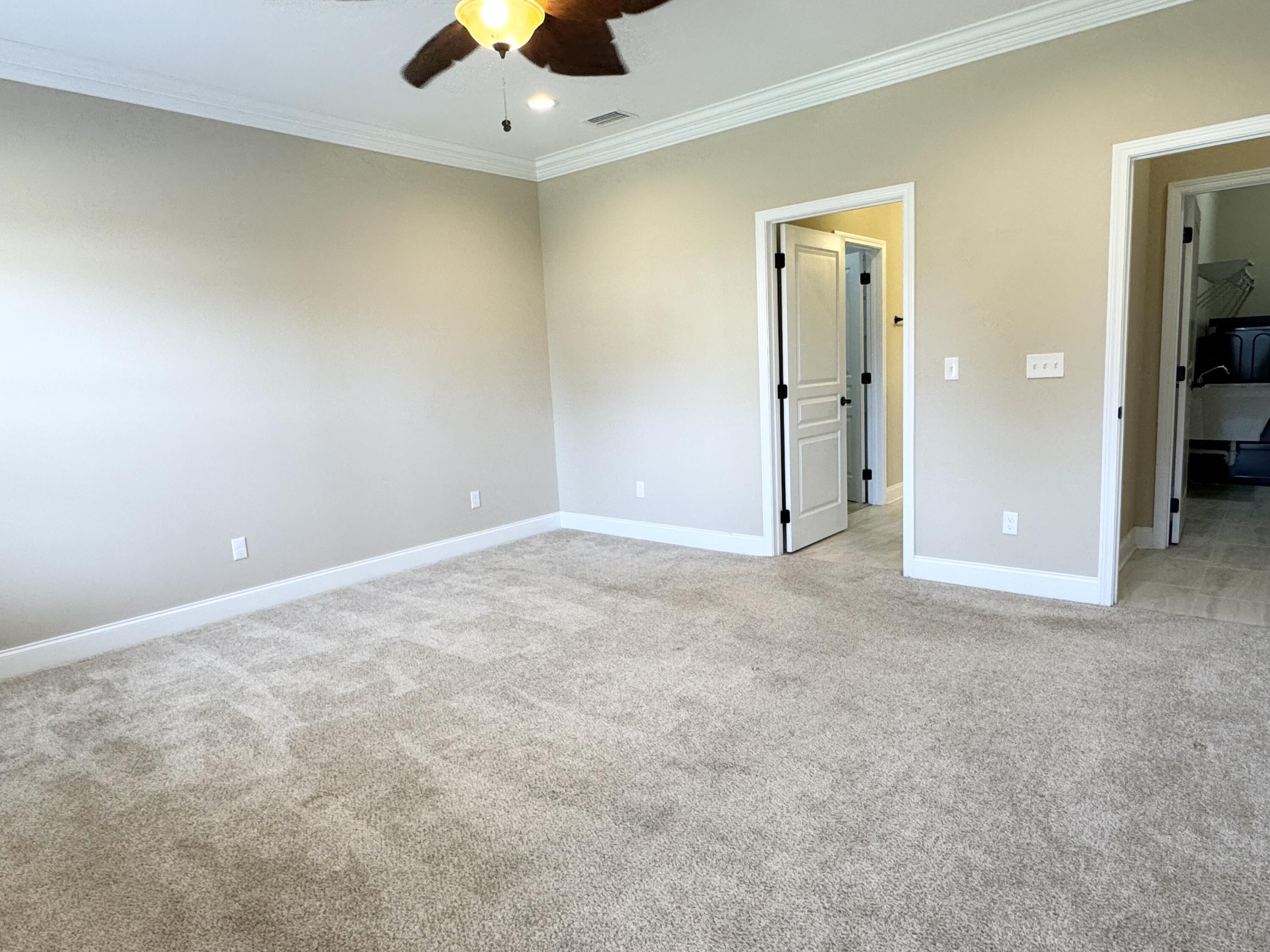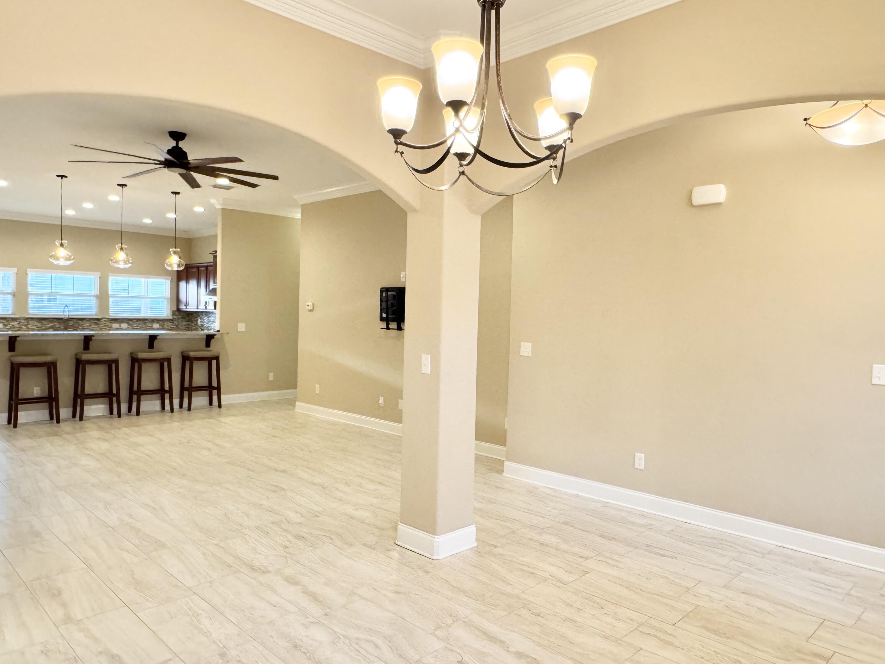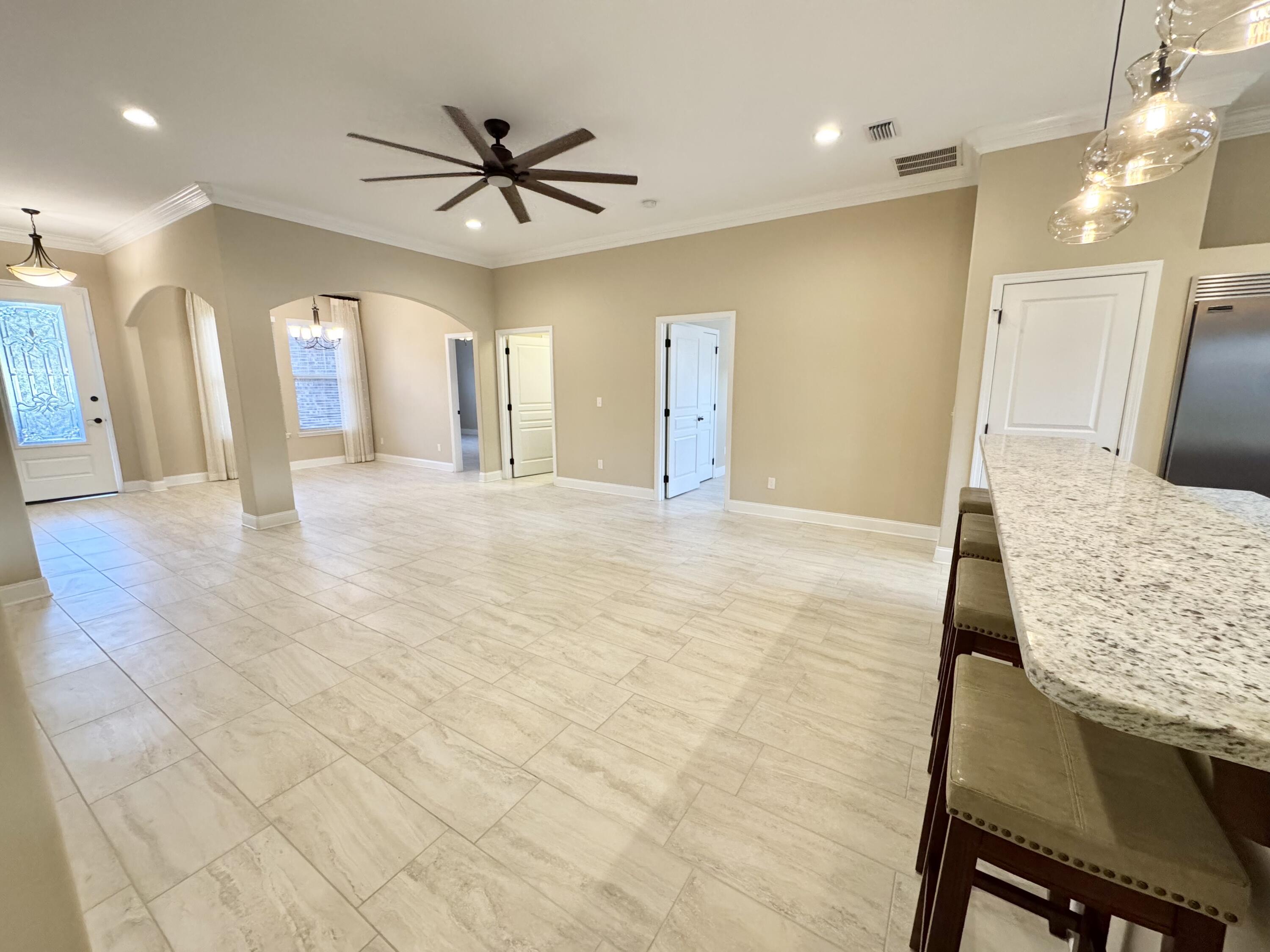 Seller is offering a $10k concession with acceptable offer. This beautifully crafted all brick exterior 4 bed/3 bath home is close to schools, military bases, shopping, restaurants, and the beach. It has wonderful architectural details such as high ceilings, crown molding, arched walls, and rounded corners. Its open concept living areas includes a large kitchen which is the crown jewel of the home with ample cabinets, excessive granite counter space, seating at both the island and the bar, a high-powered vent hood, convection oven, an oversized built-in professional refrigerator and freezer paired with matching stainless steel appliances, and 2 pantries. The split plan offers a private primary suite with double vanity, a roomy walk-in shower, separate toilet room, and 2 closets with one being a spacious walk-in. Two additional bedrooms share a Jack-and-Jill ensuite, and another guest bedroom with walk-in closet has its own access to the guest bathroom. The laundry room comes equipped with a utility sink and a set of large Samsung front-loader washer and dryer with pedestal drawers for storage. Outside, there's a Rainbird sprinkler system for the newly sodded yard placed last spring, a fully fenced backyard with a covered extended patio which is perfect for outdoor living. The 2 car garage has shelving systems in place and the additional u-shaped driveway allows for extra parking, easy exit/entry. Other unique features of this home: Culligan filtered water system in kitchen, integrated surge protector, a Manabloc modular manifold plumbing system, 2 persimmons trees, and a pear tree. Also included are the island and bar stools, the back patio table/benches, the front porch bench, and 2 tv wall mounts. Come check out this competitively priced stunning home ASAP before it's too late!