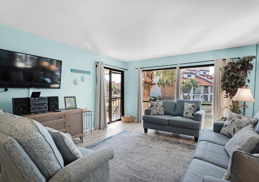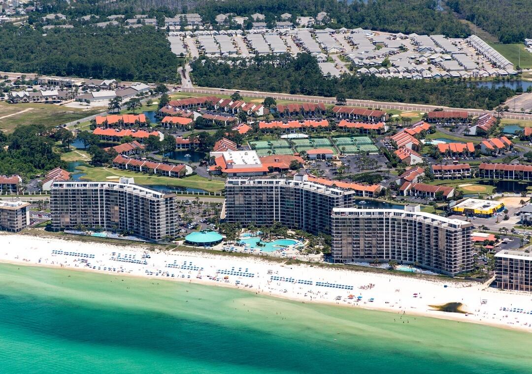 From Front Beach Road, turn north onto Richard Jackson Boulevard and enter the Edgewater Beach Resort Golf Villas entrance. Continue past the guard gate and follow signs to Building 21. Unit 2110 will be on the right overlooking the pond.
