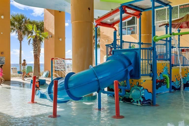 Two exciting water park areas with a lazy river, splash pad, and interactive water toys