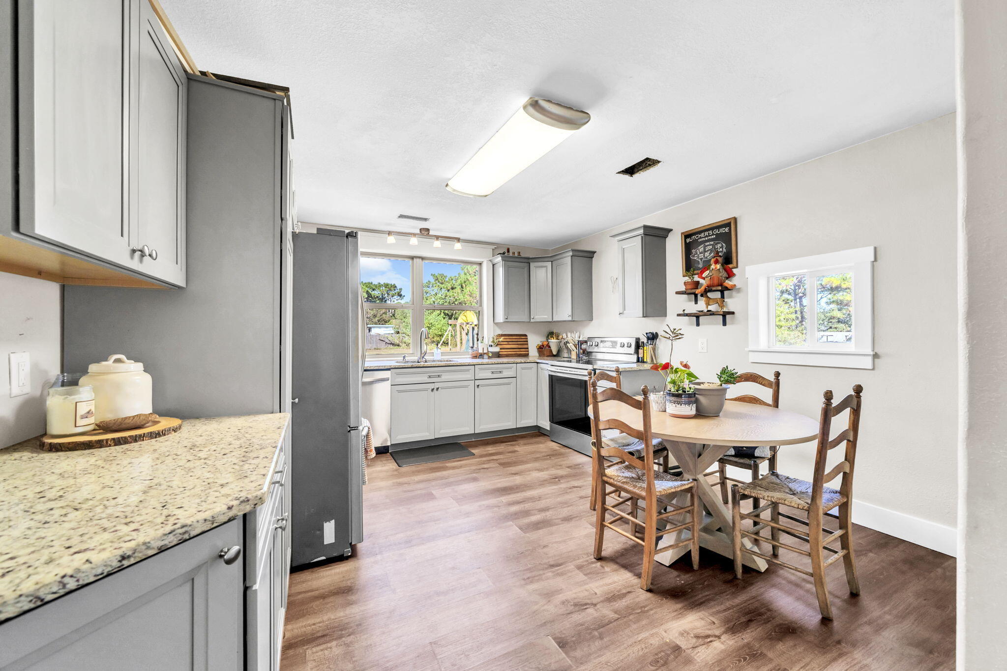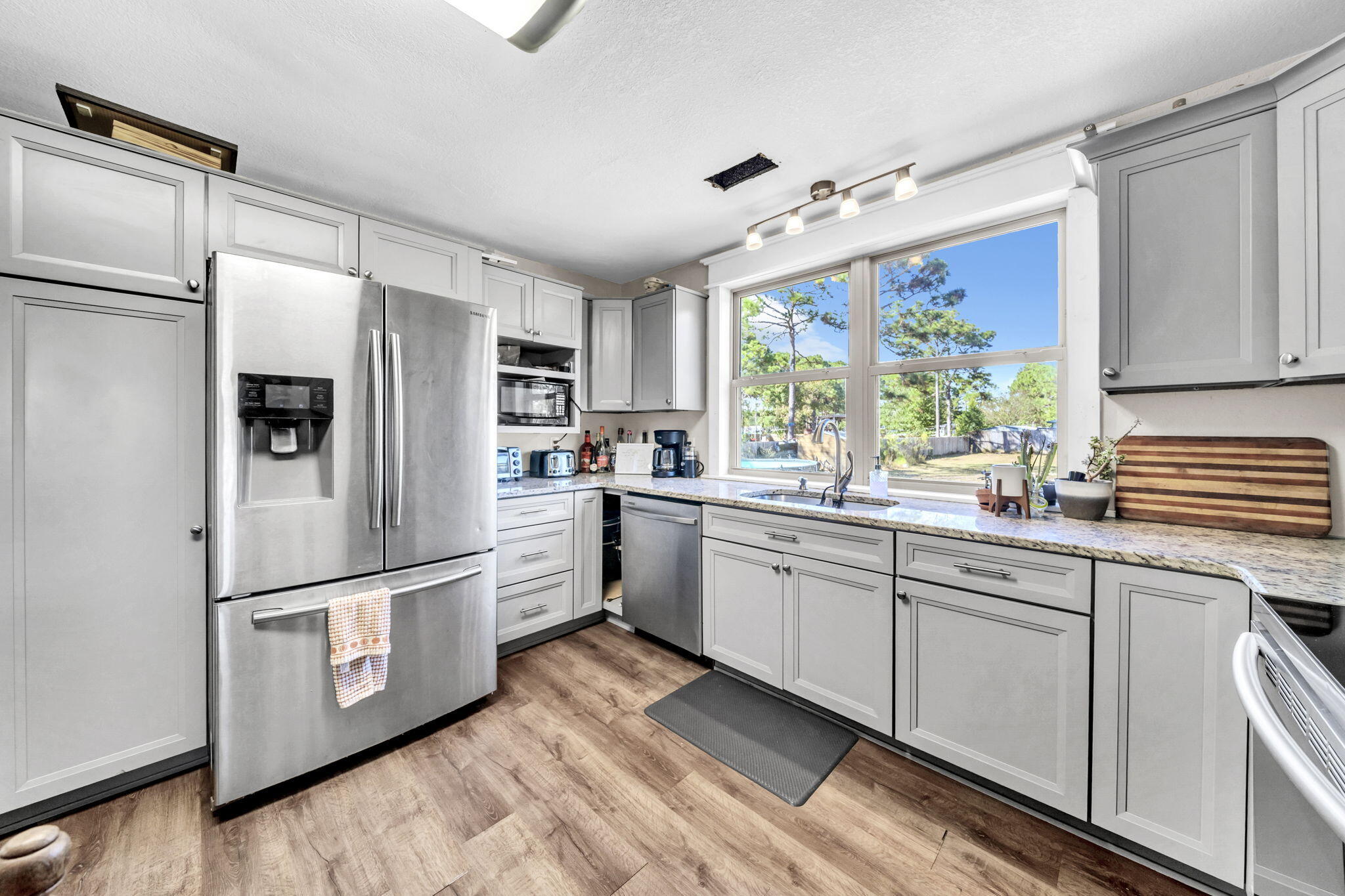 FIXER UPPER W/HUGE OPPORTUNITY IN EAST NAVARRE. This 2 BR Home's open floor plan w/spacious great rm w/newer LVP floors, and large, remodeled eat-in kitchen w/newer cabinets, granite counters & SS appliances is perfect for gatherings & everyday living. GRAB THIS OPPORTUNITY to complete the partially renovated master bathroom w/large walk-in shower & room for his & her sinks into a 2 BATH home w/the master bathroom of your dreams! Ideal for morning coffee/evening w/friends, enjoy outdoor living on the covered porch. The giant yard provides privacy & plenty of room for play, pool, RV or boat. Ensuring peace of mind & affordable insurance, A NEW ROOF to be installed prior to closing. Located in the heart of E. Navarre, schools, shopping & both bases are close by.