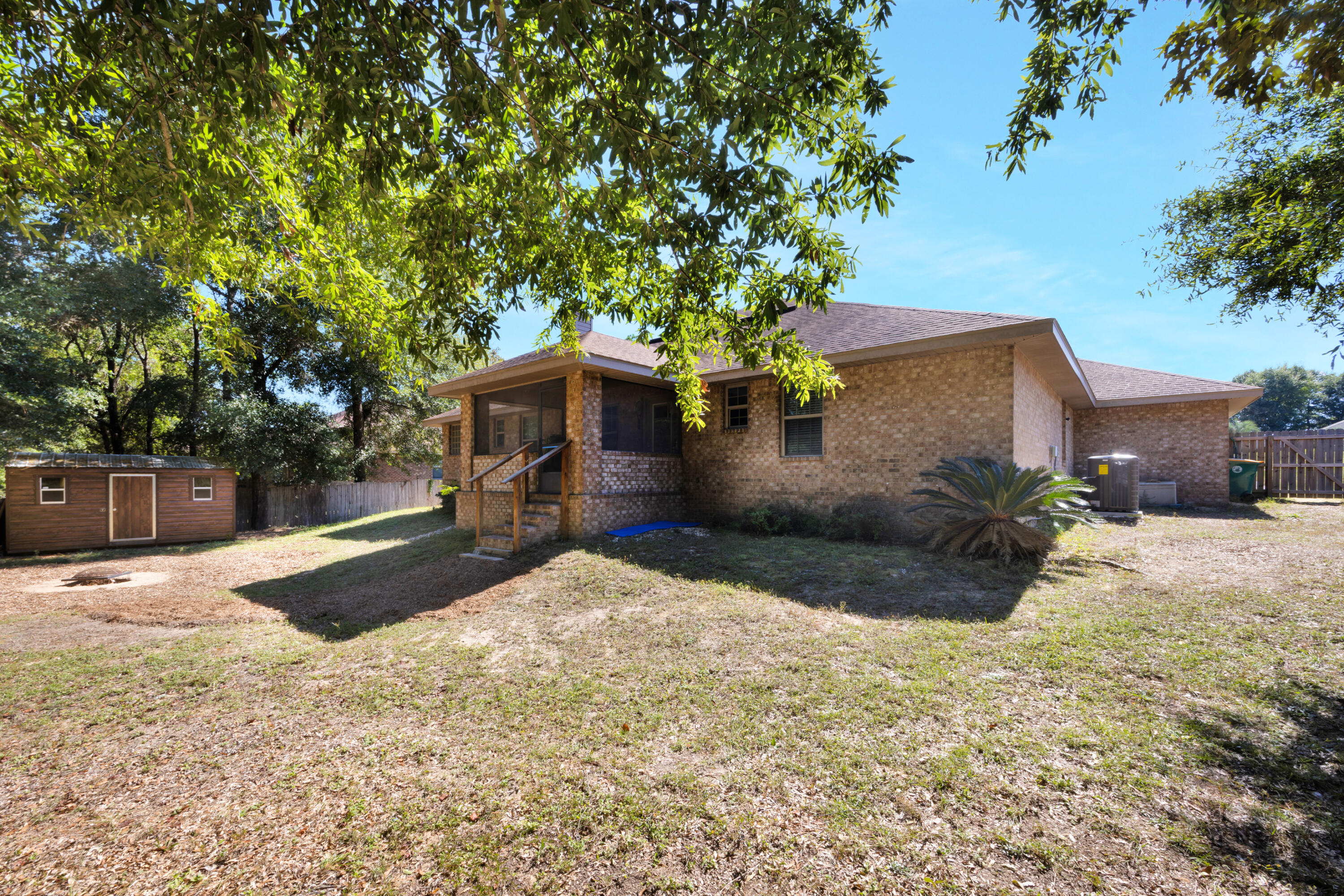 Interior scheduled to be painted. Welcome to 2428 Genevieve Way, Crestview, FL. This well-kept 5-bedroom 3 bath home offers all the space and comfort your family needs- and then some. Step inside to find a bright open layout that is perfect for both everyday living and entertaining. Enjoy peace of mind with a brand-new HVAC system with remaining warranty and pride of ownership throughout every corner of this beautifully maintained property. The spacious kitchen and living areas flow seamlessly, giving everyone room to relax and gather. Outside you will love the screened-in porch- perfect for morning coffee or evening unwinding- overlooking a fully fenced in back yard and the scenery of greenspace behind. That's right no neighbors in the back. A detached outbuilding provides ideal space for storage, hobbies or a small workshop. Located in a quiet, desirable neighborhood just minutes from schools, shopping, local amenities, Eglin AFB, Duke Field and beautiful Emerald Coast beaches. This move-in ready home checks every box.