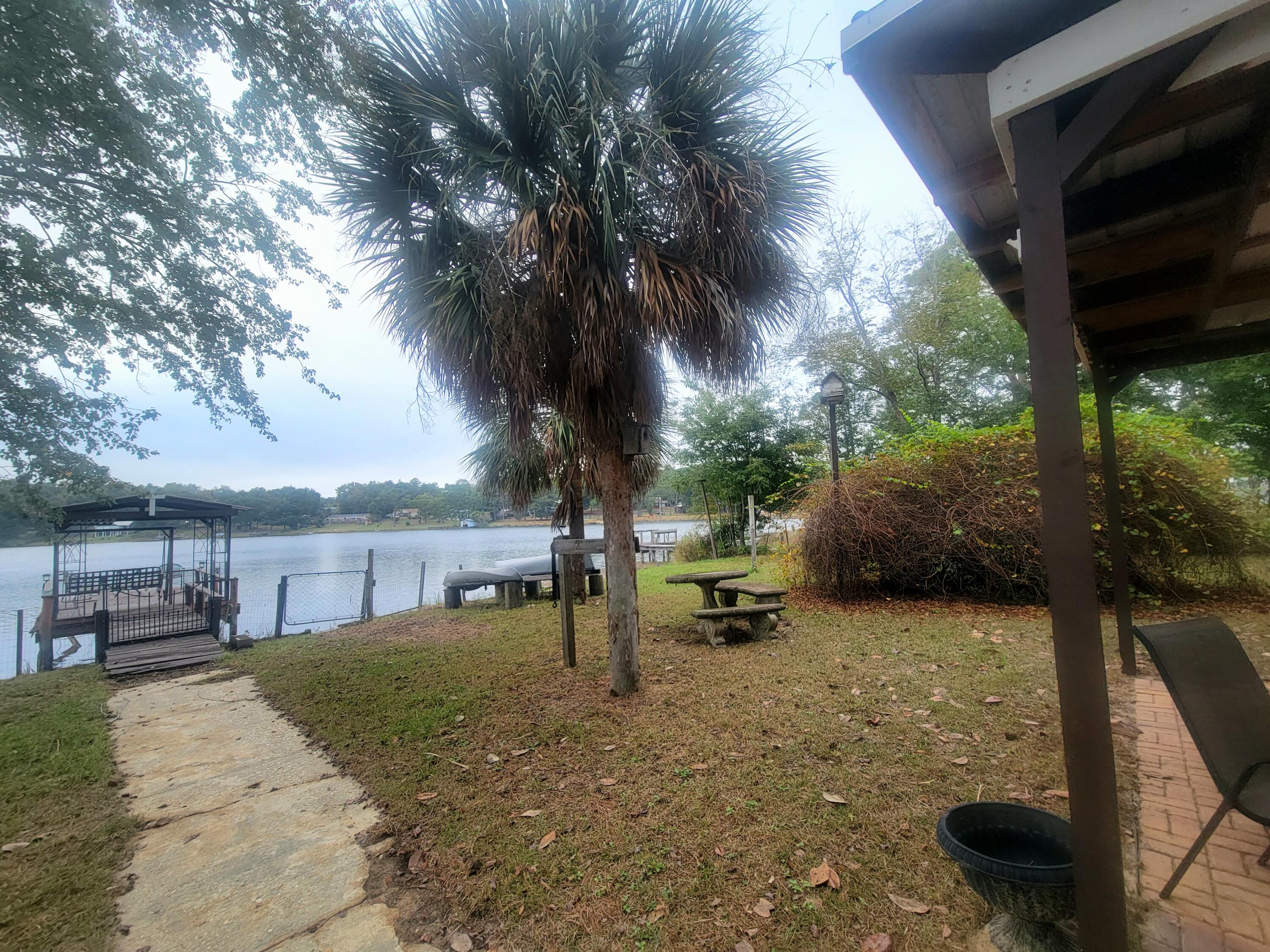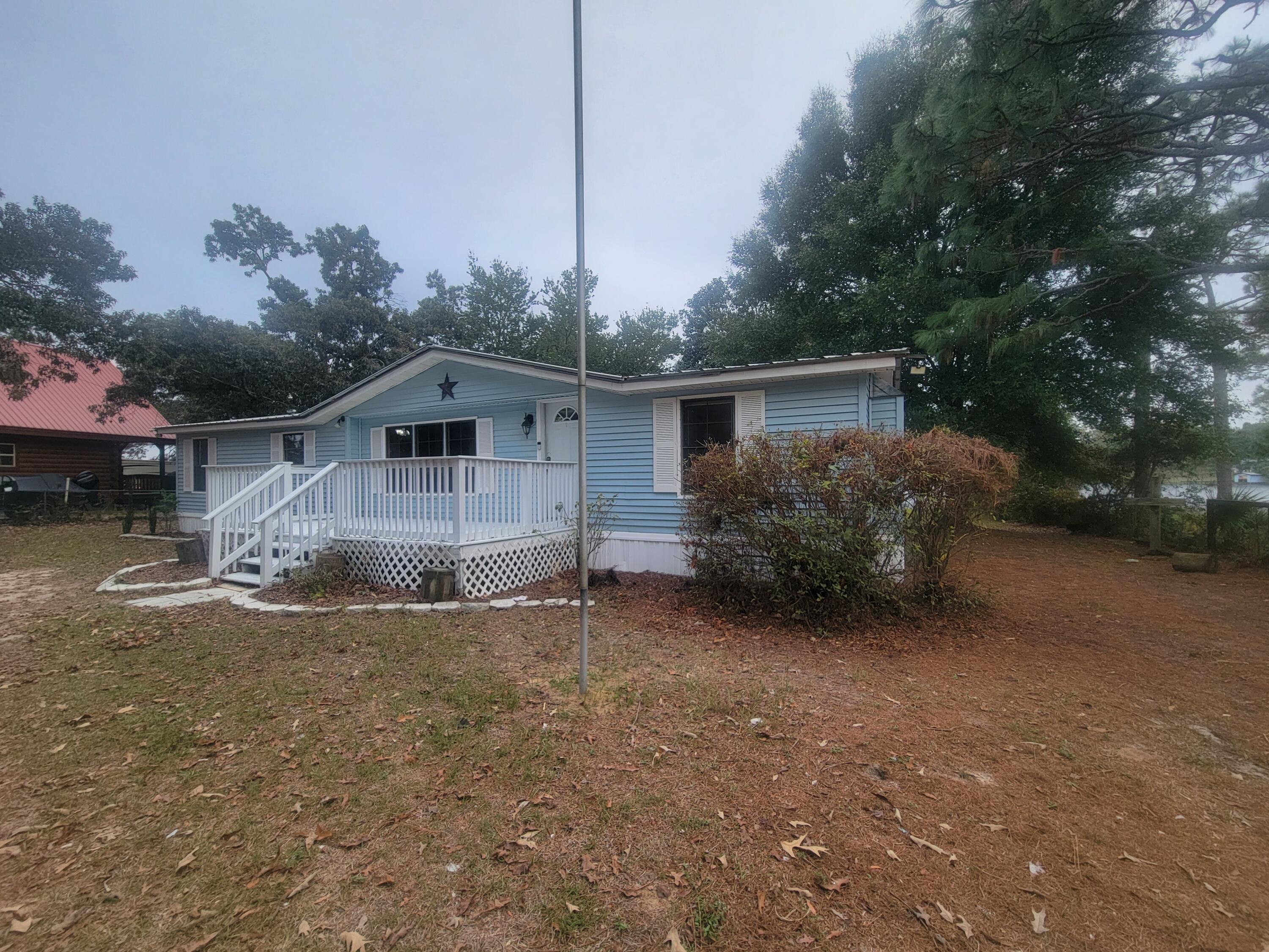 Waterfront home on Paradise Island Drive on Kings Lake! This well kept 3 bedroom, 2 bath home is perfect for dream living! It is like a mini resort/retreat, worthy of record size bream, bass and crappie and more. You can sit on your open back deck, or gaze from your FL Room and watch the sunset each day or just watch the many birds and other wildlife. Perfect spot to grill and eat near the water under your own covered pavilion or the pavilion on the dock. Pick scuppernong grapes in the summer. So much space on the interior with large great room and kitchen on the front of the home and beautiful master bedroom and bath. Other bedrooms are just right for kids or guest. Bring all CASH contracts to be considered. Easy to view.