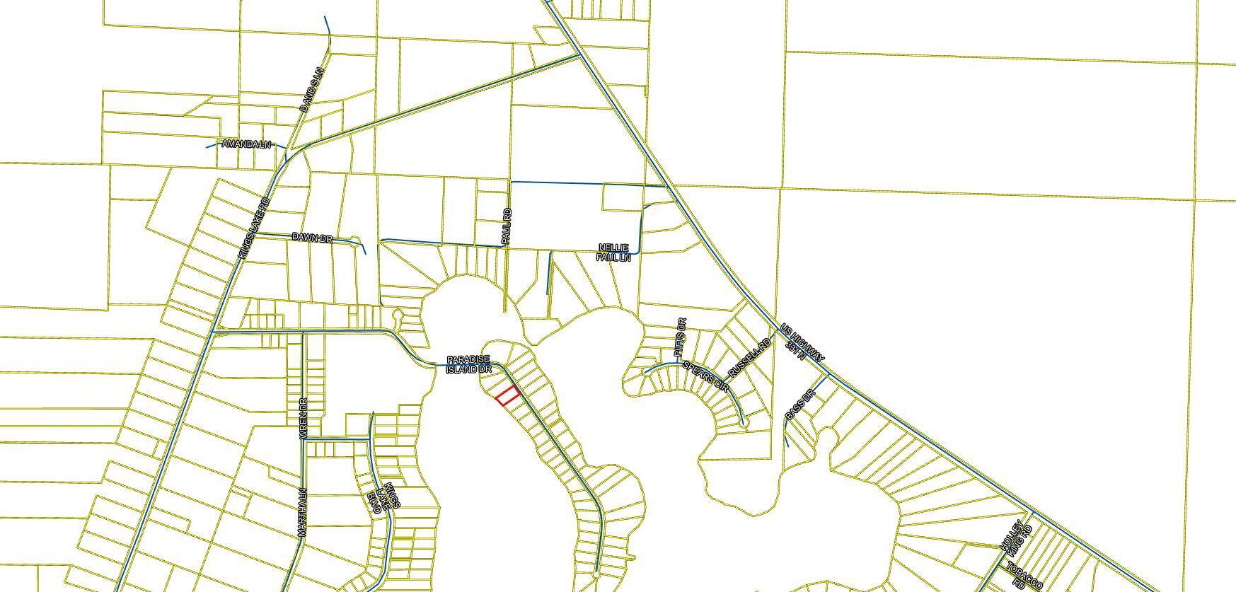 From the intersection of Hwy 331 N and Kings Lake Road take Kings Lake Road 1 miles, turn left on Paradise Island Dr. cross the water, house will on your right.