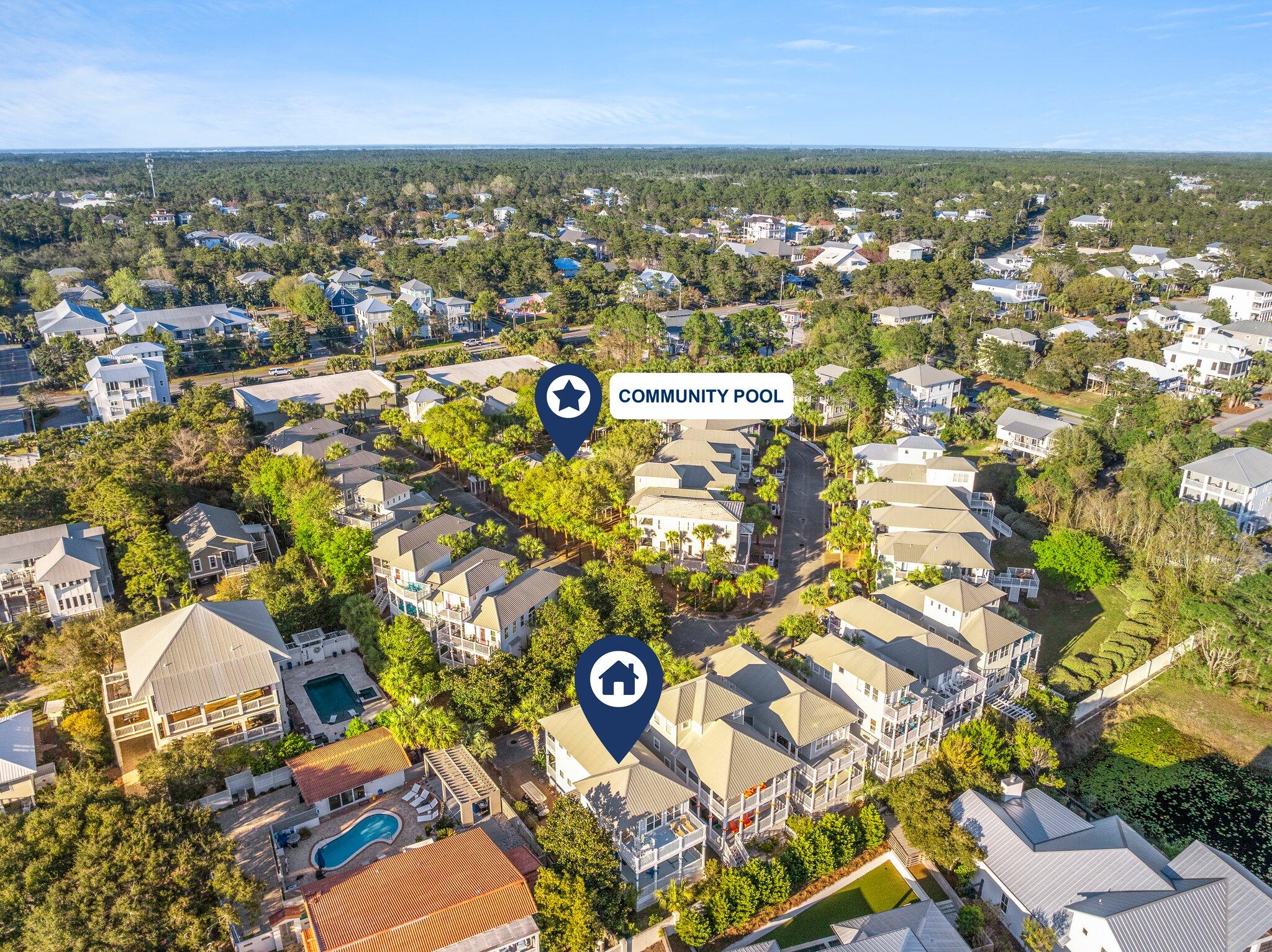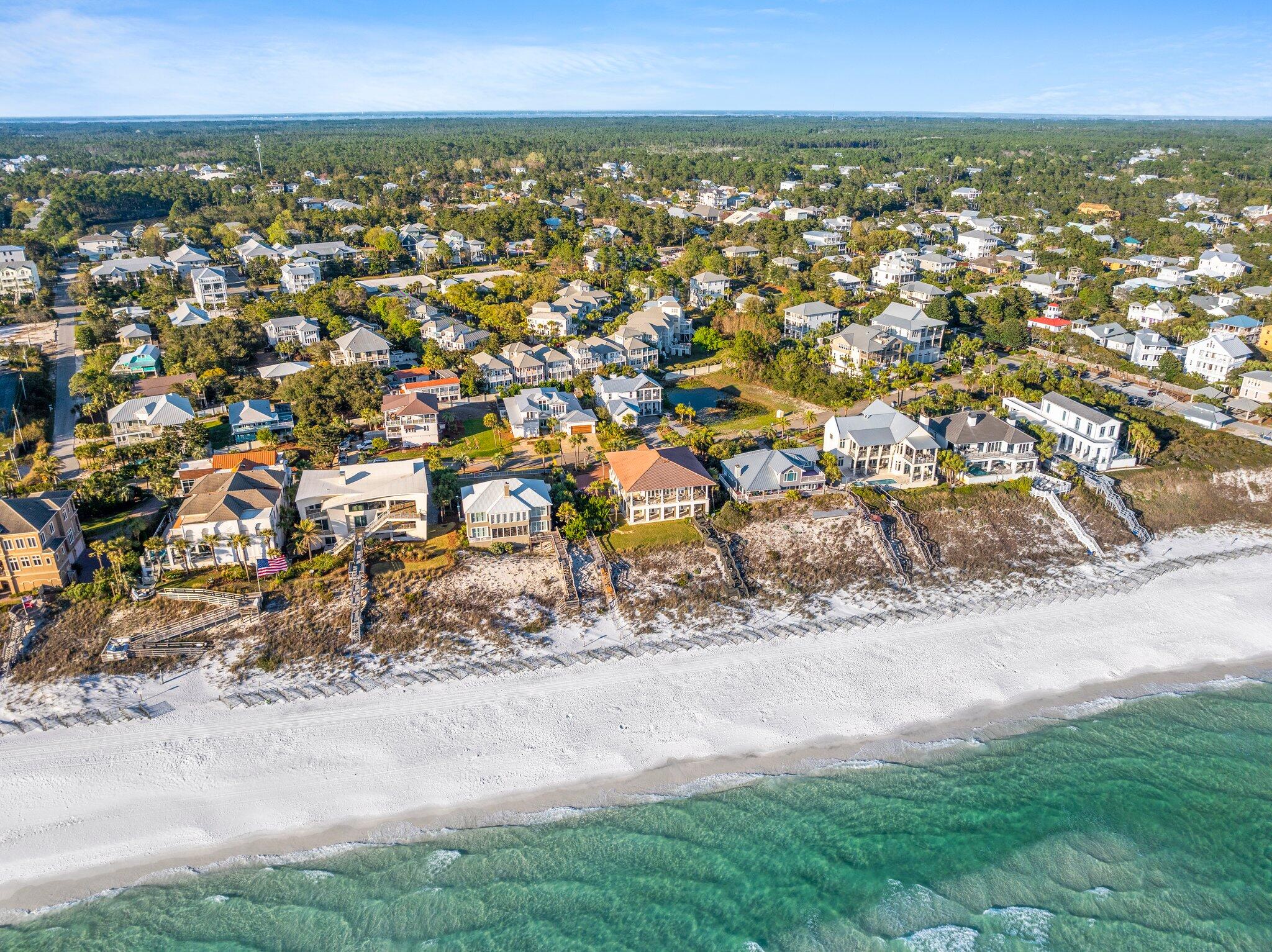 From the intersection of Hwy 393 and 30a (Gulf Place Town Center), head east on 30A approximately 1/2 mile. Turn onto Gulfview Heights Street near the Goatfeather's restaurant, then right onto Emerald Dune Circle for Old Florida Cottages. Keep right on the one way road until Emerald Dunes Circle on right. Home is at the end of a short street on the left.