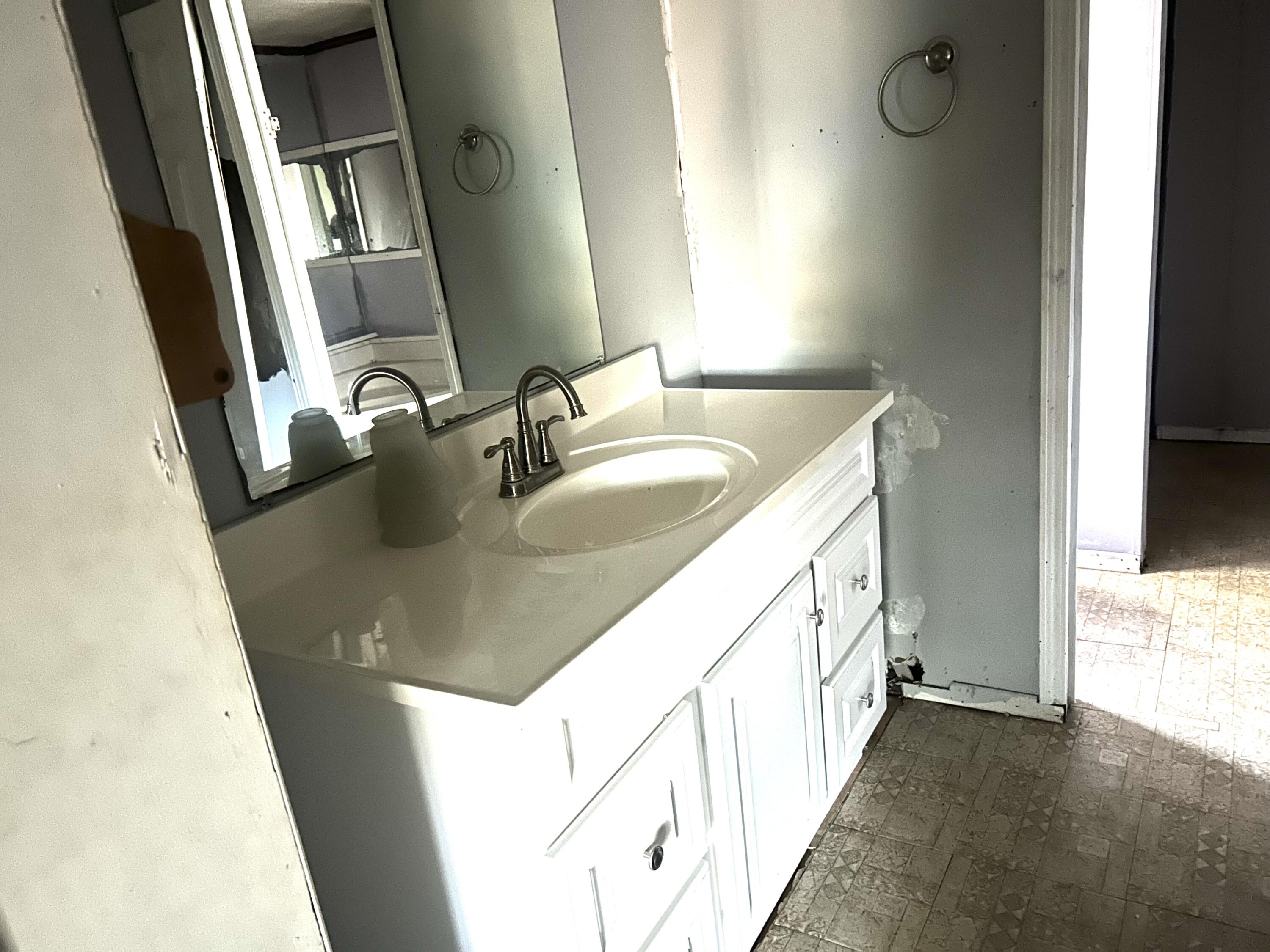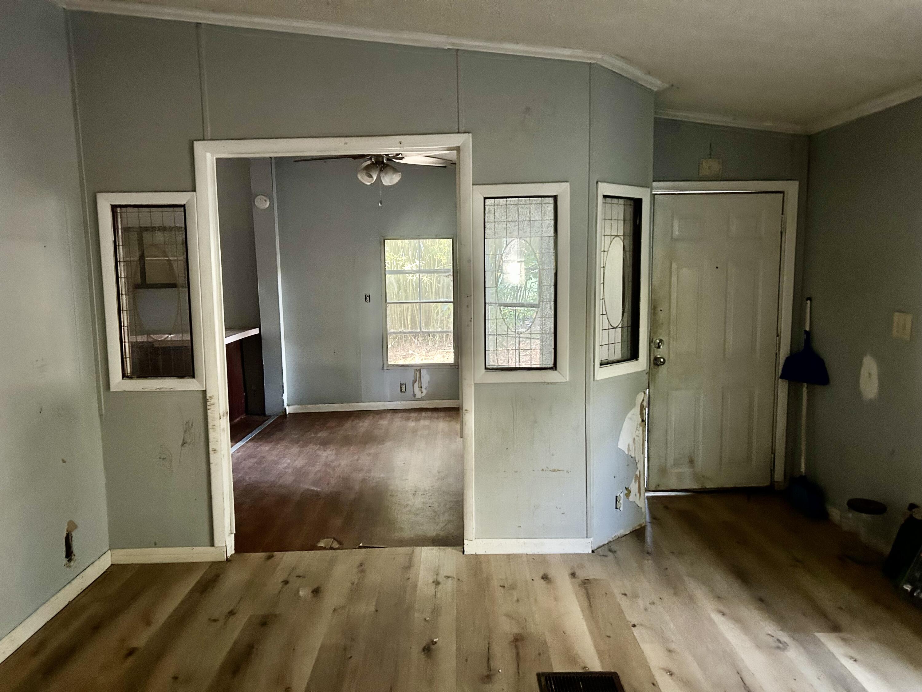 Fixer upper at a price to sell! Lot alone is worth this price. Was previously used as rental. Needs work and will not go financing. Work includes patching holes in walls, painting, back porch removal and general cleanup. Seller is leaving some sheetrock on site. Home is on city water and septic. Metal roof. Additional room built onto mobile home could be used for 4th bedroom or a den. Fireplace, formal dining room, large kitchen. Lot is large being 3/4 acre. CASH ONLY. Will not go financing. Selling AS IS with no repairs.