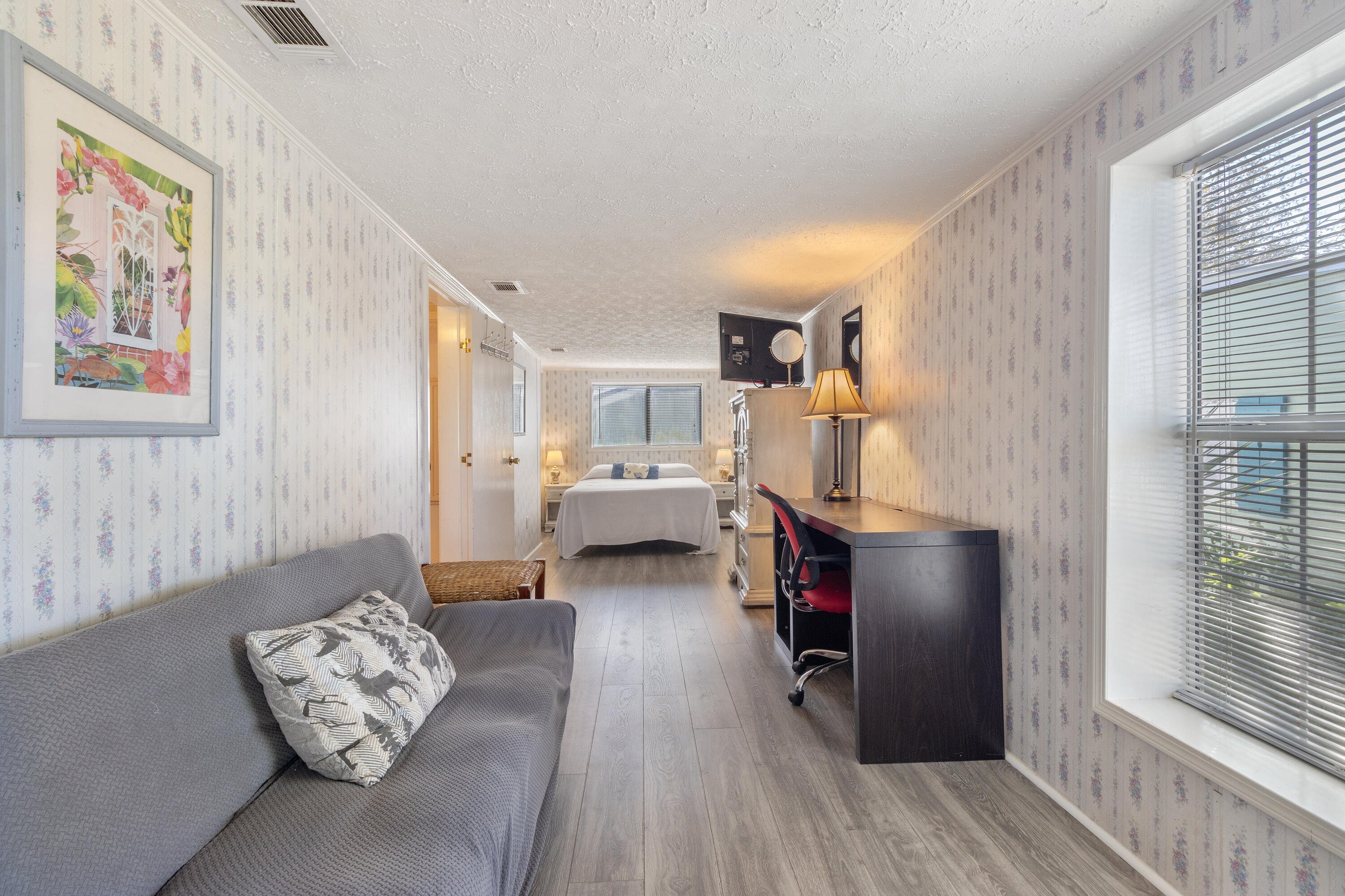 Here's your chance for that TURN KEY BEACH HOUSE only 2 BLOCKS from Beach on WEST END NEAR 30A. Under 550K with 4 bedrooms and 2 1/2 bath. FULLY FURNISHED and ready to rent! Why wait until the season starts to buy. Start renting now for $$ coming in.The interior offers ample seating and features an open-concept layout designed to facilitate entertaining. 3 bedrooms, 2 baths downstairs. Above home loft area with bunks, full bed and 1/2 bath. Making this a perfect setting for large families or groups seeking space and comfort, you'll love the convenience and flexibility this home offers. Plenty space for outdoor sitting on both sides of home with a fire pit for those chilly evenings. Lock all your belongings in the outdoor shed with AC unit . New Roof 2023 and NEW AC With Duct Work 2024.