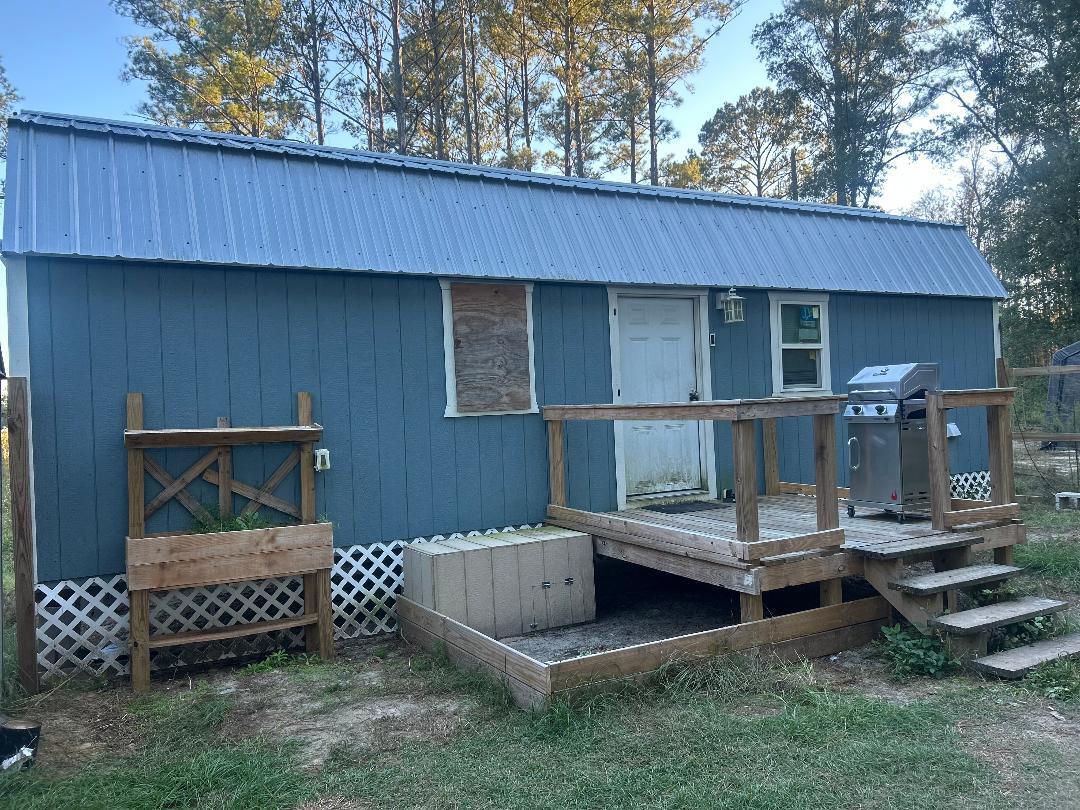 16 acres fronting paved road in quiet country setting. Land is a mixture of wooded, cleared, and a pond. It is zoned agricultural with no known restrictions on the property. Presently there is a utility building that conveys with the property as well as 3 chicken coops, storage shed, & 2 car parking shed. Also a fenced area for pets. Work has been done to utility building which includes a kitchen, loft with TV, HWH, mini split, washer/dryer, shower, sink & partially insulated. Underground power & yard lights. City water. Animals such as deer & turkey have been seen. This 16 acre tract gives you plenty of elbow room and a place away from the hustle and bustle. Short drive to beaches. Neighboring parcel has cows on one side, pond on back, & pasture across road. Agent to accompany.