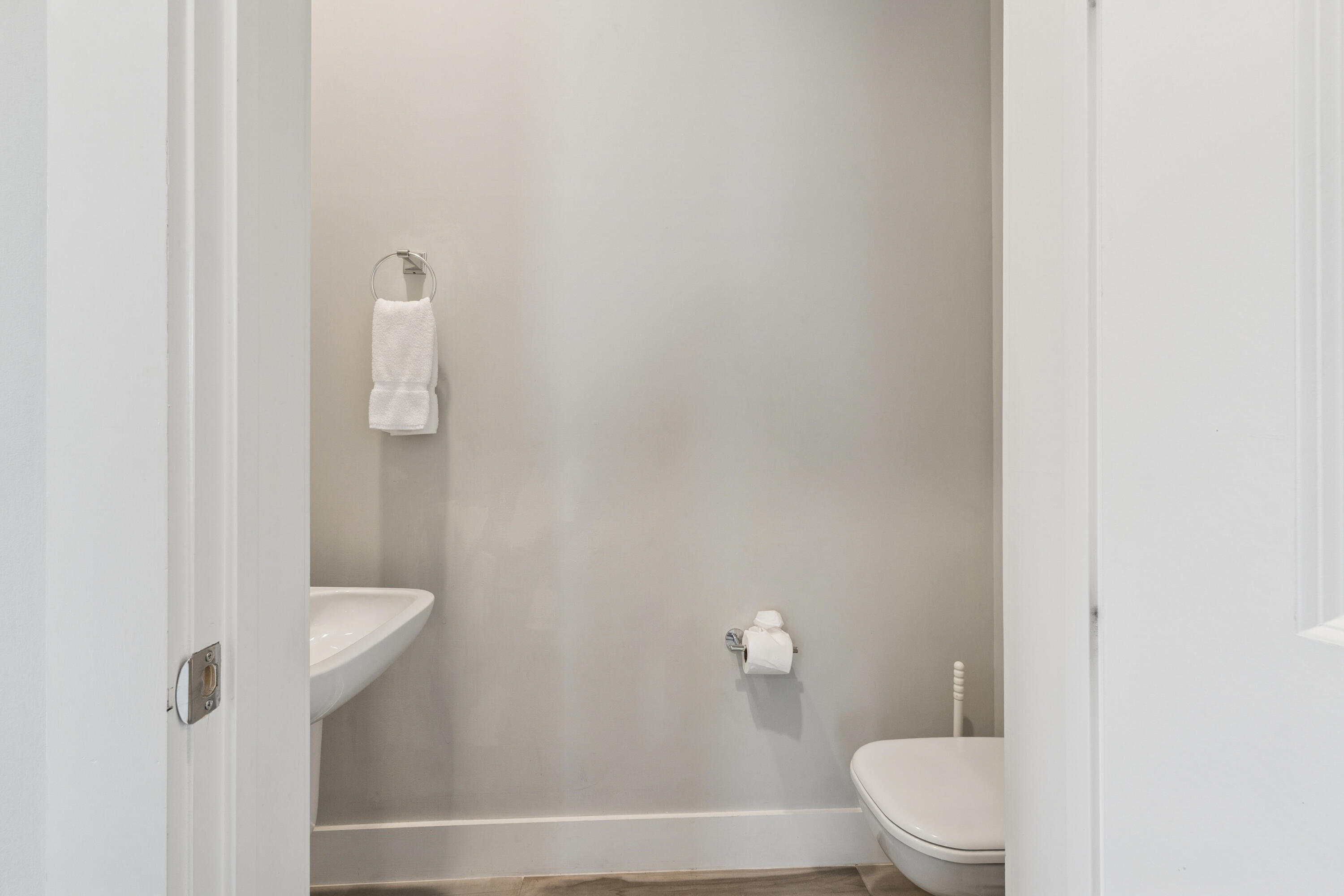 Welcome to 59 Valdare Way, where comfort, style, and convenience converge in the heart of the vibrant Inlet Beach community. This exquisite 3-bedroom, 2.5-bath home, constructed in 2019, is perfect for both primary residents and investors, offering no rental restrictions for optimal flexibility. Situated just half a mile from one of the largest public beach access points on the Emerald Coast, this home provides easy access to pristine sands and the charming entrance to Rosemary Beach along the iconic 30A. The exterior boasts crisp white Hardie siding, a sleek black roof, and a gray paver driveway, creating a striking curb appeal.Inside, the home features beautiful wood-look tile flooring, plush carpeting in the bedrooms, and thoughtful design details throughout. The gourmet kitchen is a chef's dream, equipped with upgraded countertops, a mosaic tile backsplash, stainless steel appliances, a 30-inch gas cooktop, and soft-close cabinets and drawers. The open-concept layout seamlessly connects the kitchen to the living and dining areas, making it an inviting space for gatherings.