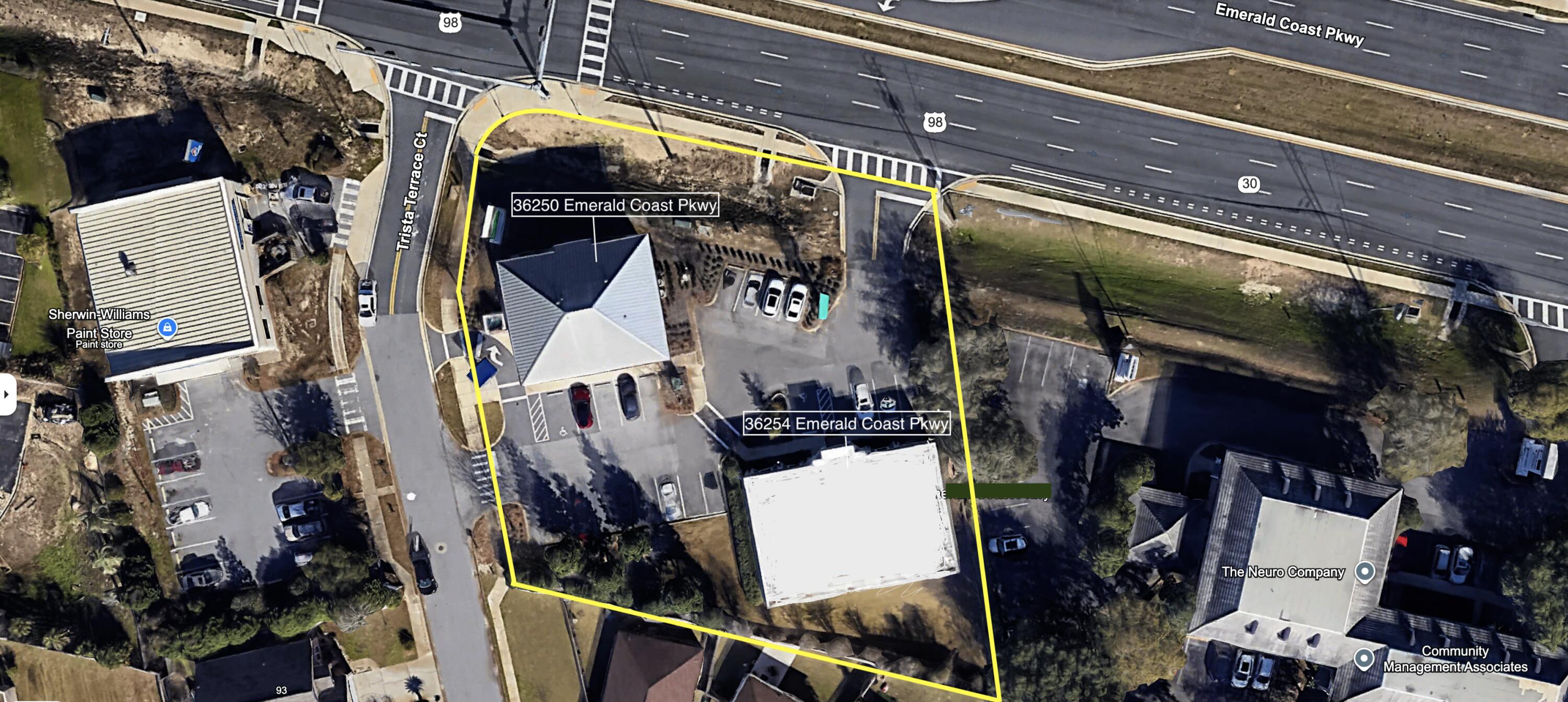 Subject properties are approximately 1.4 miles east of Destin Commons at the signalized corner of Emerald Coast Parkway & Trista Terrace Ct., adjacent to Sherwin-Williams.
