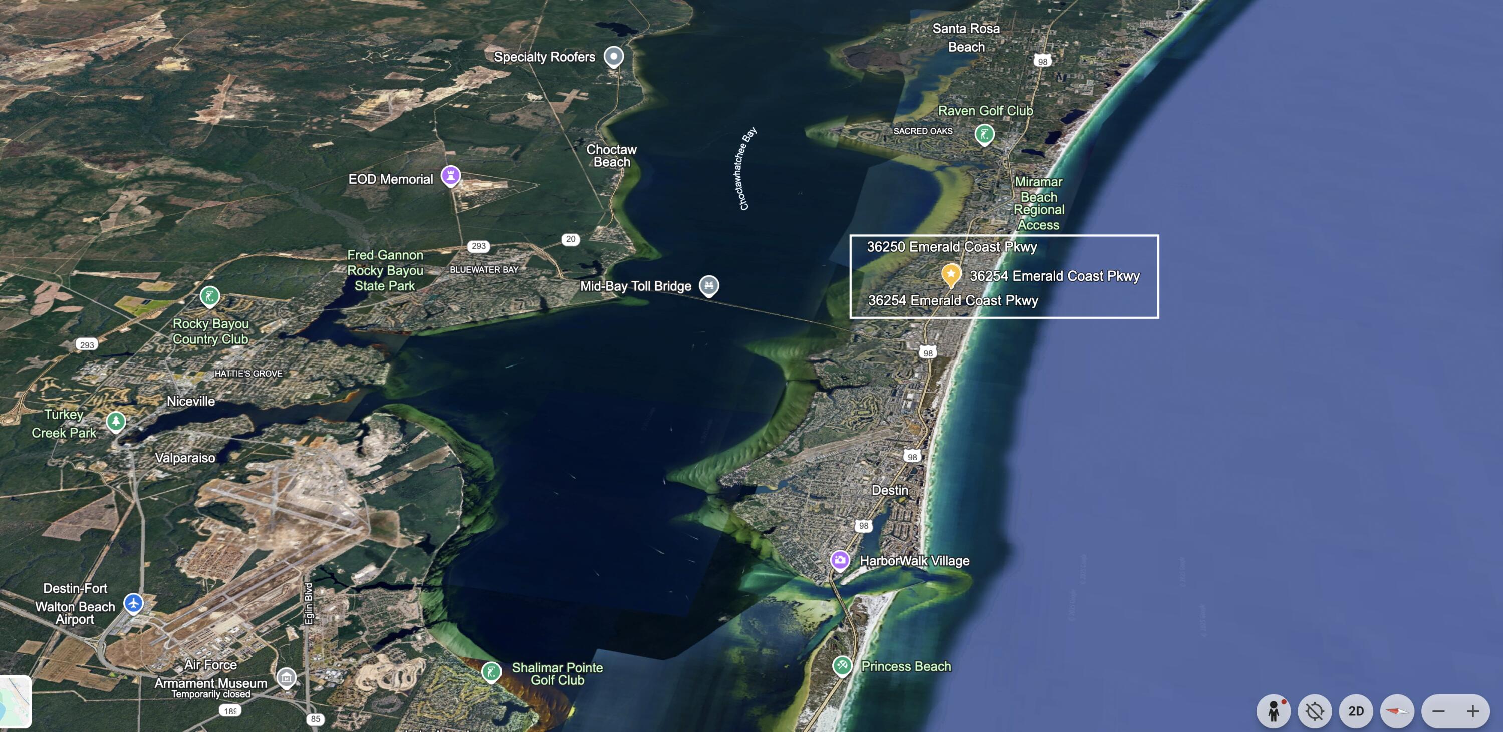Two well-built freestanding buildings with excellent visibility, located on a hard corner at a signalized intersection at Emerald Coast Parkway and Trista Terrace Court in Destin, Florida! Highlighting two significantly engineered buildings with a large, HD-quality electronic marquis sign, visible to 54,000 AADT per day. The subject property offers a rare opportunity to expand a nationally & regionally based corporation's footprint along the Parkway from Destin to Panama City Beach, FL.Hard corner Bldg 250 conveys: 3,567 sqft, 7 offices, 2 Bkrs, ADA bathrooms, elevator, conference room, large 3rd floor h/c storage room & 14 parking spaces. Bldg 254 conveys: 3,776 sqft, lobby&reception area, copy&supply roomADA bathrooms, 6 offices, break rm, conf, rm, & 9 parking spaces.