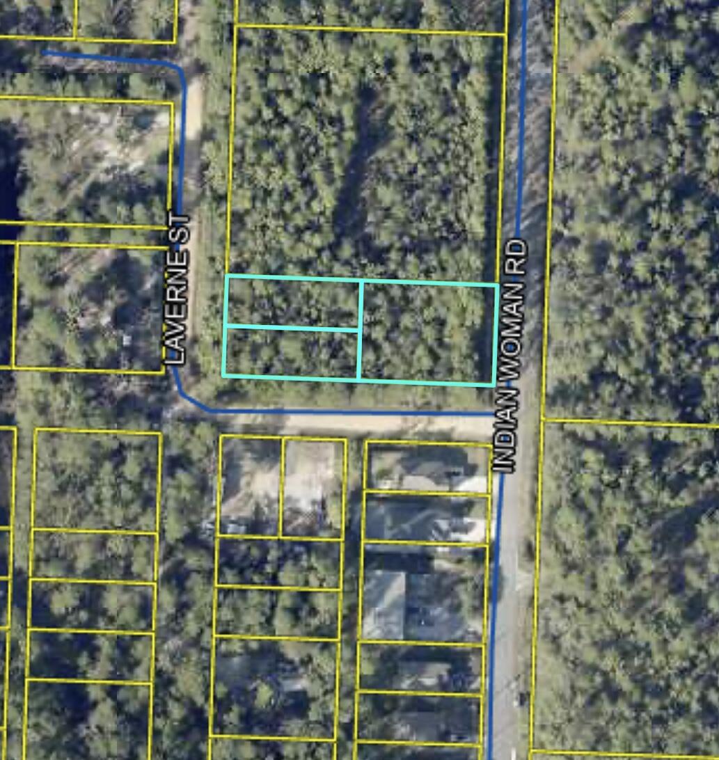 Turn NORTH from HWY 98 onto SOUTH Church St.: Continue 1 Mile and turn RIGHT onto Churchill Bayou Rd: Continue 1 Mile the turn LEFT onto Indian Woman Road: Continue until you see Laverne Street and it will be corner lots.