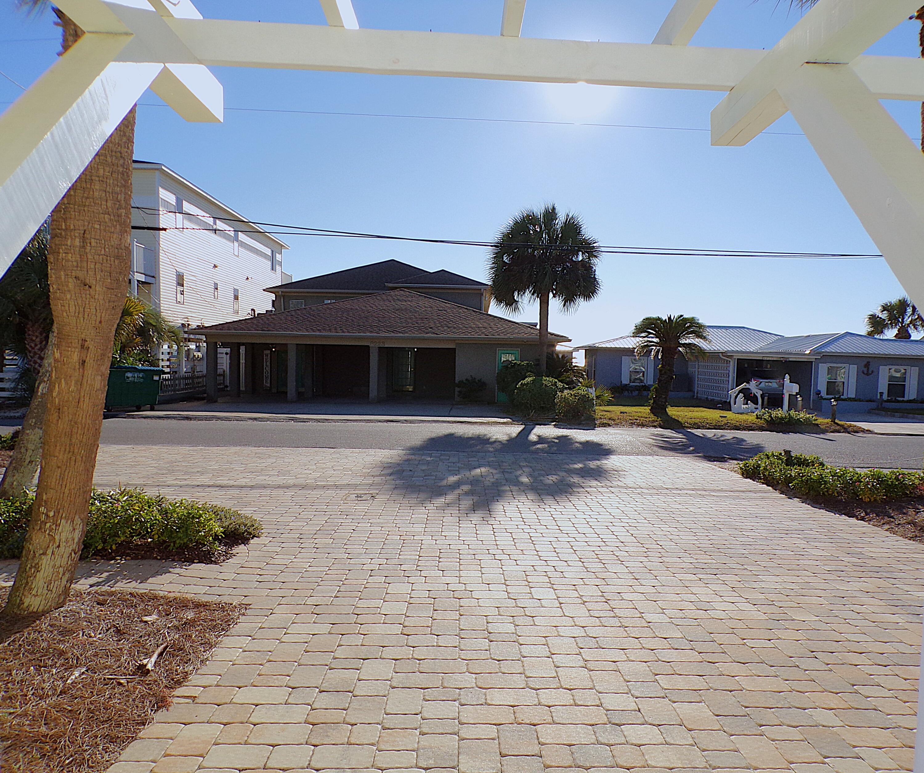 LOCATION IS EVERYTHING! This home is across the street from Beachwalk19. You can be on the sand in one minute from the time you leave the driveway. The only thing that would be better is to be Gulf front and that would cost $Millions more. This home is in a very upscale area with many large gulf front houses within a block. This beautiful home was completely redone two years ago. All of the ceilings are shiplap and all of the flooring is LVP. Metal roof was done in 2019. The front of the house has a custom arbor that adds tremendous eye appeal. It is beautifully decorated and rental ready. Even though it has been a private residence, most of the furniture stays. It is on a corner lot with plenty of parking on the oversized stone paver driveway. Surf drive is a unique low traffic street. The stone pavers are on both sides of the house leading to the large outdoor deck around the pool. There are outdoor tables adn chairs that make for a great place to hang out. The heated swim spa is great for year round enjoyment. Half of the pool is configured like a hot tub with seats and jets and half is like a pool. A new AC unit was installed earlier this year. In addition each bedroom has a portable AC units so even in the hottest part of the summer, the bedrooms are cool. The open family room and kitchen area make for a great gathering place. There is a granite counter bar that can seat 10 around the kitchen as well as a large table that can seat at least 10. There is a large screen TV in the family room as well as TV's in 4 of the bedrooms. One of the bedrooms is currently used as an office but would normally be used as a bedroom. The room with the built in bunks has a separate door for privacy and is really like a 5th bedroom. It has a window so the only reason it is not listed as a bedroom is because it does not have a closet. The current bed configuration sleeps 16 but can easily sleep 18. All of the bathrooms have sliding glass doors with new tile around the whole shower. The hall bath has a new tub with tile around it along with the sliding glass door. The master suite has an extra large shower. The outdoor shower has cold and hot water. There are numerous hooks in each bathroom as well as around the outside shower to hold towels and swim suits. There is a white vinyl fence that surrounds the side and back of the house. Everything in this house has been completely redone. The separate laundry room has full size stackable stainless steel washer and dryer with amble storage shelves. The laundry room has an entrance directly from the pool area to mange all of the wet swim suits and towels. The bunk bedroom has sturdy large built in wood bunks. Now is the perfect time to buy to be ready for the upcoming vacation rental season or to use as a second home or permanent residence.