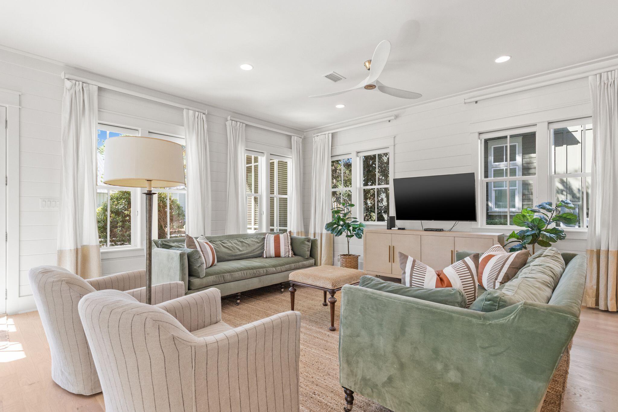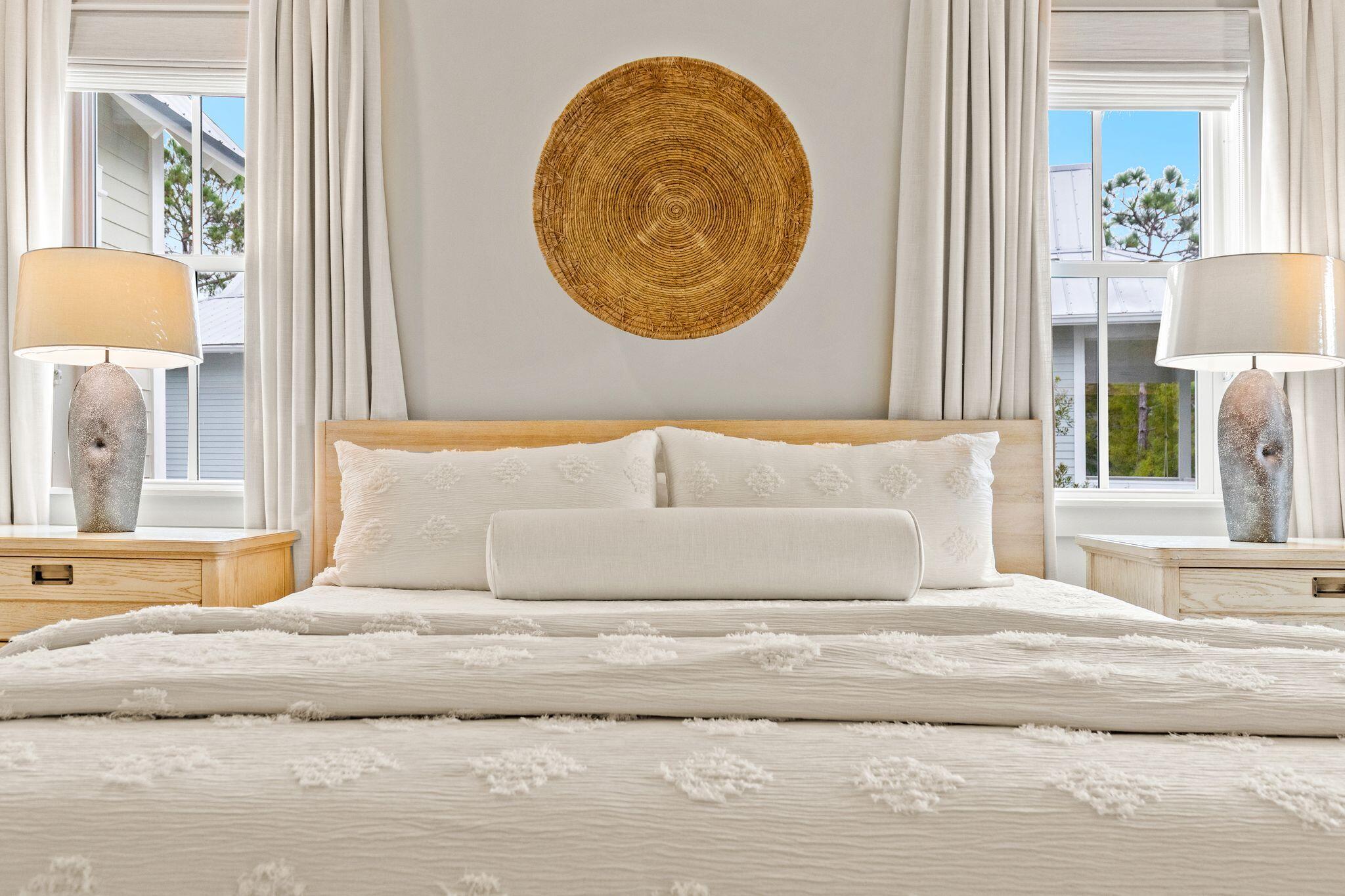 This stunning WaterColor residence, built by Romair Construction, offers 4 bedrooms, a bunkroom, and 3,060 sq ft of beautifully crafted living space. Thoughtfully designed for comfort and style, the home features hardwood floors, V-groove trim, Carrera marble surfaces, designer furnishings, and a full suite of premium wellness upgrades, including whole-home air and water purification, dehumidifiers, and a private sauna. Ideally located near WaterColor's world-class amenities and the best of the 30A lifestyle.Inside, an open and airy floorplan creates a seamless flow between the main living areas. Abundant natural light, cottage-inspired trim work, and refined finishes contribute to the home's timeless coastal character. The generous living and media rooms offer multiple gathering spaces making the home equally suited for everyday living and hosting guests.