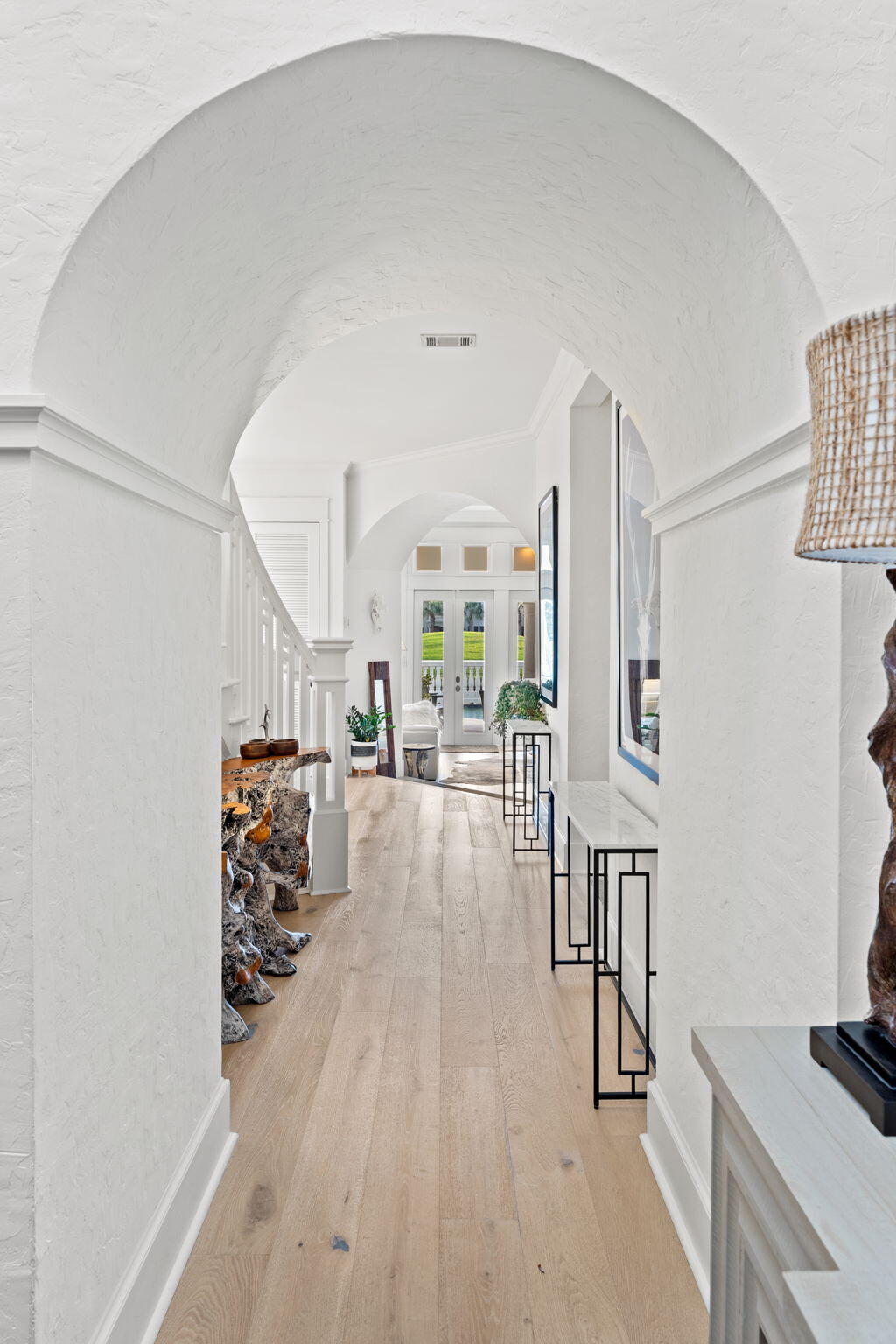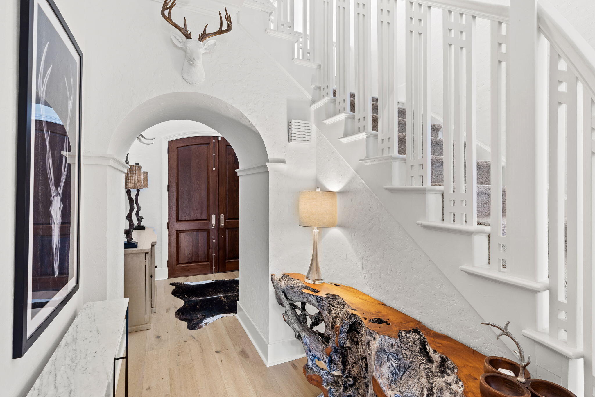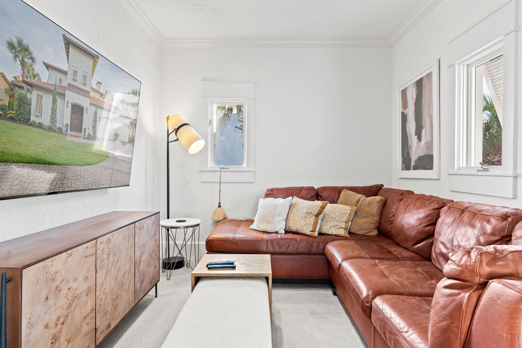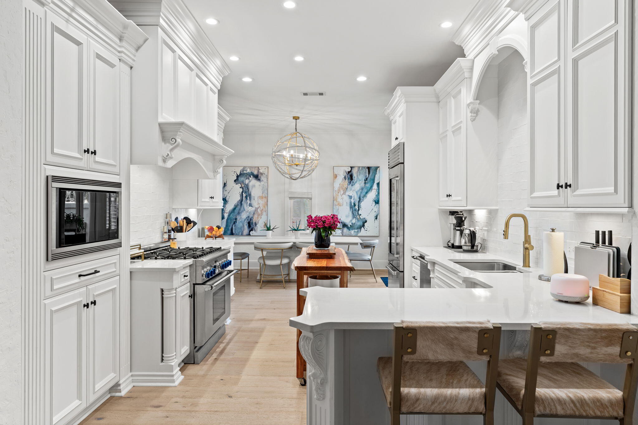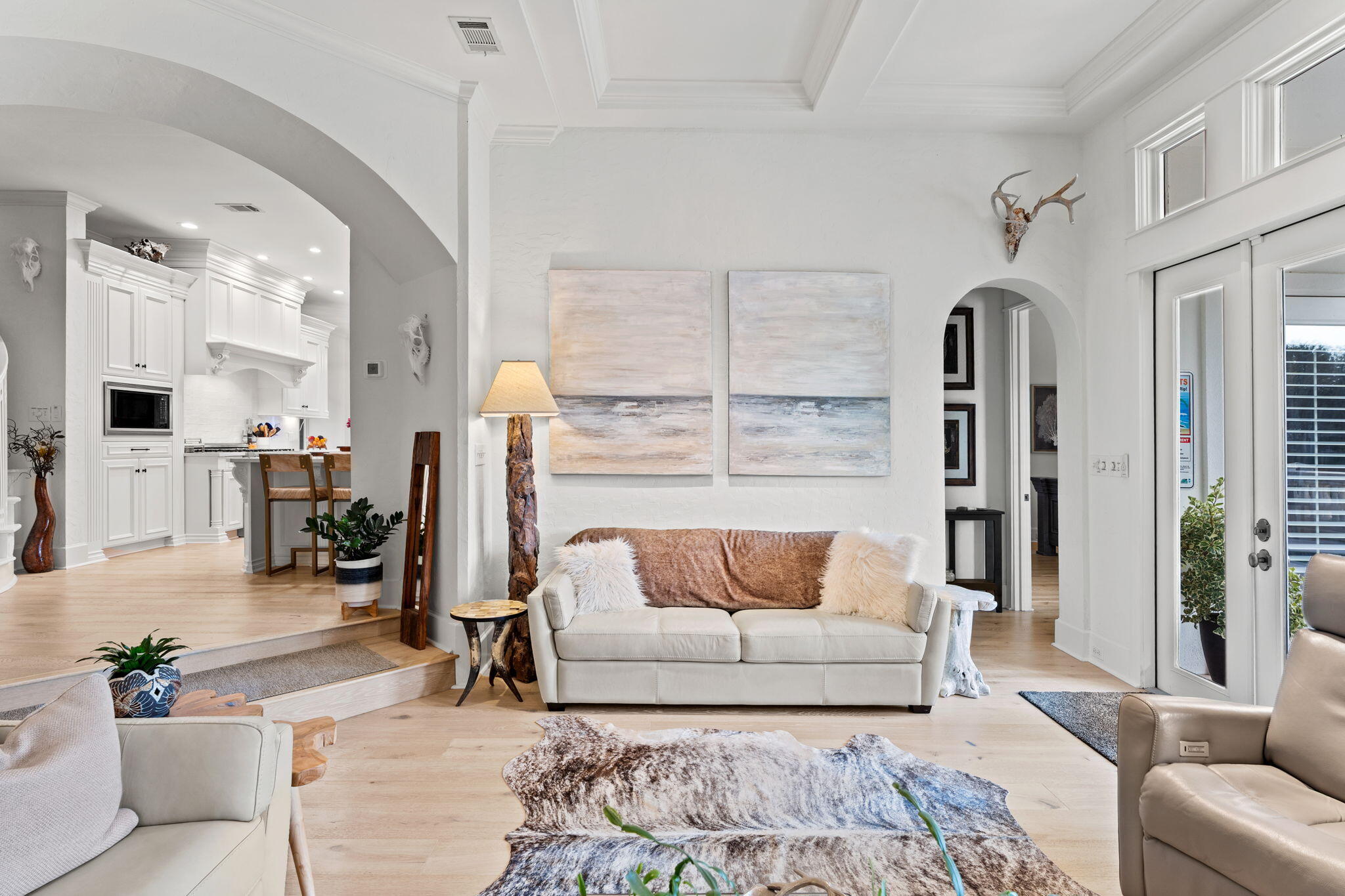 Experience refined coastal living in this Mediterranean Villa, perfectly positioned along waterfront landscape and the beautifully manicured 4th green of the Baytowne Golf Course. Inside, you will find soaring 20-foot ceilings, bright open living space designed for relaxing and entertaining. Complimented by custom fireplace with built-ins create a warm yet elevated atmosphere. The newly remodeled kitchen features granite countertops, subway tile, Thermador professional gas range, Sub Zero glass front refrigerator, and hardwood floors that flow throughout the entire first floor of the home. Walls of windows capture sweeping water and golf views, filling the home with natural light. Step outside to your own private retreat with a screened-in porch, spacious pool deck, and a cozy fire pit area, perfect for slow evenings with friends. A new dock extends over the lakean unforgettable spot to watch sunrise shimmer across the water or take in golden sunsets over the green. What truly makes this home special is its location inside Sandestin Golf & Beach Resort. You're wrapped in 2,400 acres of 4-championship golf courses, a full serve marina, tennis center, miles of walking and biking trails, dining, shopping, and the freedom of golf-cart living.