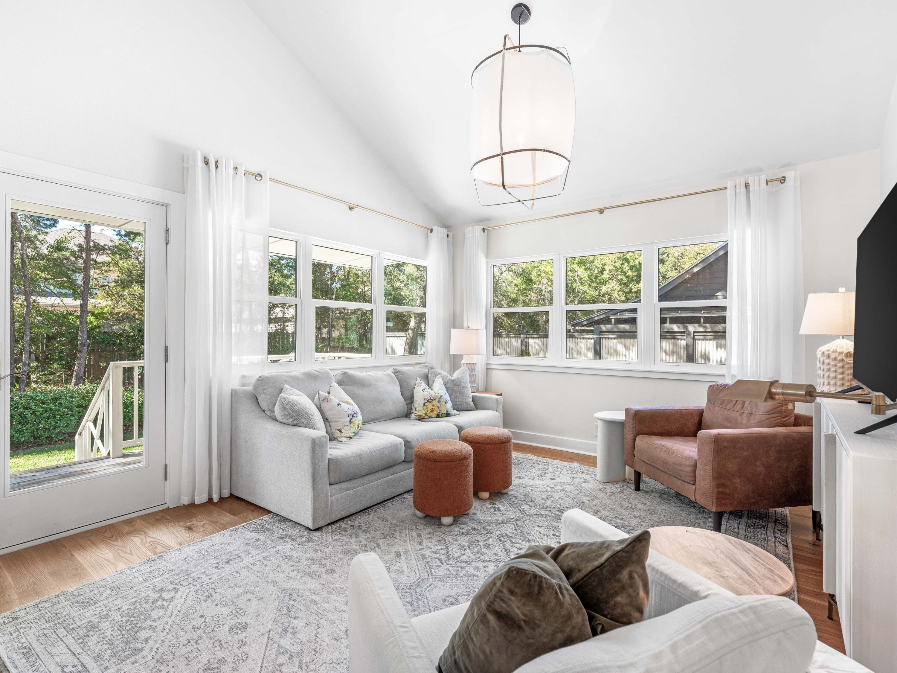 Welcome to an updated sanctuary positioned in the heart of Point Washington. This beautifully renovated three-bedroom, two-bathroom home offers the quintessential coastal lifestyle and prime location.Within walking distance of the community boat ramp and a short drive to Seaside, the beach & the vibrant shops and restaurants of 30A, this furnished residence exudes comfort and convenience. The property has undergone numerous updates with attention to every detail. Special features include the vaulted ceilings and new windows to the hardwood floors, new countertops, updated bath cabinets, and designer light fixtures. The cozy and functional floor plan features multiple covered decks, providing an ideal setting for morning coffee or evening gatherings. Situated on a peaceful and private street, the property boasts a spacious homesite surrounded by mature trees. There is ample parking, and the best part is there are no Homeowners Association (HOA) fees. This charming home is situated in one of South Walton's most desirable areas.